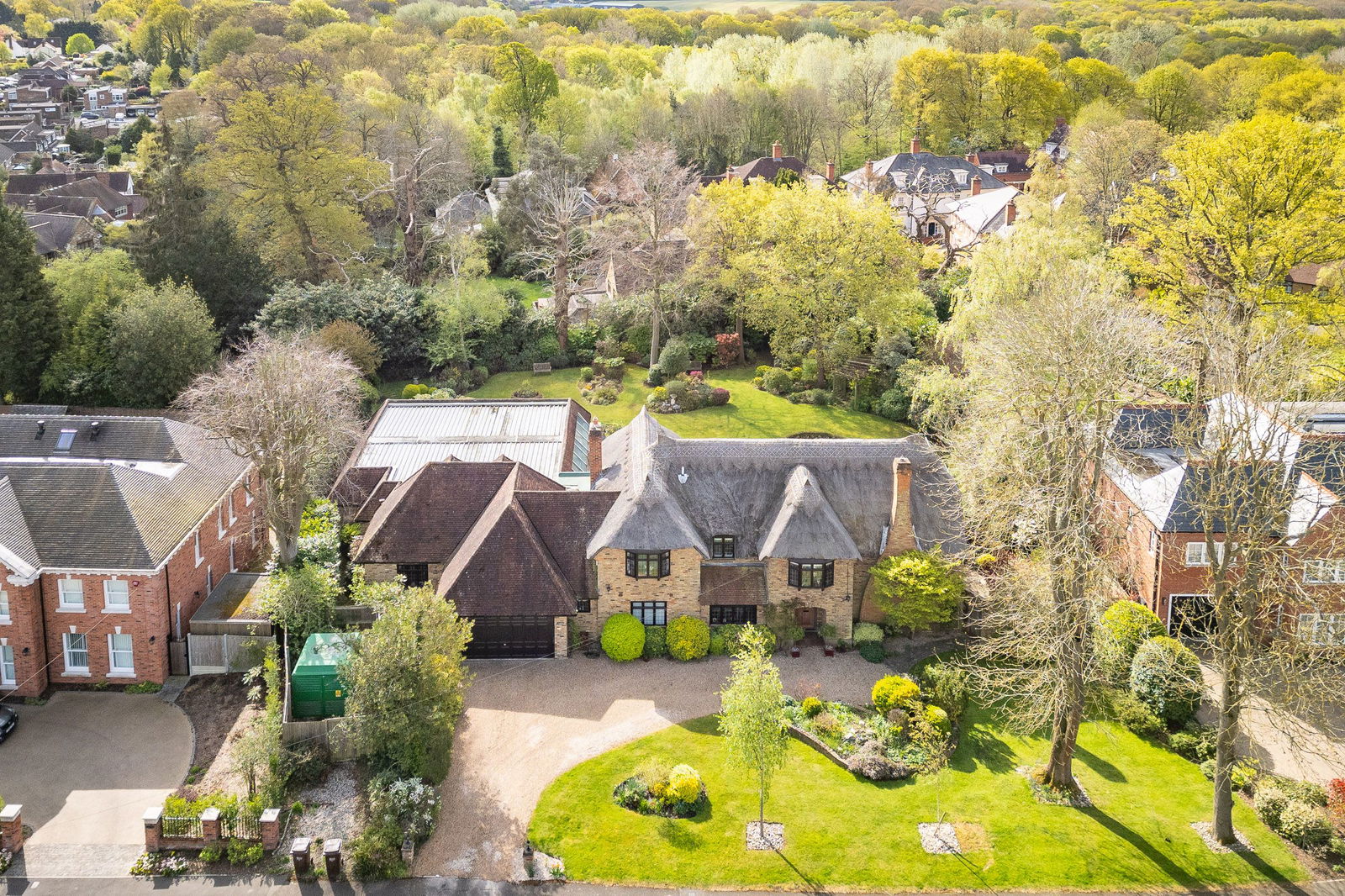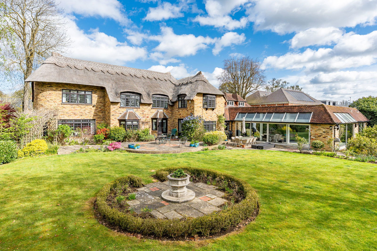 Set on the borders of Brentwood in the heart of Herongate village, comes this 'one of a kind' property offering nearly 6000 sq ft of internal space which includes a leisure complex with pool, changing room, games room and separate snooker room. One of the area’s most distinctive homes, combining classic styling with modern convenience. This striking home has a beautiful thatched roof, creating a unique character to the building and excellent natural insulation. Inside this spacious home, the layout includes four reception rooms, five generous double bedrooms, two with en-suite, the principal bedroom off the galleried landing featuring its own bathroom plus a 20ft., dressing/sitting room.