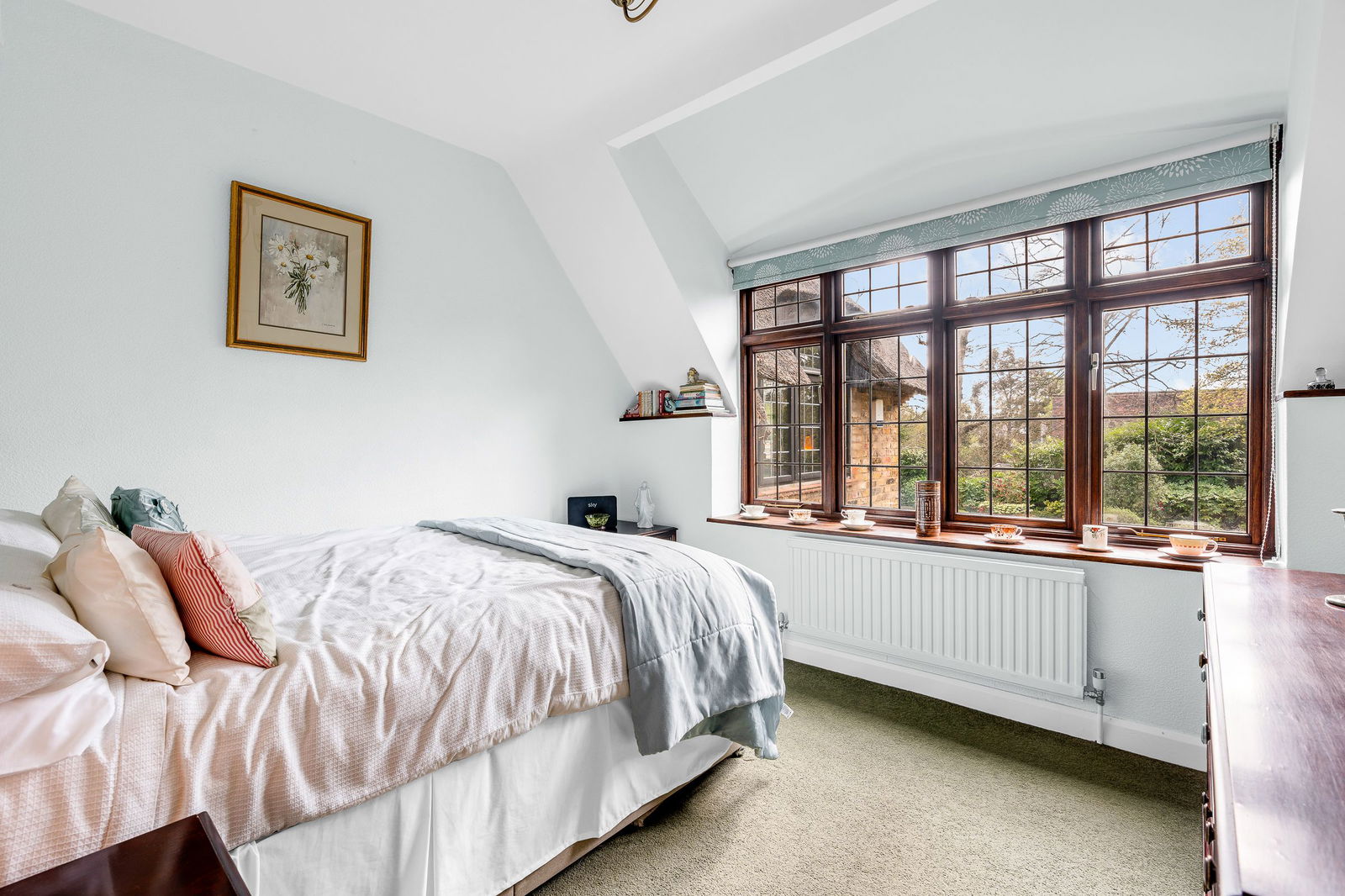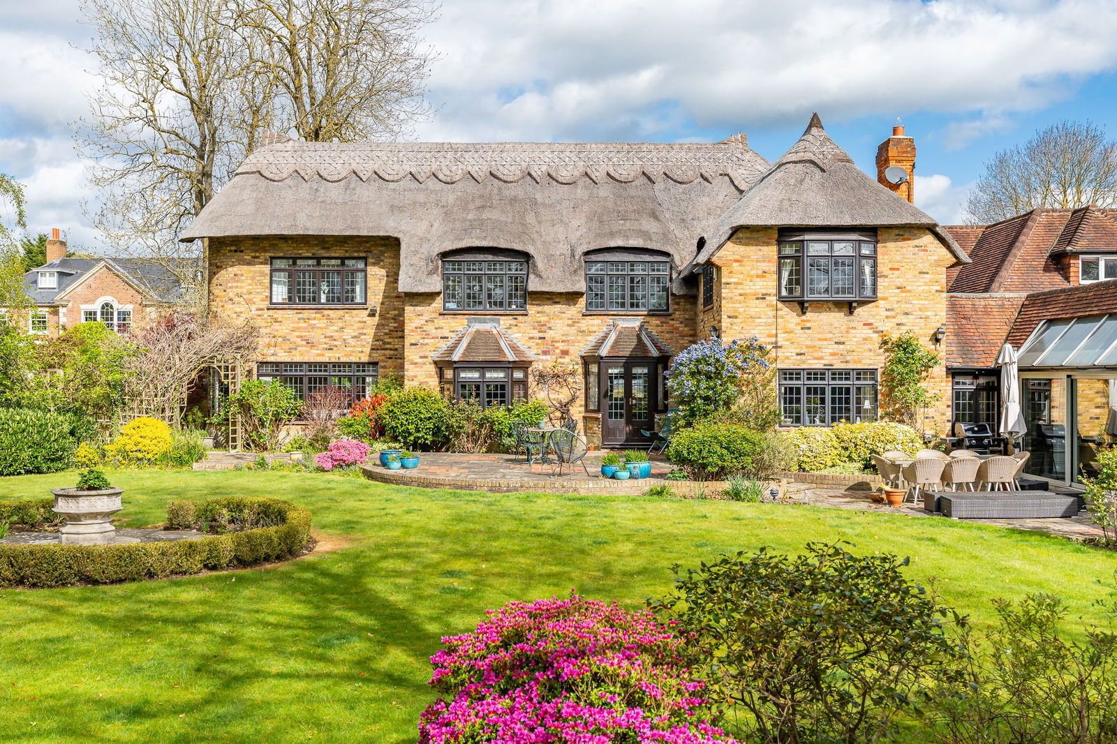 Step outside and the generous frontage in Thorndon Approach provides a good level of off-road parking plus access to a substantial garage which has electronically operated doors, power and light connected. The meticulously maintained south facing gardens are a key feature of the property and offer a tranquil and picturesque setting, a true gardener’s delight, featuring three sun terraces and a charming pergola draped with mature Wisteria. Thoughtfully landscaped, the grounds have a range of mature trees and shrubs, vibrant flower borders, well-tended lawns and extensive seating areas, perfect for outdoor relaxation and entertaining.