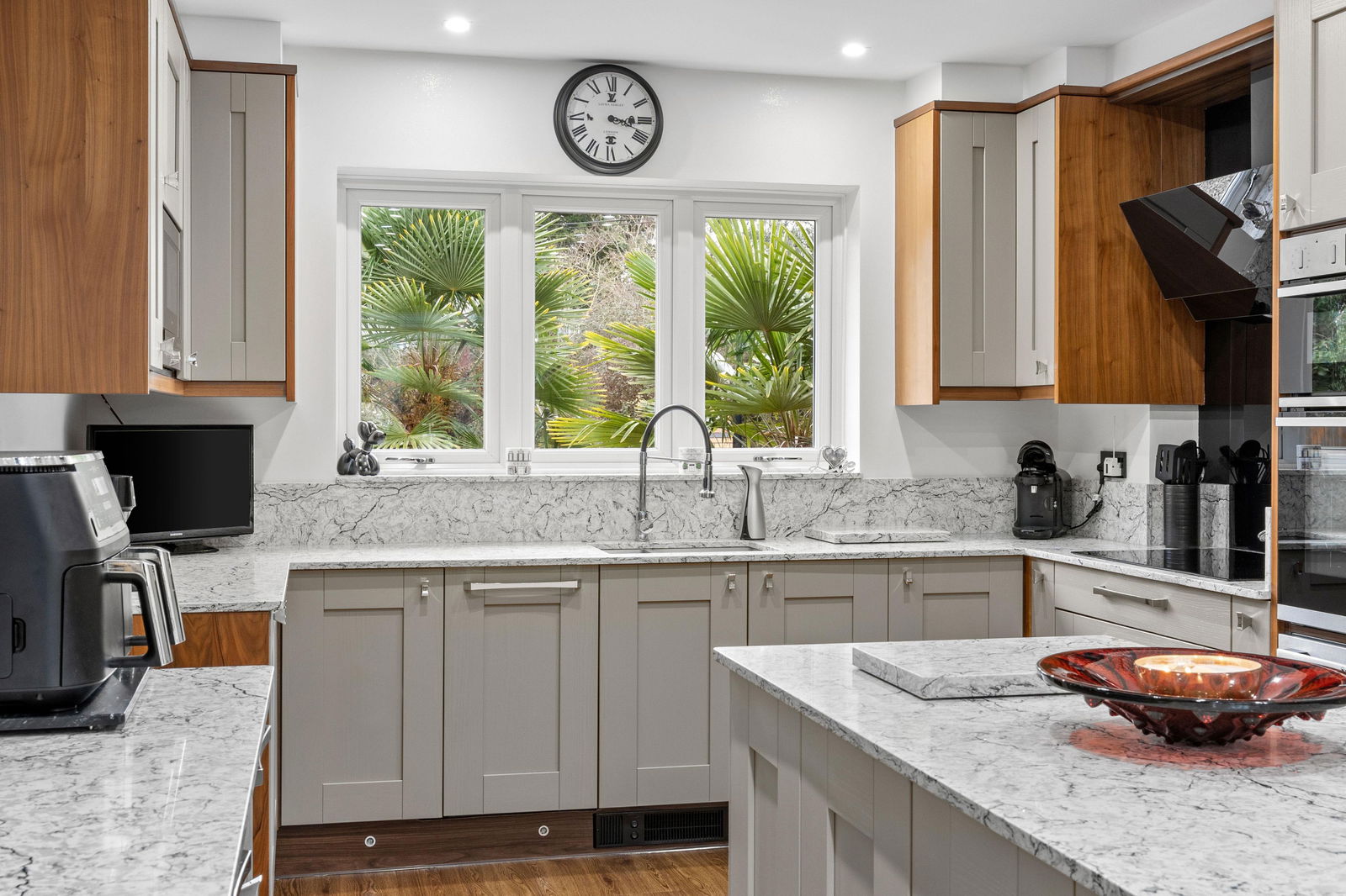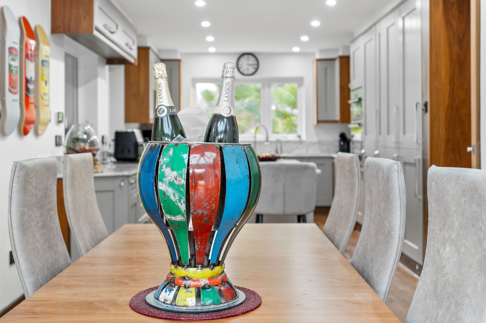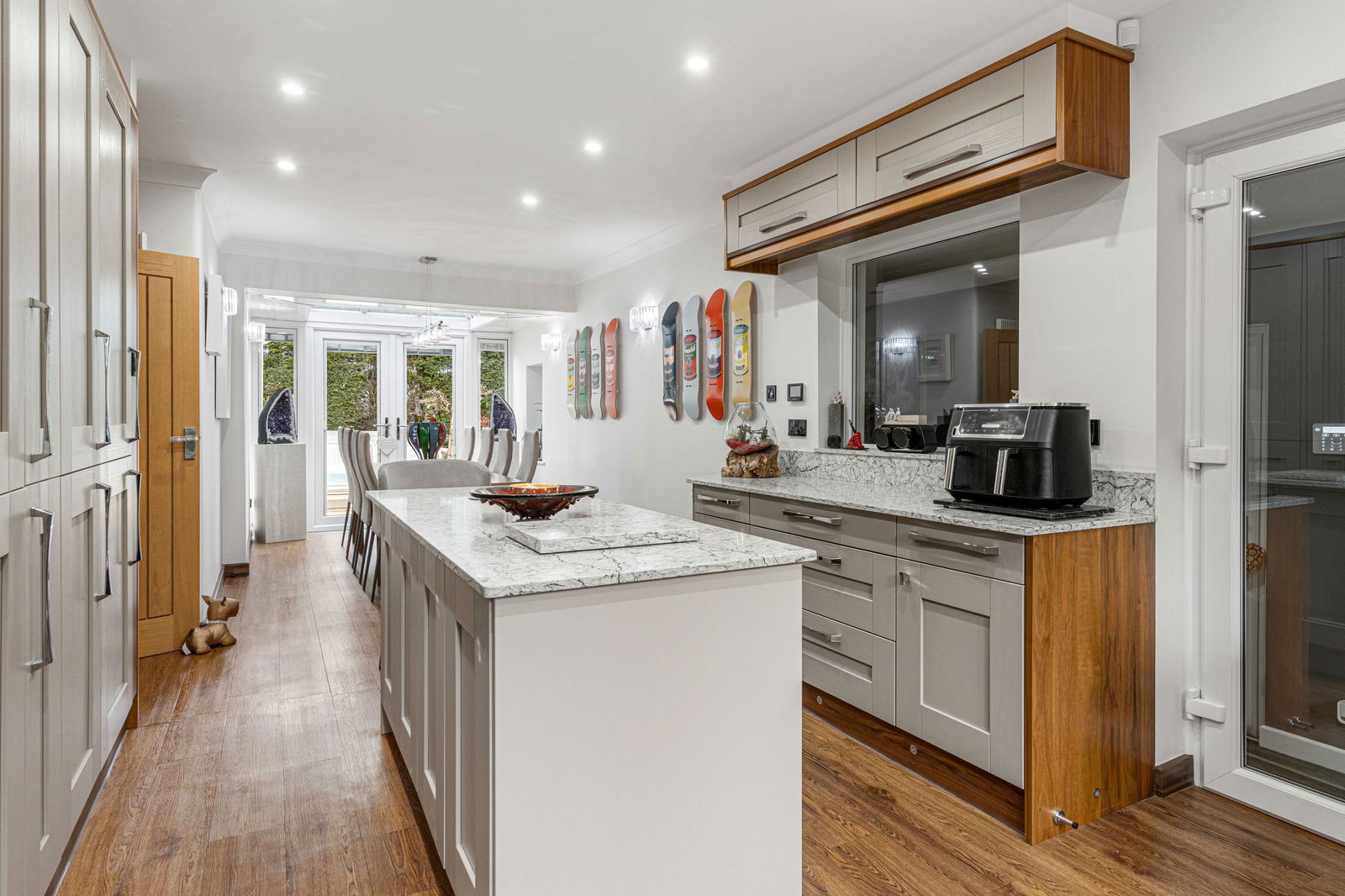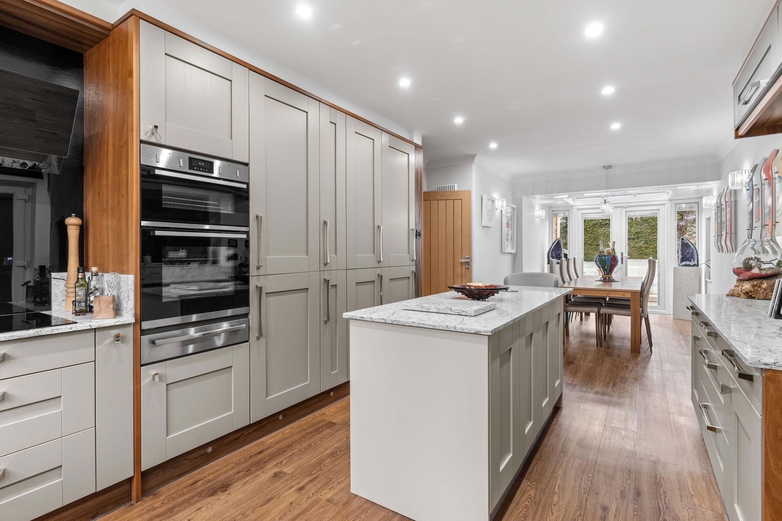 Step Inside Chantilly where the stylish interior includes a recently refurbished kitchen/family room – beyond is a ground floor principal bedroom with French doors (built-in blinds) opening out to the garden and a beautifully styled en-suite shower room and fitted wardrobes. The bespoke kitchen features LED lighting (App controlled), quartz worktops and range of Shaker style units incorporating Neff built-in appliances including double oven, plate warmer/proving drawer, dishwasher, microwave, extractor and fridge/freezer. The dining area beyond the kitchen has french doors opening out to the outside entertaining area. A further bedroom/study is adjacent with a family bathroom. To the front aspect is a spacious and welcoming reception room. Beyond the kitchen and accessed from the hallway which runs front to back, is a utility area with cloakroom, shower room and stairs leading up to the first floor. This area can be utilised as a separate Annex with the use of the utility as a kitchen and first floor bedroom. There are three bedrooms to the first floor, dressing space and lots of storage space including areas of the loft which are easily accessible.