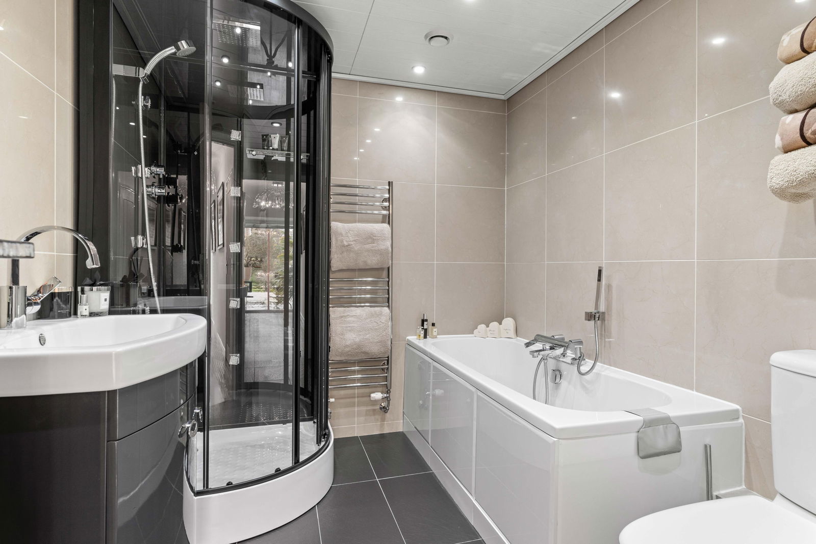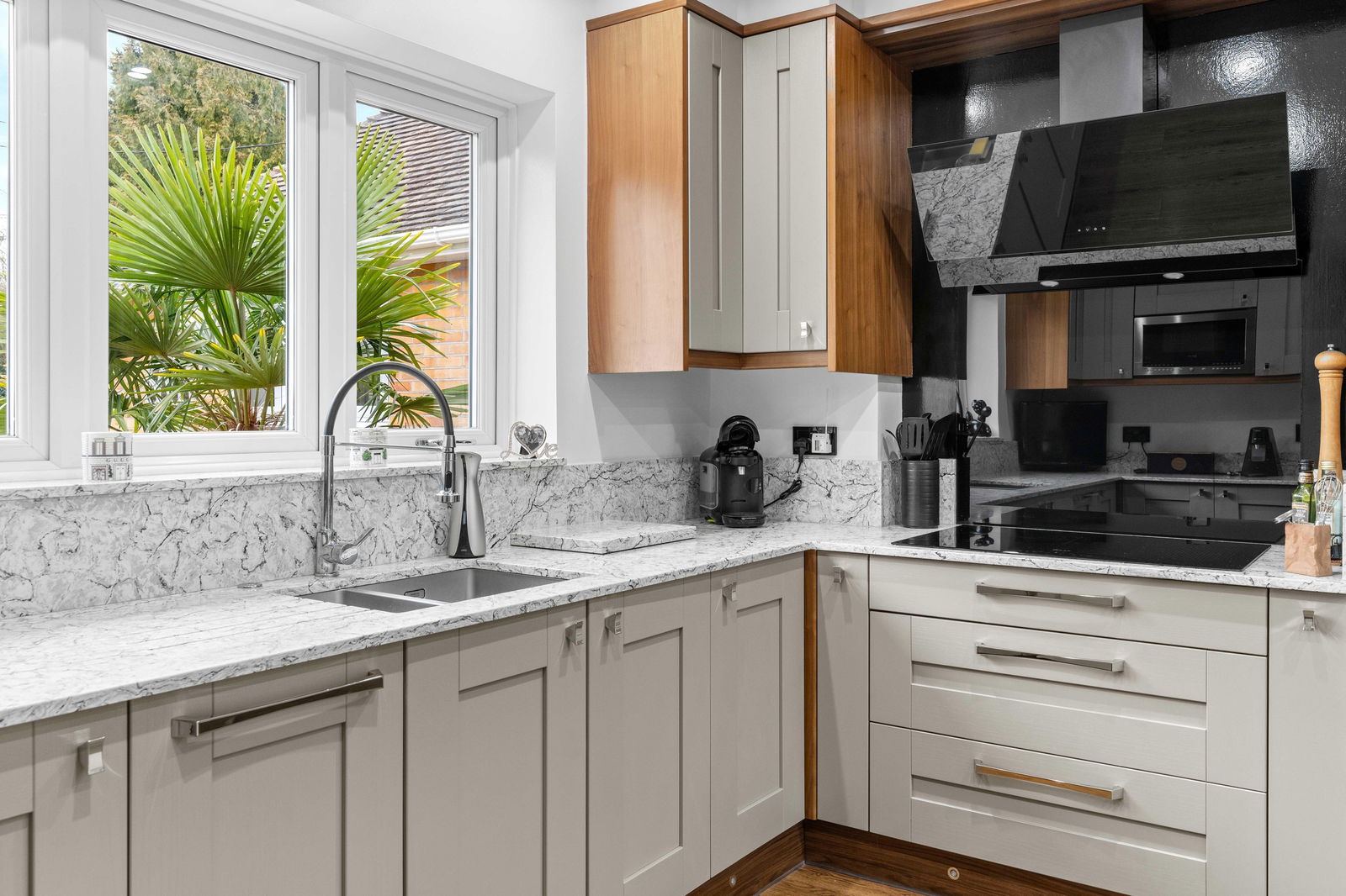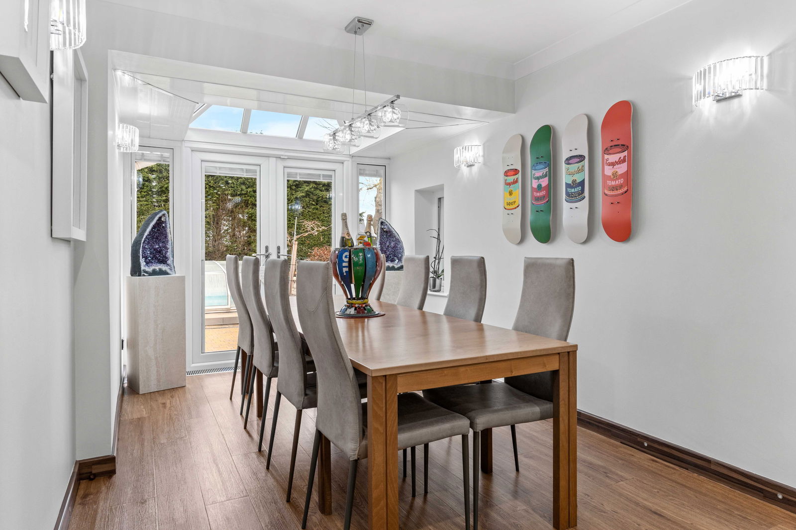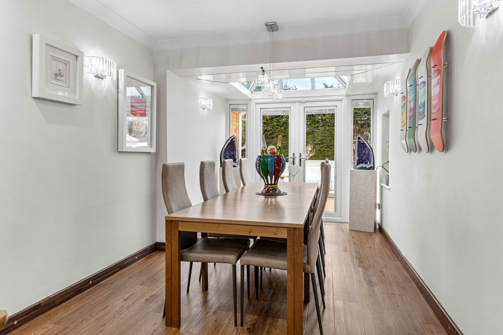 Step Inside Chantilly where the stylish interior includes a recently refurbished kitchen/family room – beyond is a ground floor principal bedroom with French doors (built-in blinds) opening out to the garden and a beautifully styled en-suite shower room and fitted wardrobes. The bespoke kitchen features LED lighting (App controlled), quartz worktops and range of Shaker style units incorporating Neff built-in appliances including double oven, plate warmer/proving drawer, dishwasher, microwave, extractor and fridge/freezer. The dining area beyond the kitchen has french doors opening out to the outside entertaining area. A further bedroom/study is adjacent with a family bathroom. To the front aspect is a spacious and welcoming reception room. Beyond the kitchen and accessed from the hallway which runs front to back, is a utility area with cloakroom, shower room and stairs leading up to the first floor. This area can be utilised as a separate Annex with the use of the utility as a kitchen and first floor bedroom. There are three bedrooms to the first floor, dressing space and lots of storage space including areas of the loft which are easily accessible.