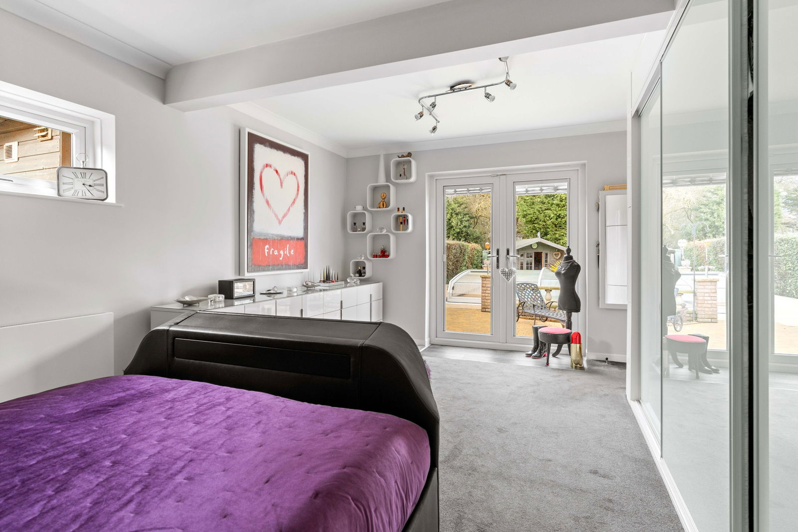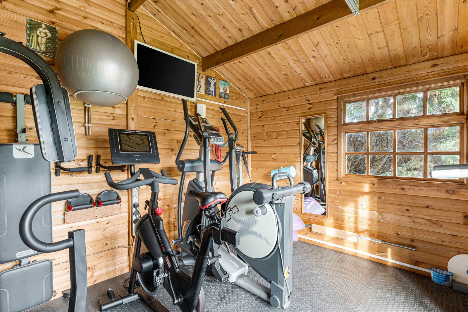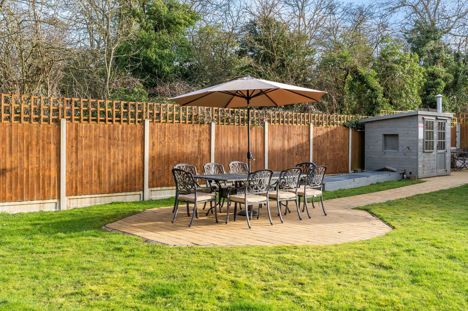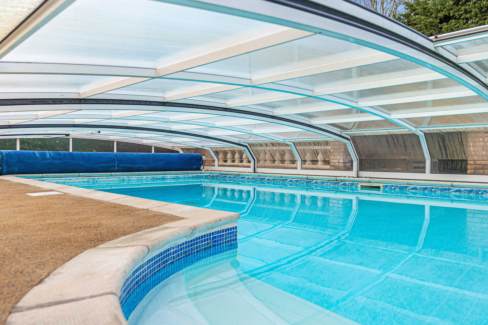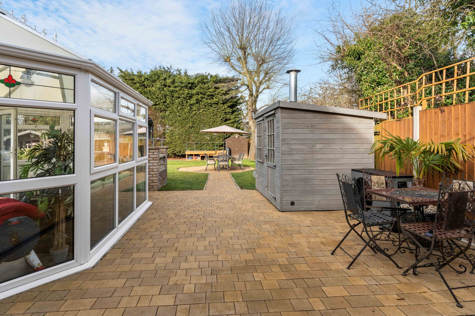 Step outside and a private gated entrance, with electric gates, leads into a paved parking area and access to the double garage. Externally there is feature LED lighting and areas of soft landscaping including an established Olive tree. A gated side access leads through to the landscaped rear garden featuring a free-standing Conservatory and covered Hot Tub (to remain). The Swimming pool has an insulated retractable cover and heated by a recently installed Air Source Heat Pump. There is also ample space for outside entertaining with a BBQ/bar area, together with a workshop and a Summerhouse which currently has gym equipment (by negotiation). There is also a car cleaning station in the car port with filtered rain water harvesting and power to the outbuildings. Both front and rear gardens are very private and not overlooked.