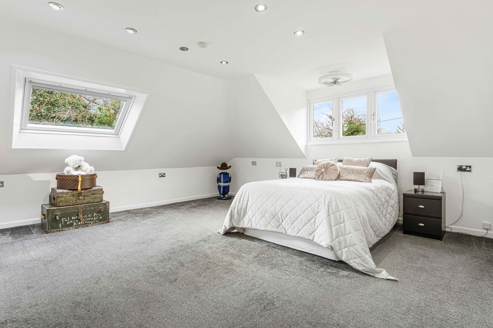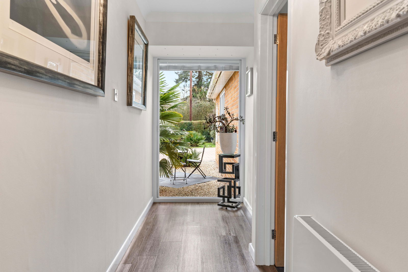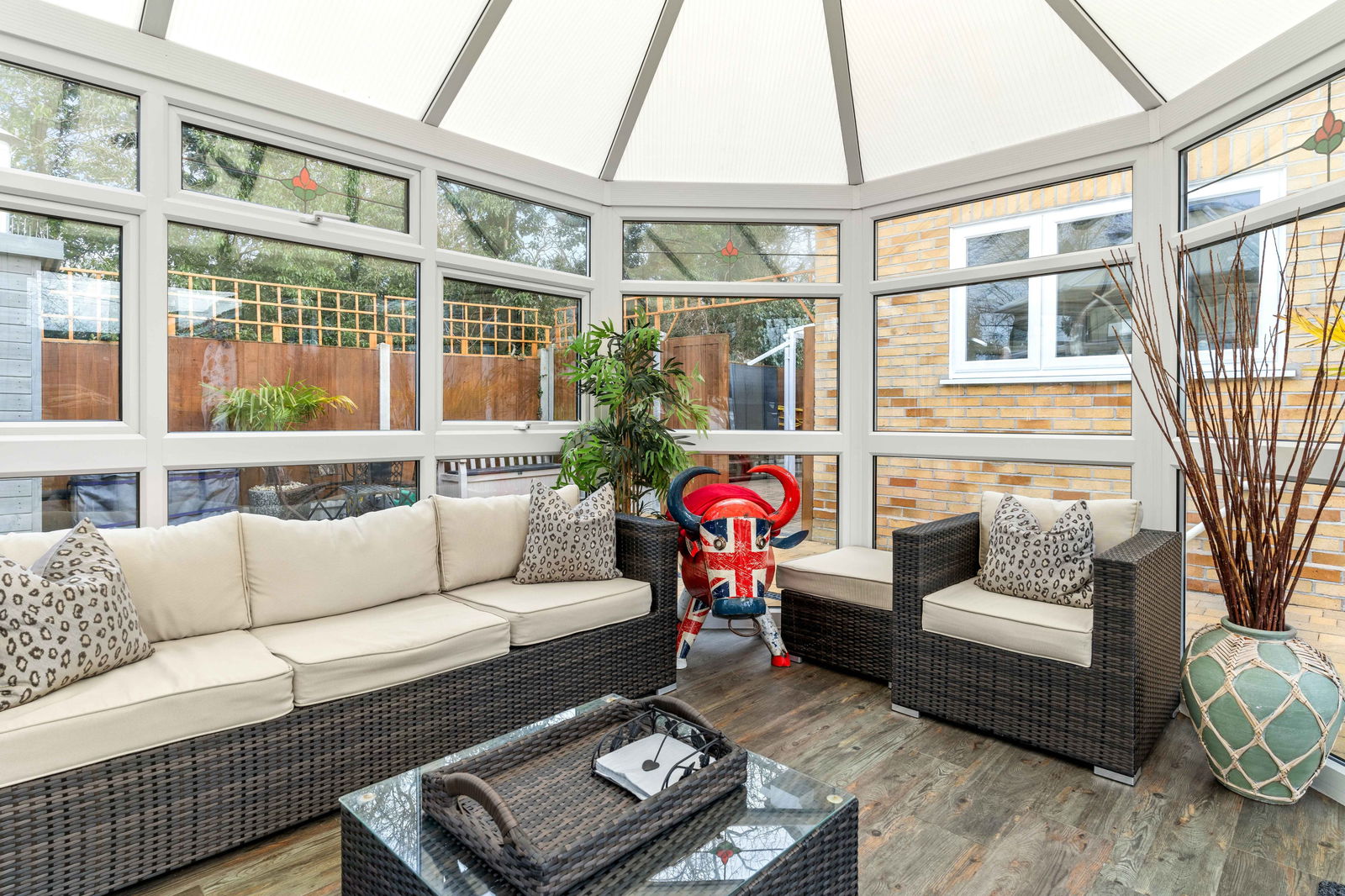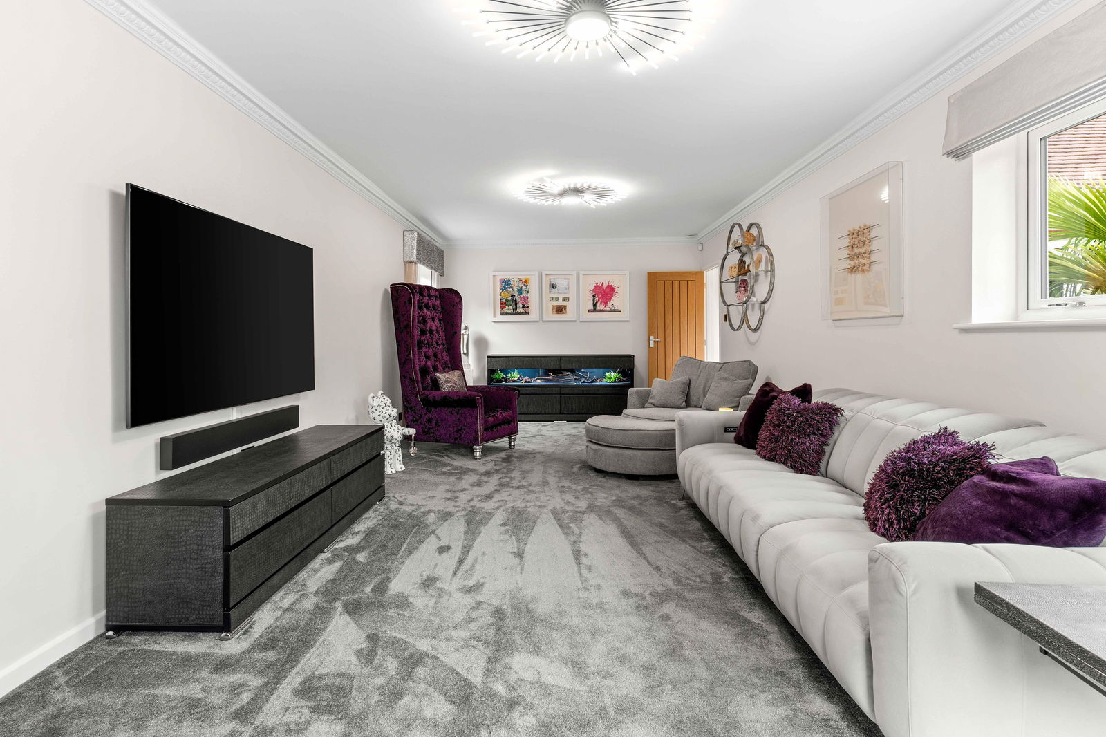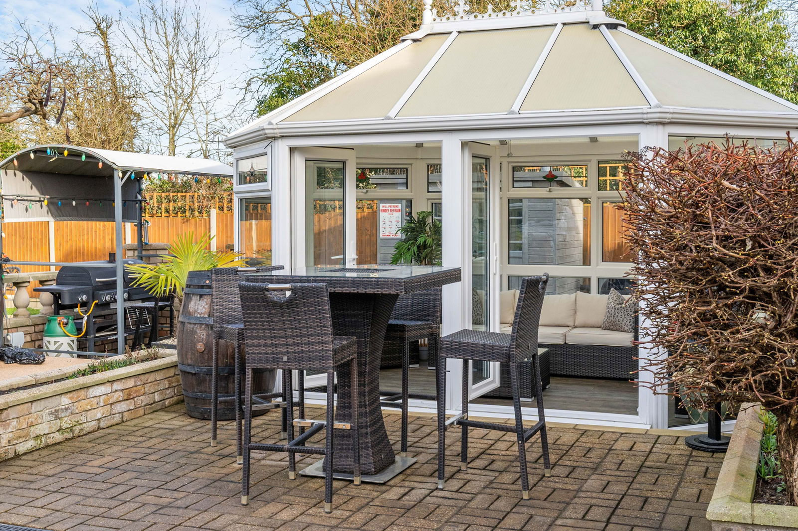Step outside and a private gated entrance, with electric gates, leads into a paved parking area and access to the double garage. Externally there is feature LED lighting and areas of soft landscaping including an established Olive tree. A gated side access leads through to the landscaped rear garden featuring a free-standing Conservatory and covered Hot Tub (to remain). The Swimming pool has an insulated retractable cover and heated by a recently installed Air Source Heat Pump. There is also ample space for outside entertaining with a BBQ/bar area, together with a workshop and a Summerhouse which currently has gym equipment (by negotiation). There is also a car cleaning station in the car port with filtered rain water harvesting and power to the outbuildings. Both front and rear gardens are very private and not overlooked.