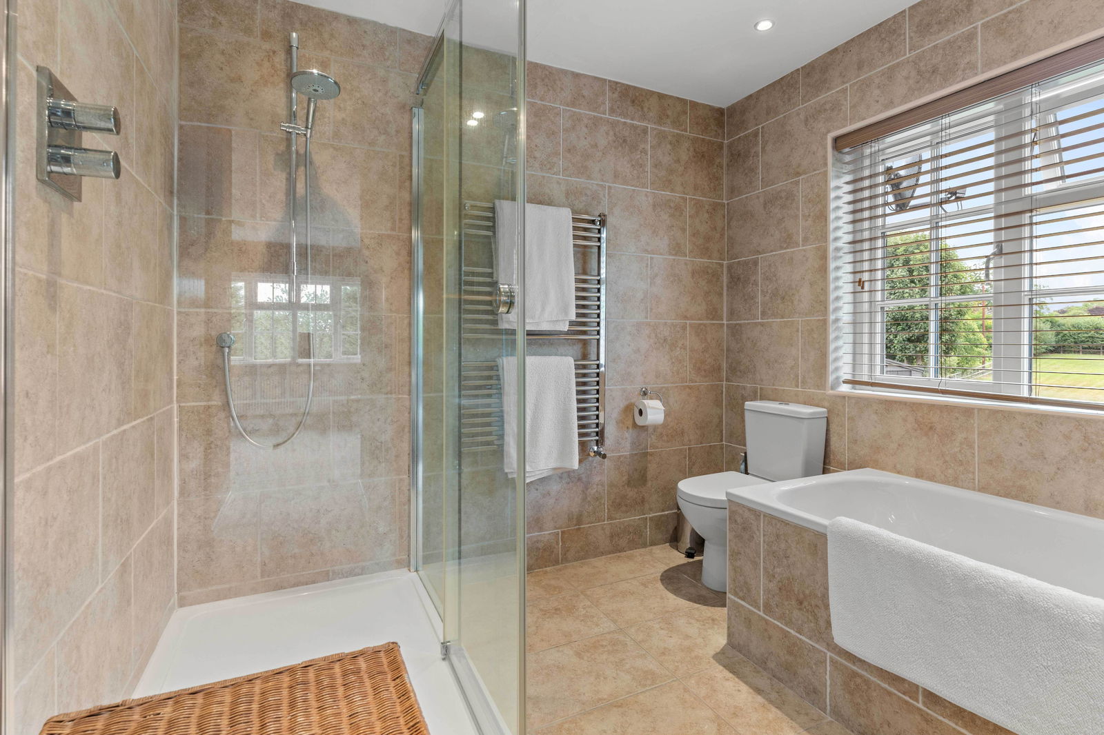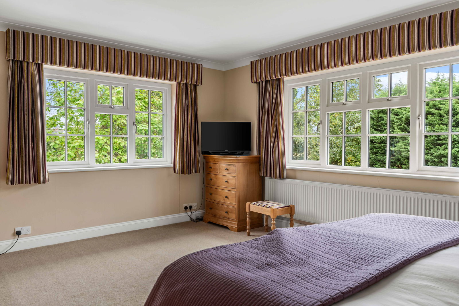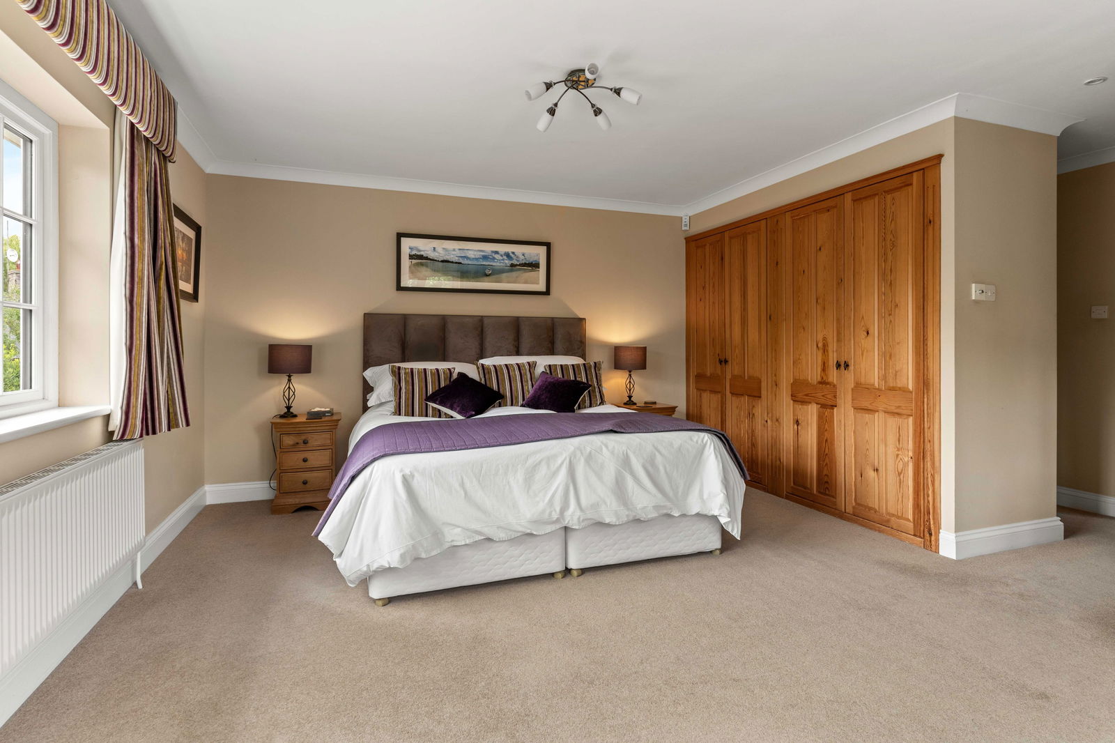 Upstairs, the impressive principal bedroom suite boasts its own private bathroom and shower, offering a luxurious retreat. Bedroom two features an en-suite shower room, while three additional double bedrooms share a well-appointed family bathroom. All the bedrooms benefit from views across surrounding countryside.