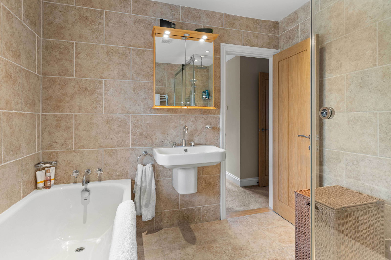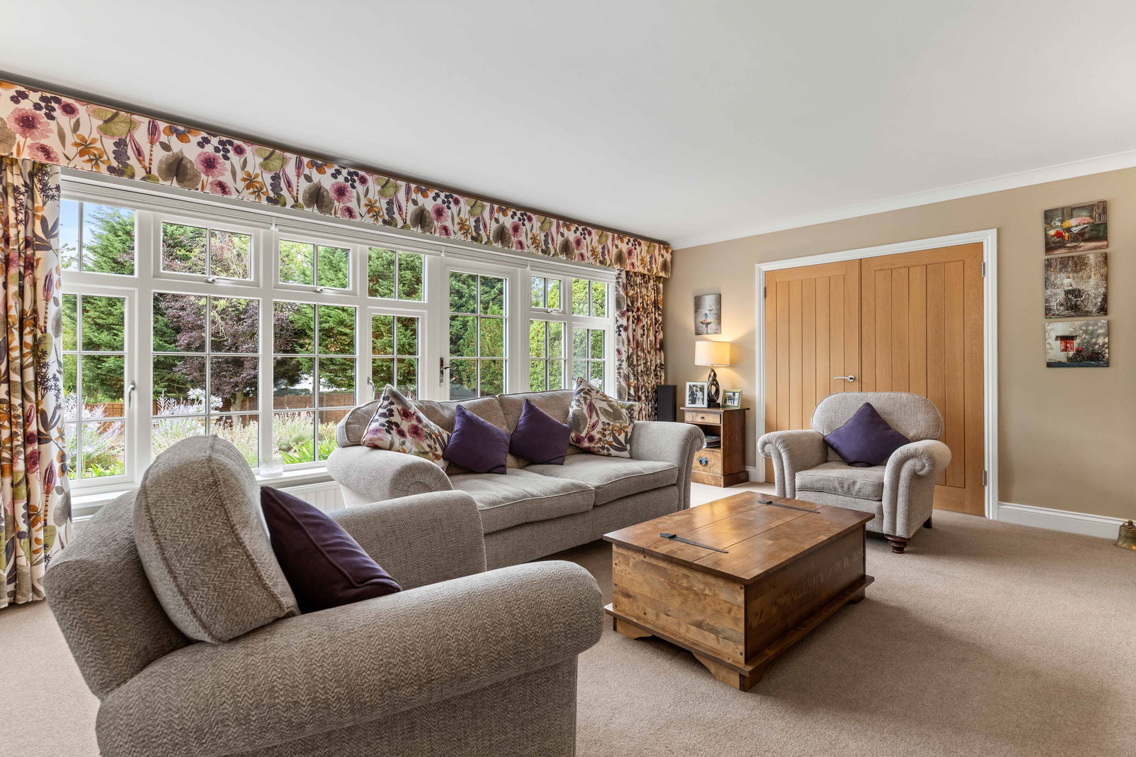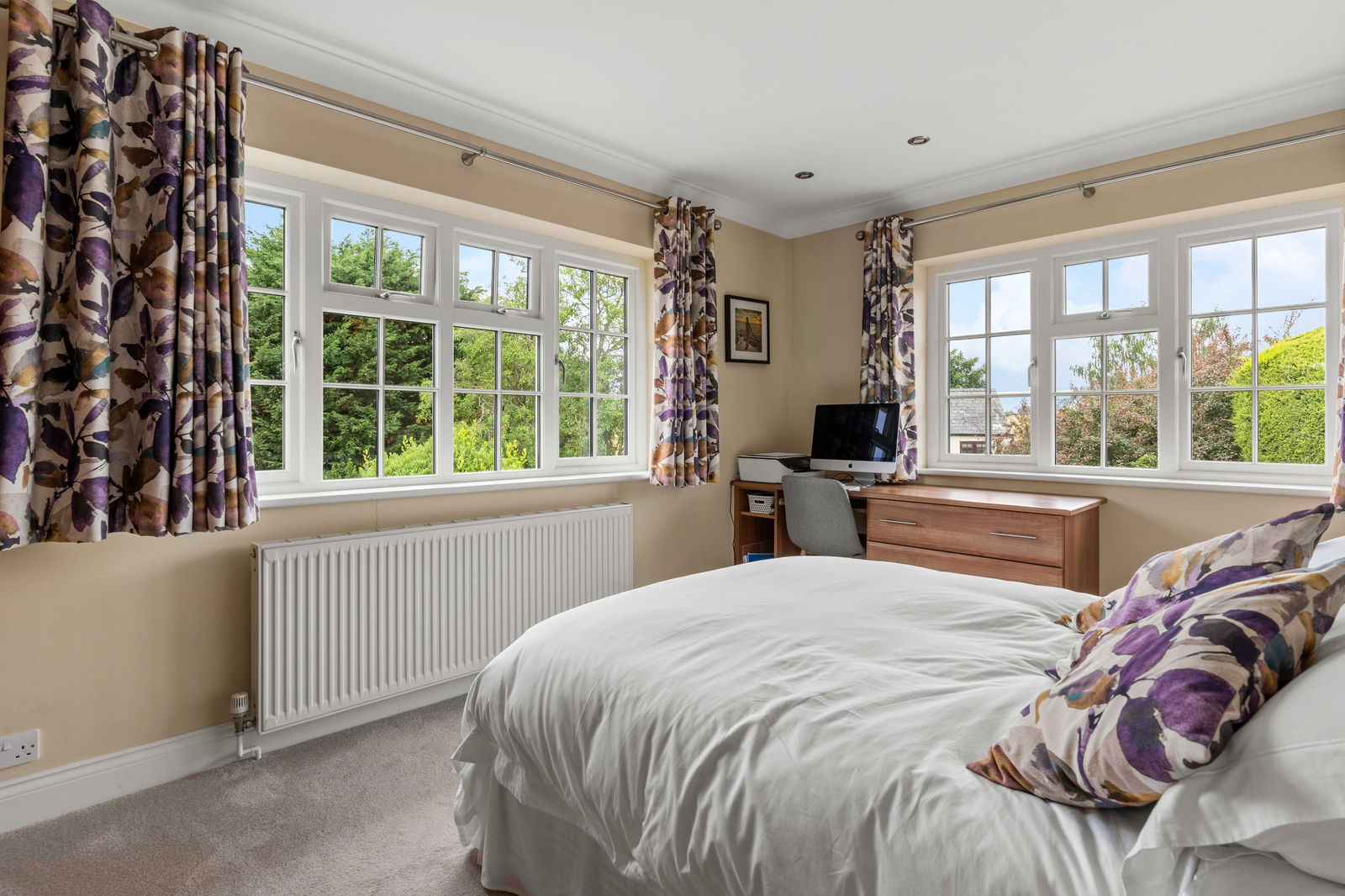 Upstairs, the impressive principal bedroom suite boasts its own private bathroom and shower, offering a luxurious retreat. Bedroom two features an en-suite shower room, while three additional double bedrooms share a well-appointed family bathroom. All the bedrooms benefit from views across surrounding countryside.