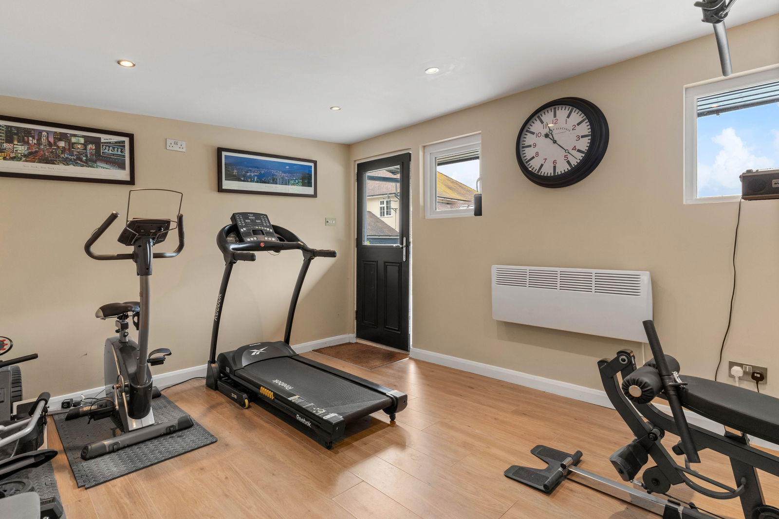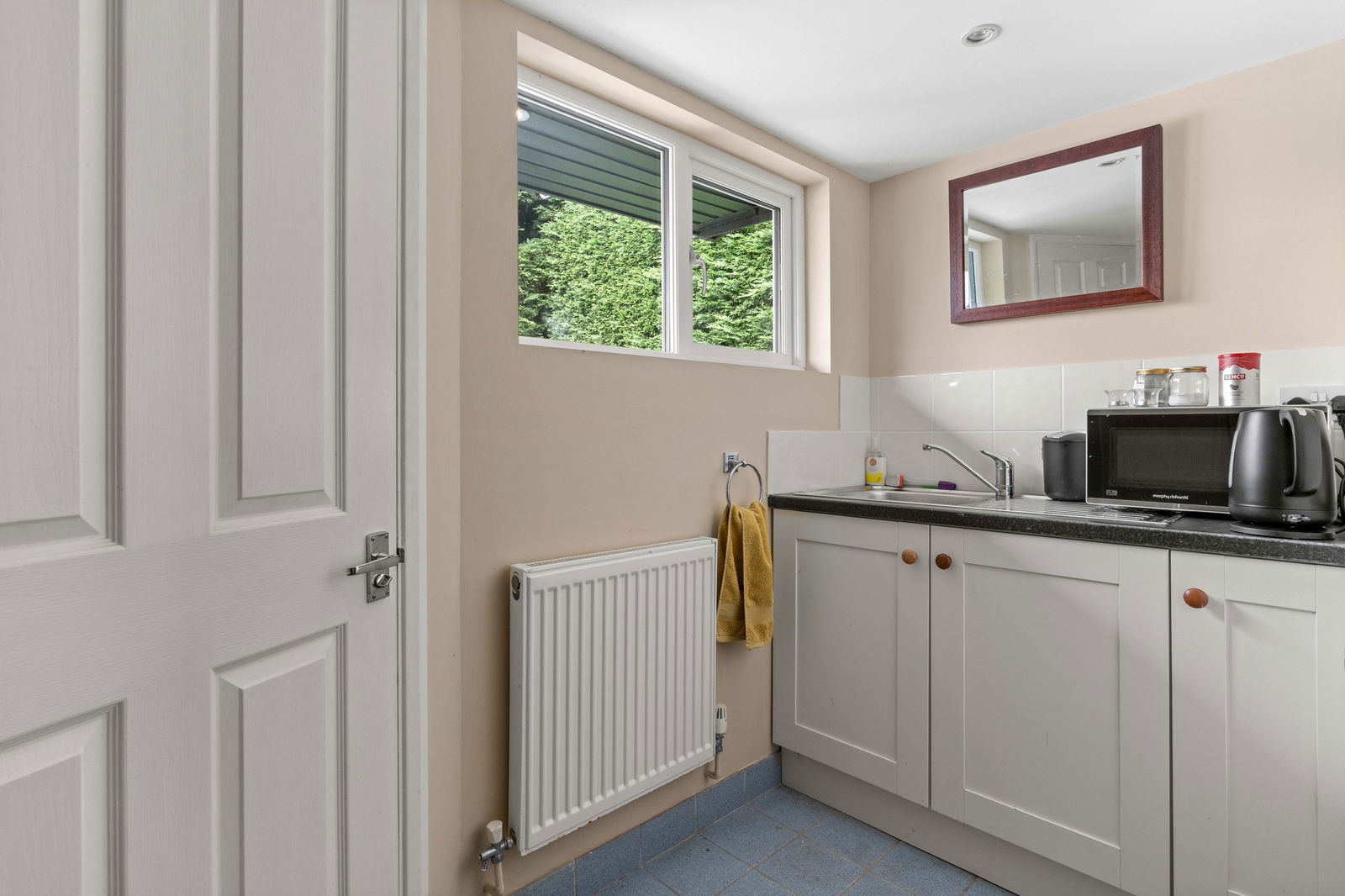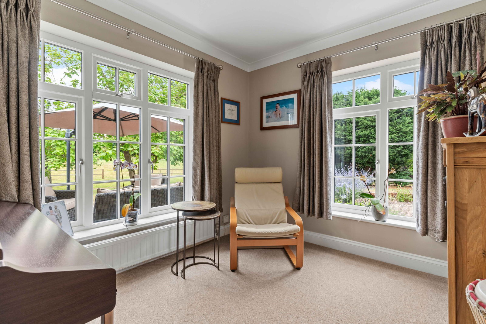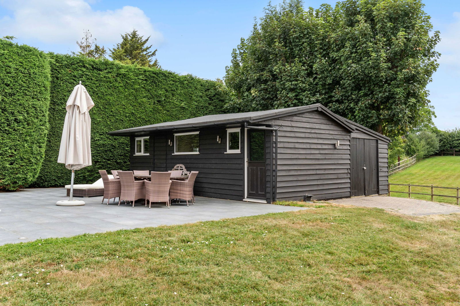 Adjacent to the pool is a weatherboarded pool room/gym, along with an additional changing room complete with shower, WC, and a small kitchen area—ideal for summer gatherings or guest use. Tucked behind is a versatile workshop, fitted with double doors to accommodate garden equipment or machinery storage. Totalling1.7 acres, there is a dedicated paddock area, with post and rail fencing, ideal for equestrian use.