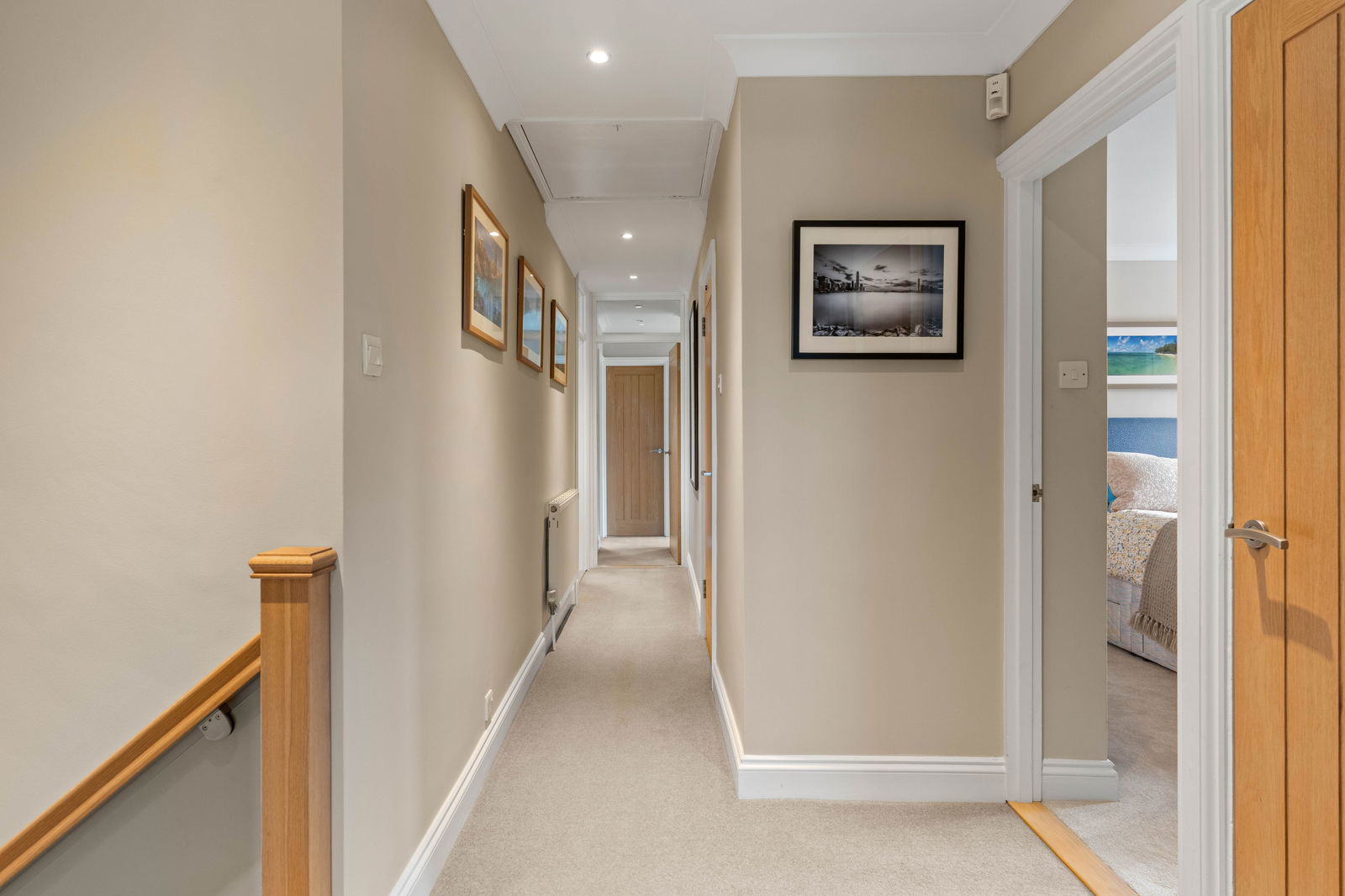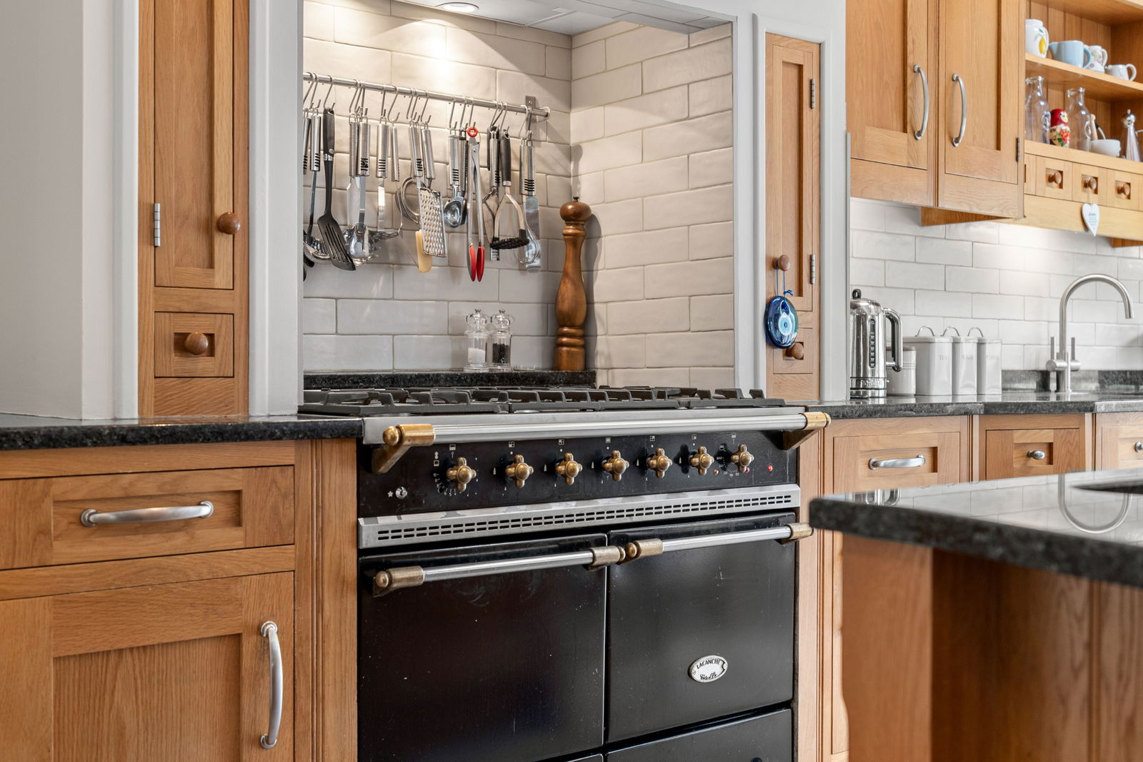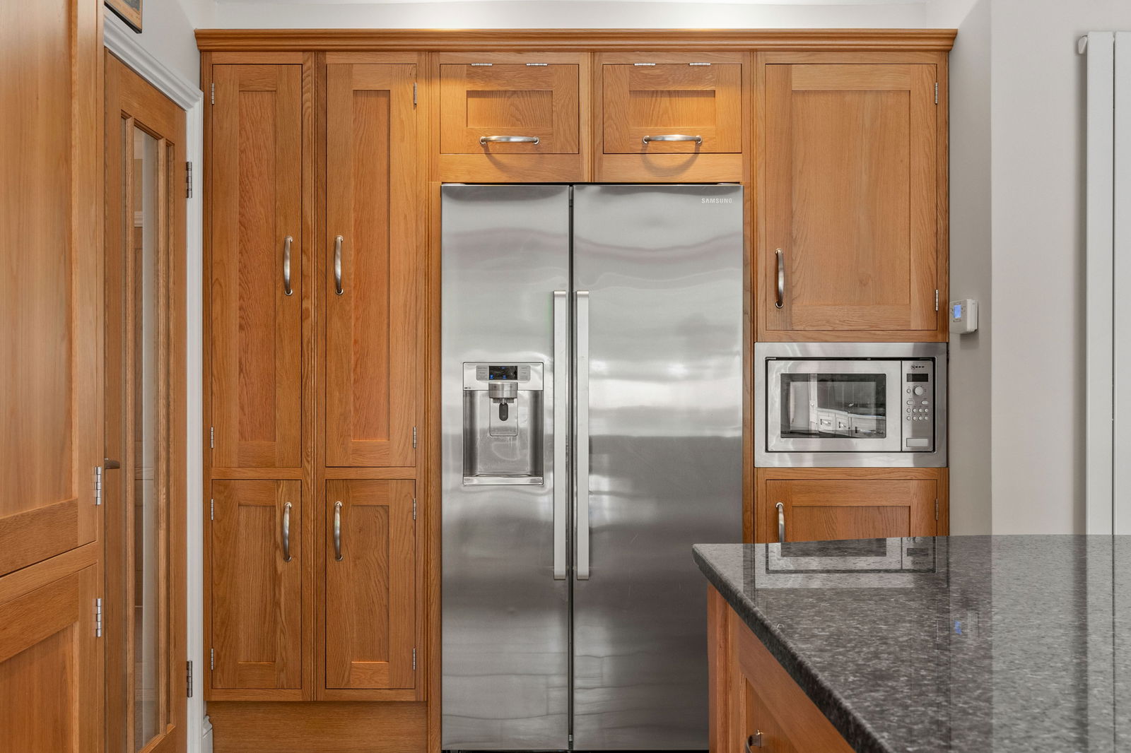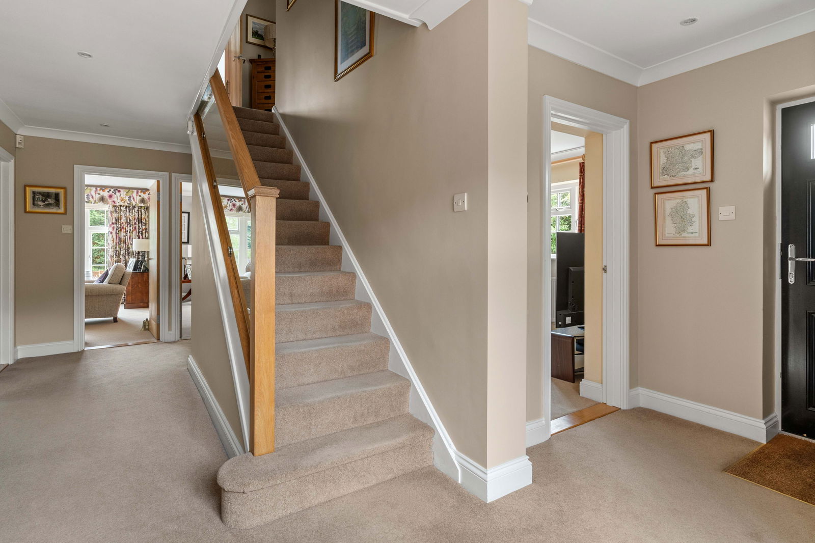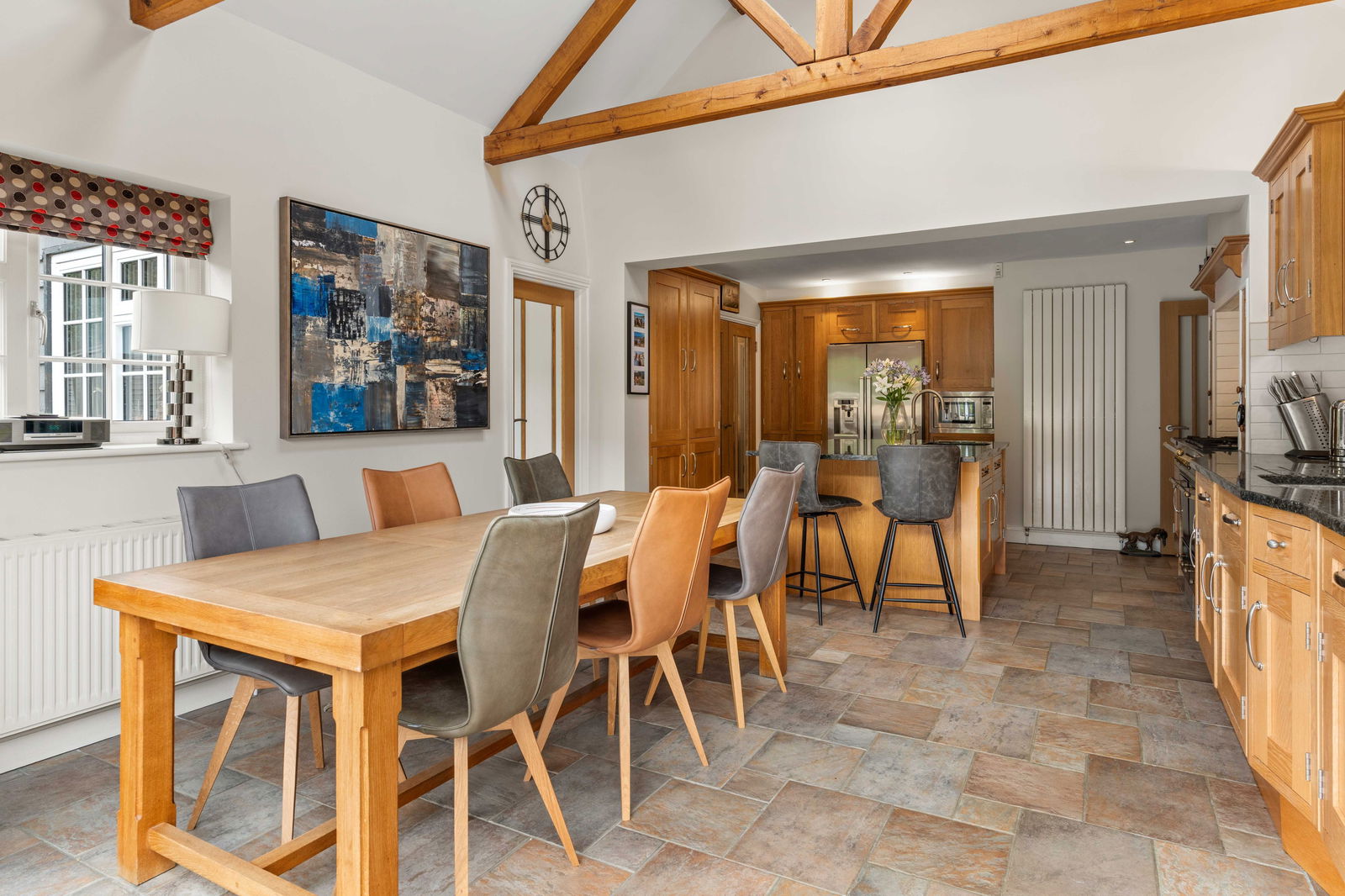 Inside, the property is finished to an exceptional standard, featuring elegant interiors and generously proportioned living areas. The ground floor includes four distinct reception rooms, a dedicated study and a music room, providing versatile spaces for family life and entertaining. Traditional touches include feature fireplace and original built-in cabinetry, together with oak double doors connecting the reception areas. The bespoke oak kitchen/breakfast room, with its stunning vaulted ceiling, is both stylish and functional incorporating built-in appliances and ample space for breakfast dining, with an adjoining utility/boot room and a convenient cloakroom/WC off the welcoming hallway.