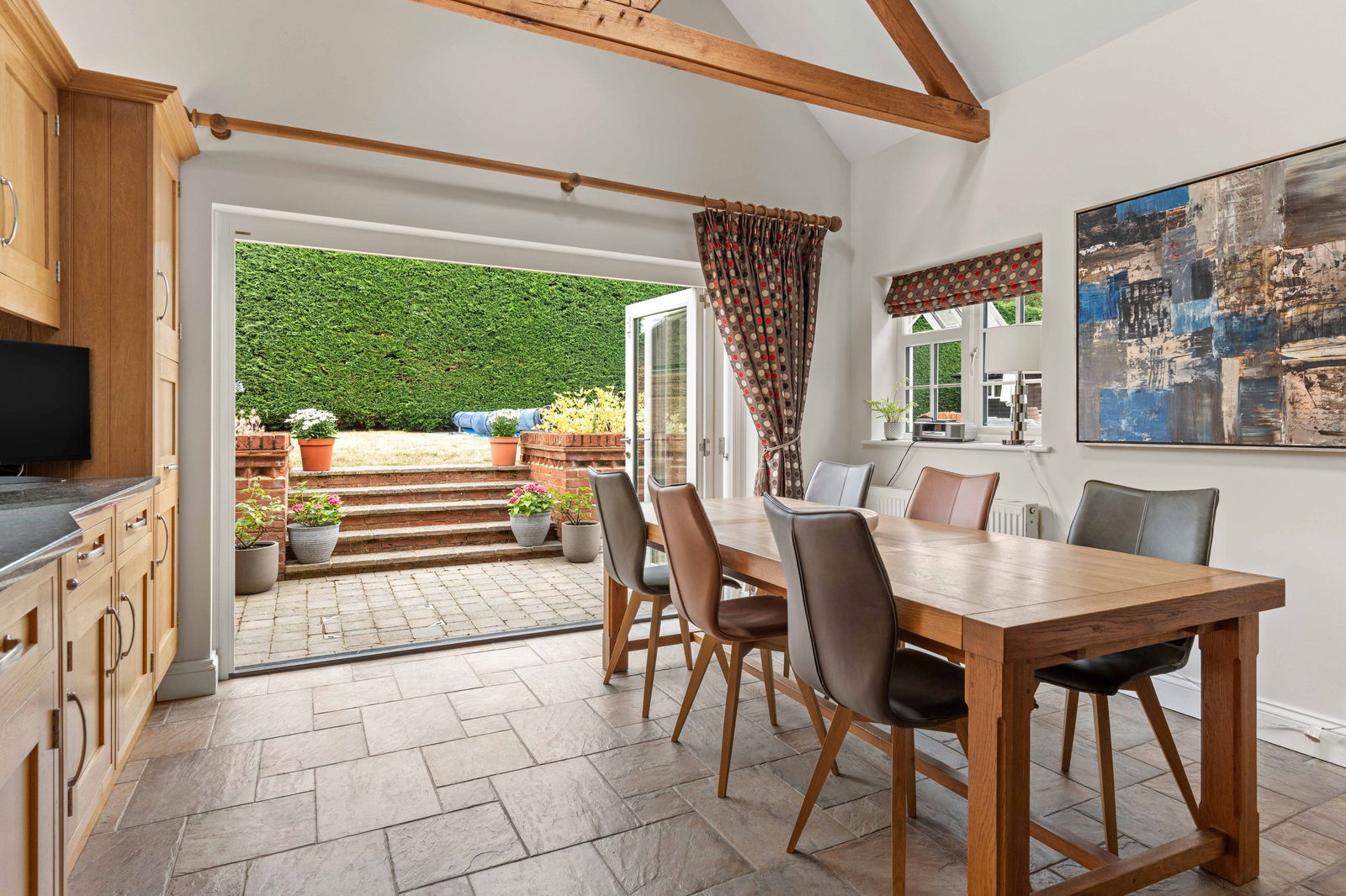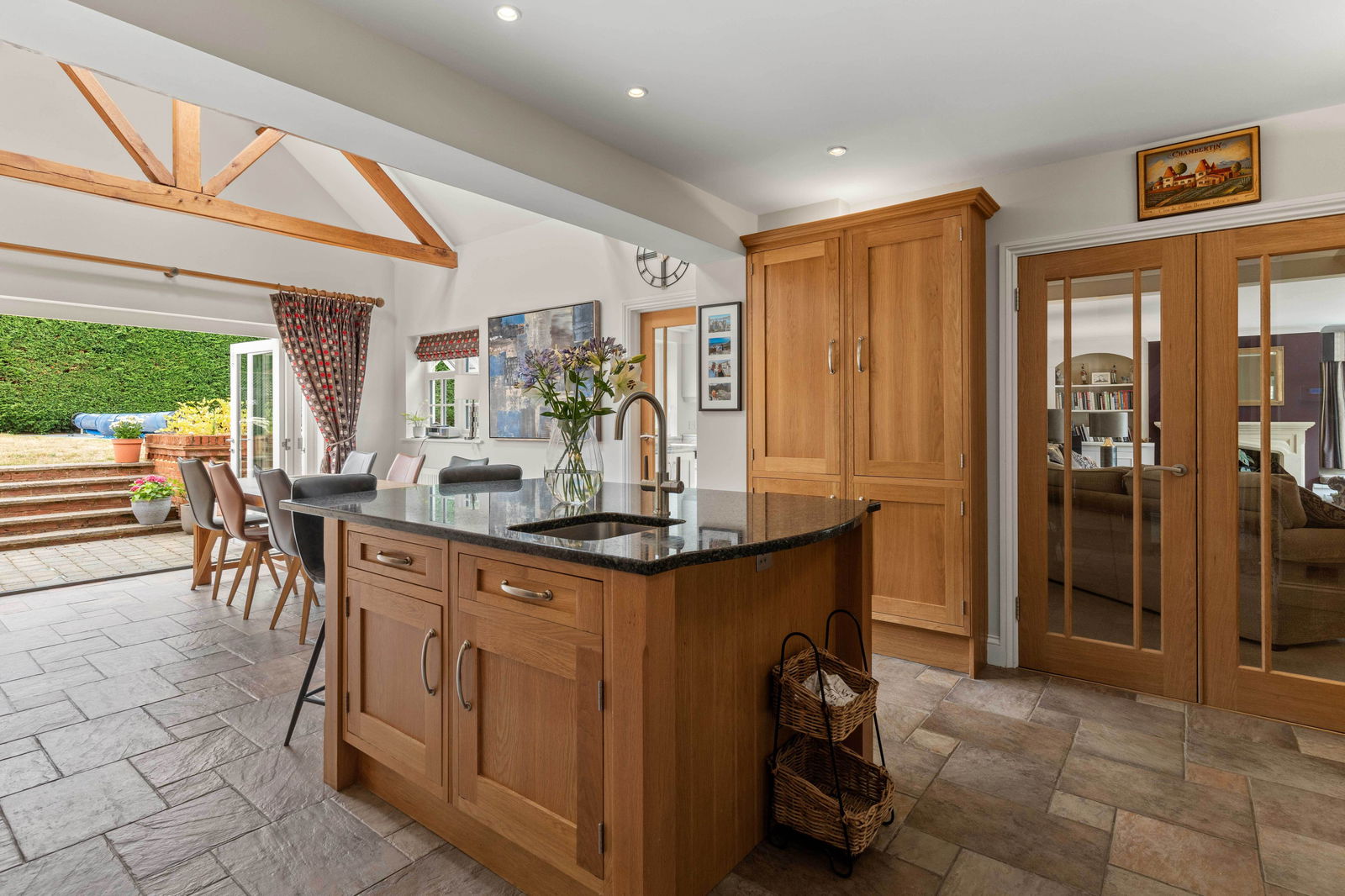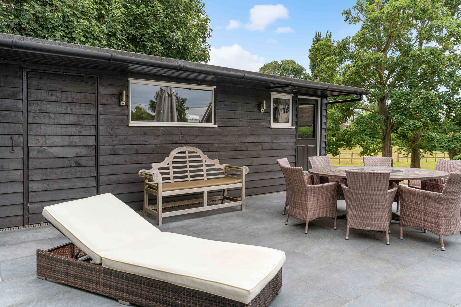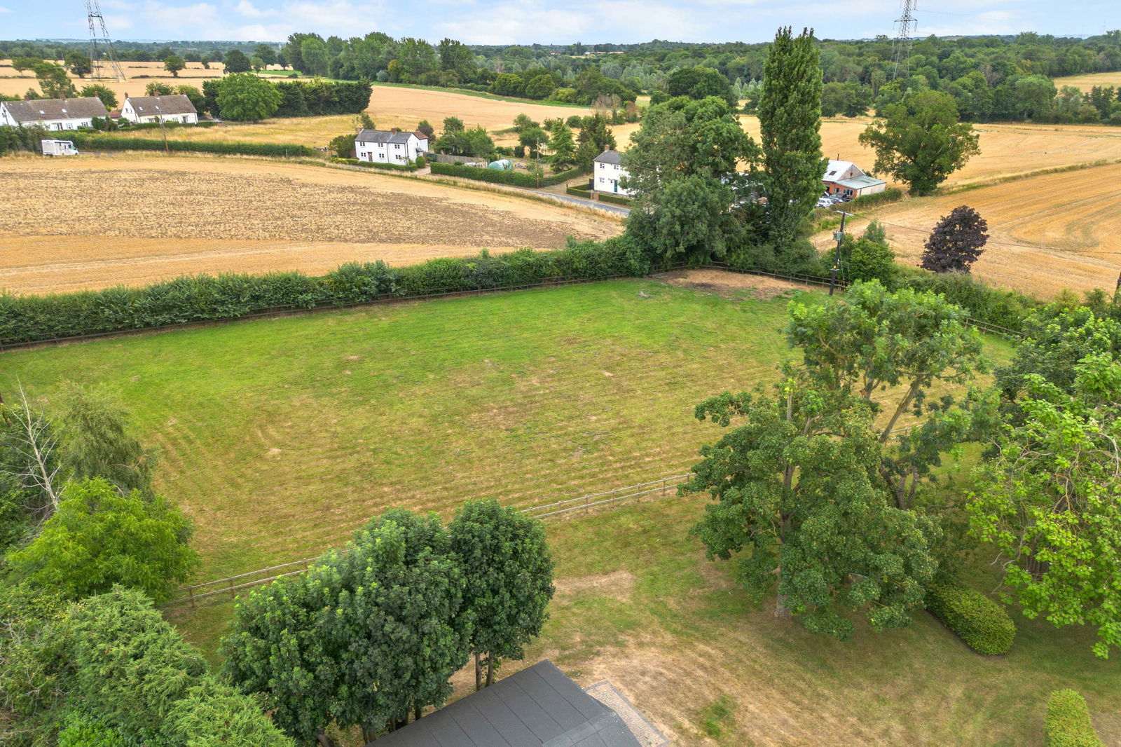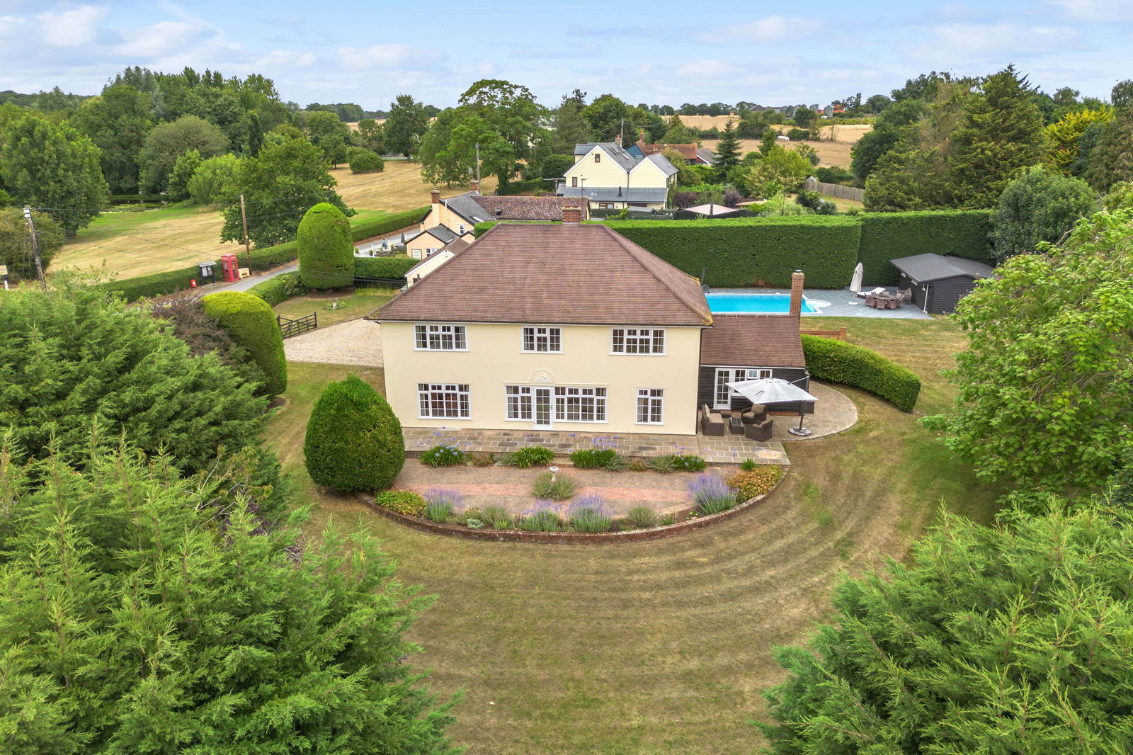 Elegant country living near Chelmsford. A beautifully presented 5 bedroom country residence in a small semi-rural hamlet set in 1.7 acres. With its own swimming pool, manicured garden, paddock area and stylish interior with bespoke oak kitchen and principal bedroom suite.