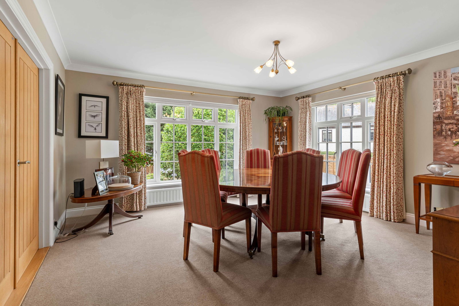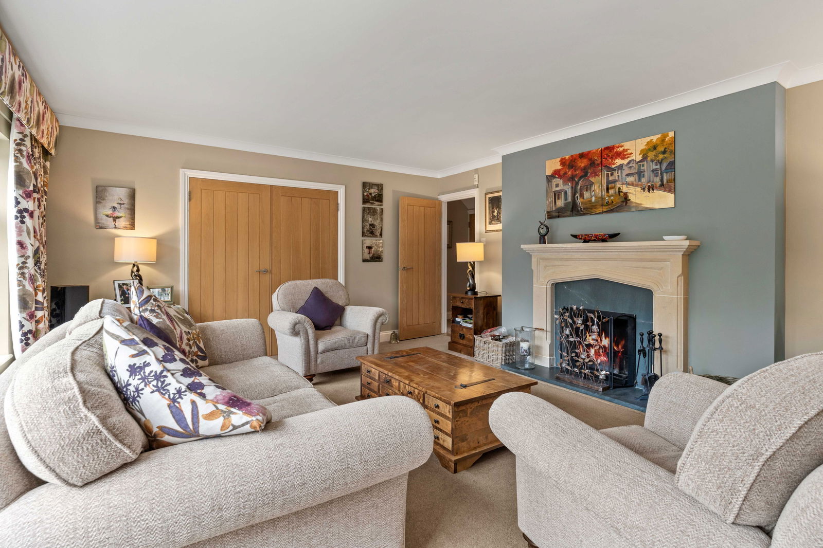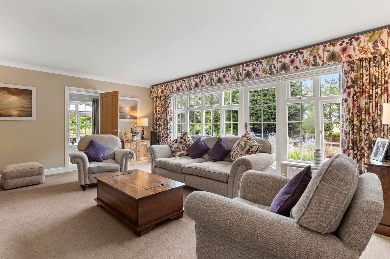 Lichfield House is approached via a sweeping private driveway, leading to a detached double garage and ample parking. The manicured gardens surrounding the house provide generous outdoor space for families and are thoughtfully designed to complement the elegance of the home. A particular highlight is the heated swimming pool, discreetly screened by low hedging to offer both privacy and a sun-drenched retreat during the summer months. This area is perfect for outdoor entertaining and relaxation, with ample space for seating, lounging and dining.