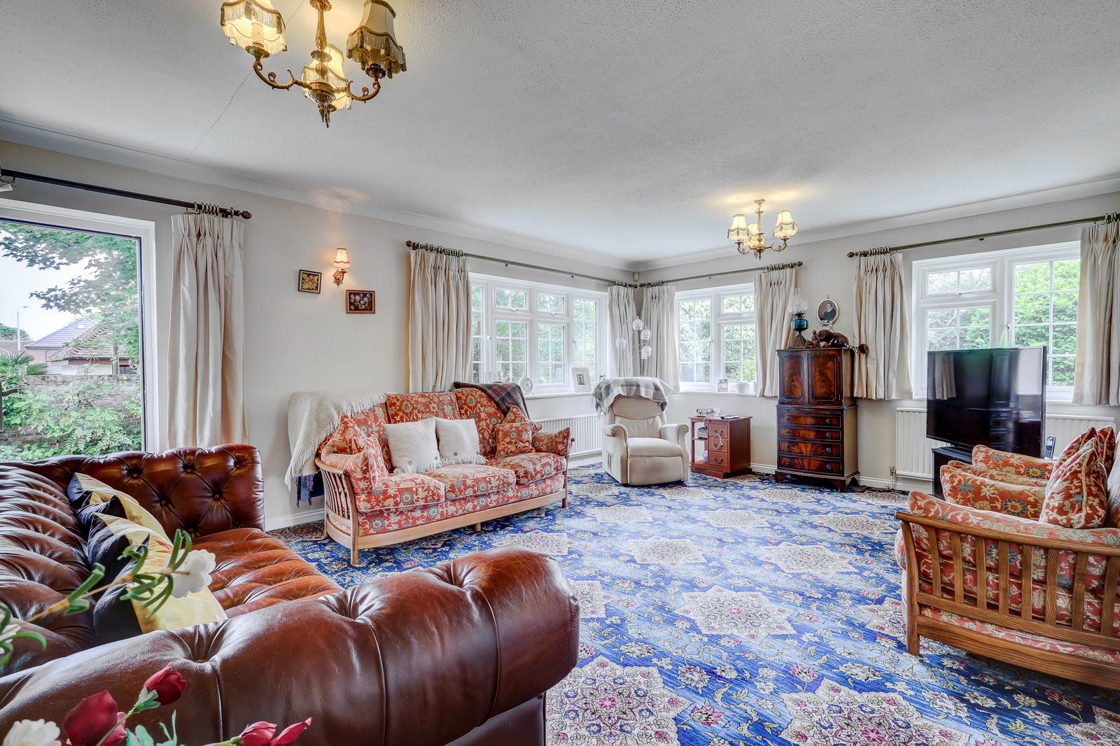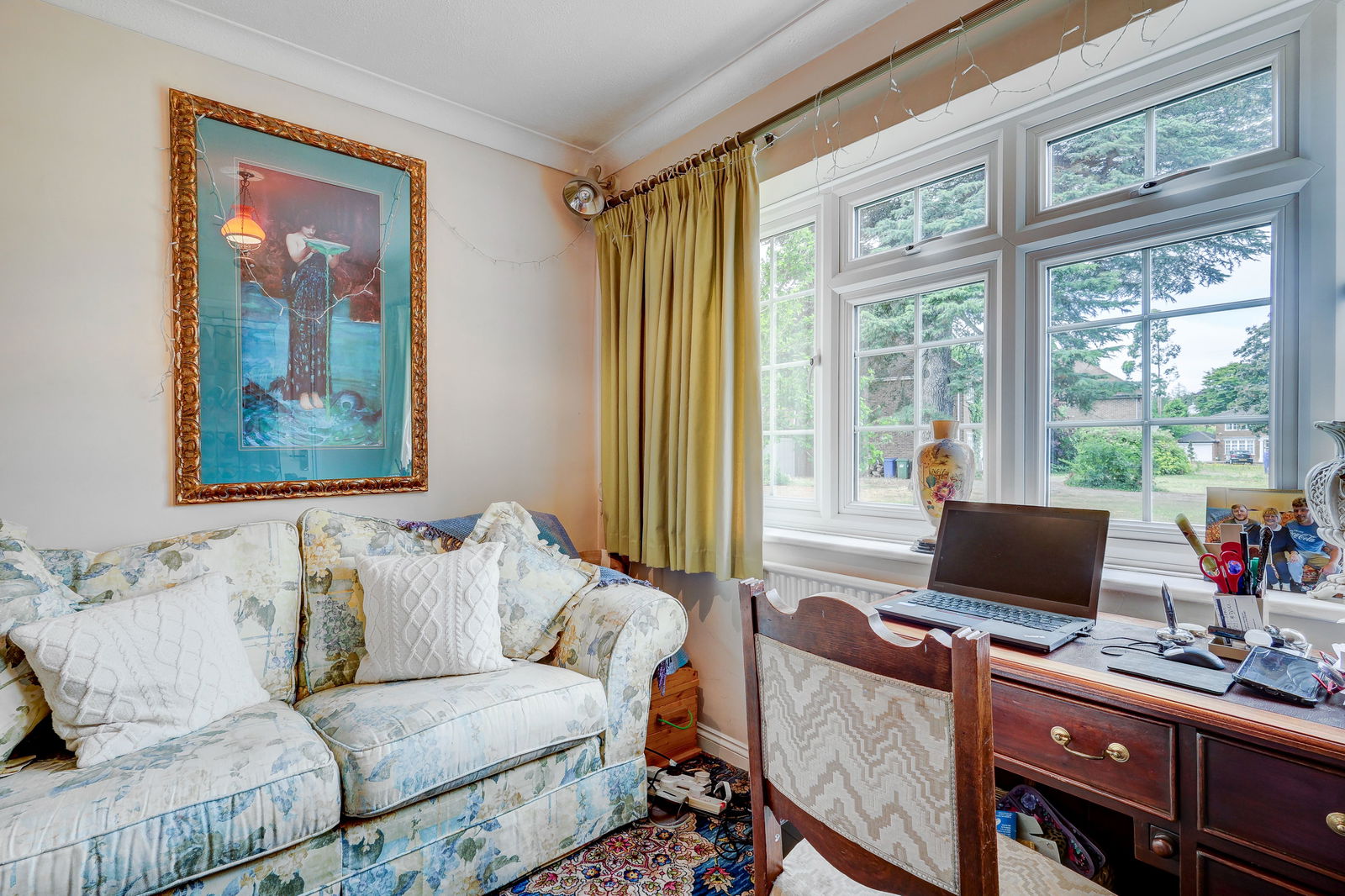 Step inside to a welcoming central entrance hallway, leading to a front-aspect dining room and a separate study—ideal for formal entertaining or working from home. The spacious dual-aspect sitting room enjoys abundant natural light through large picture windows and overlooks the rear garden, creating a bright and inviting living space.