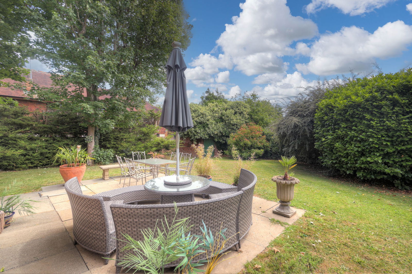 Outside there is a terrace across the width of the property, a personal door into the garage and sunny paved seating area with lawns and boundaries screened with mature hedging and shrubs.