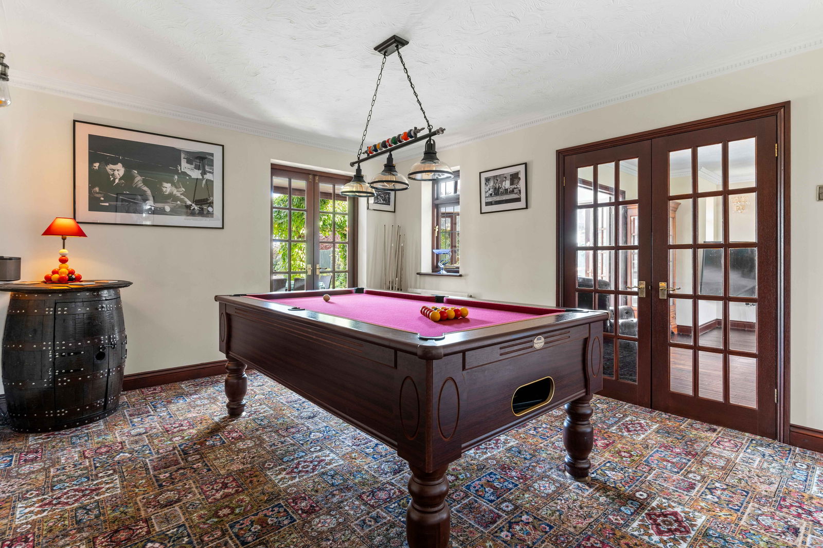 To the front of the property, a formal dining room and a study/home office provide elegant yet practical living spaces. At the heart of the home is a striking pool/games room, creating a vibrant hub for relaxation and recreation.