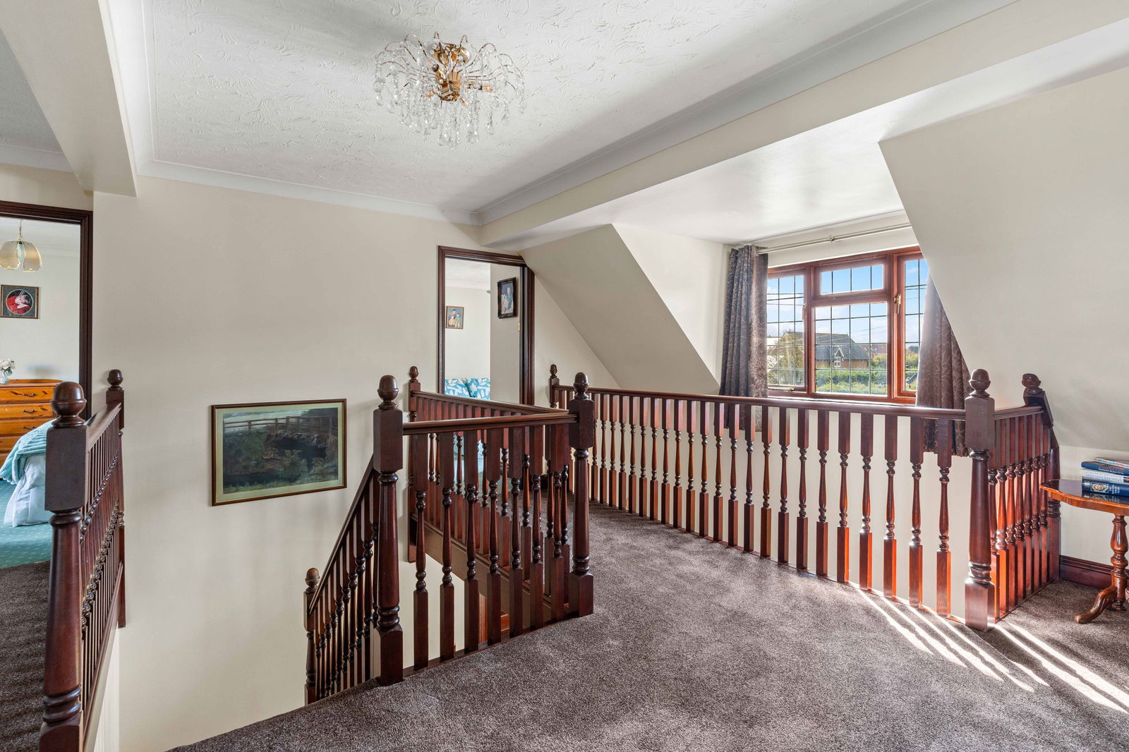 The four further double bedrooms each benefit from built-in storage, while the stylish main bathroom also features a freestanding bath and separate shower.