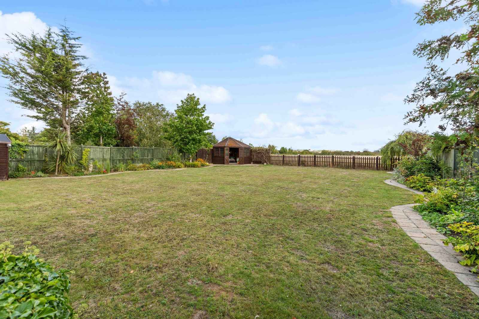 Set within approximately half an acre, the landscaped gardens are simply beautiful. Thoughtfully designed with feature lighting, well-kept lawns, established borders, mature trees and shrubs, the outside space offers tranquillity as well as functionality. A charming garden room/summerhouse provides additional space to relax and enjoy the surroundings, complemented by a garden shed for practical storage.