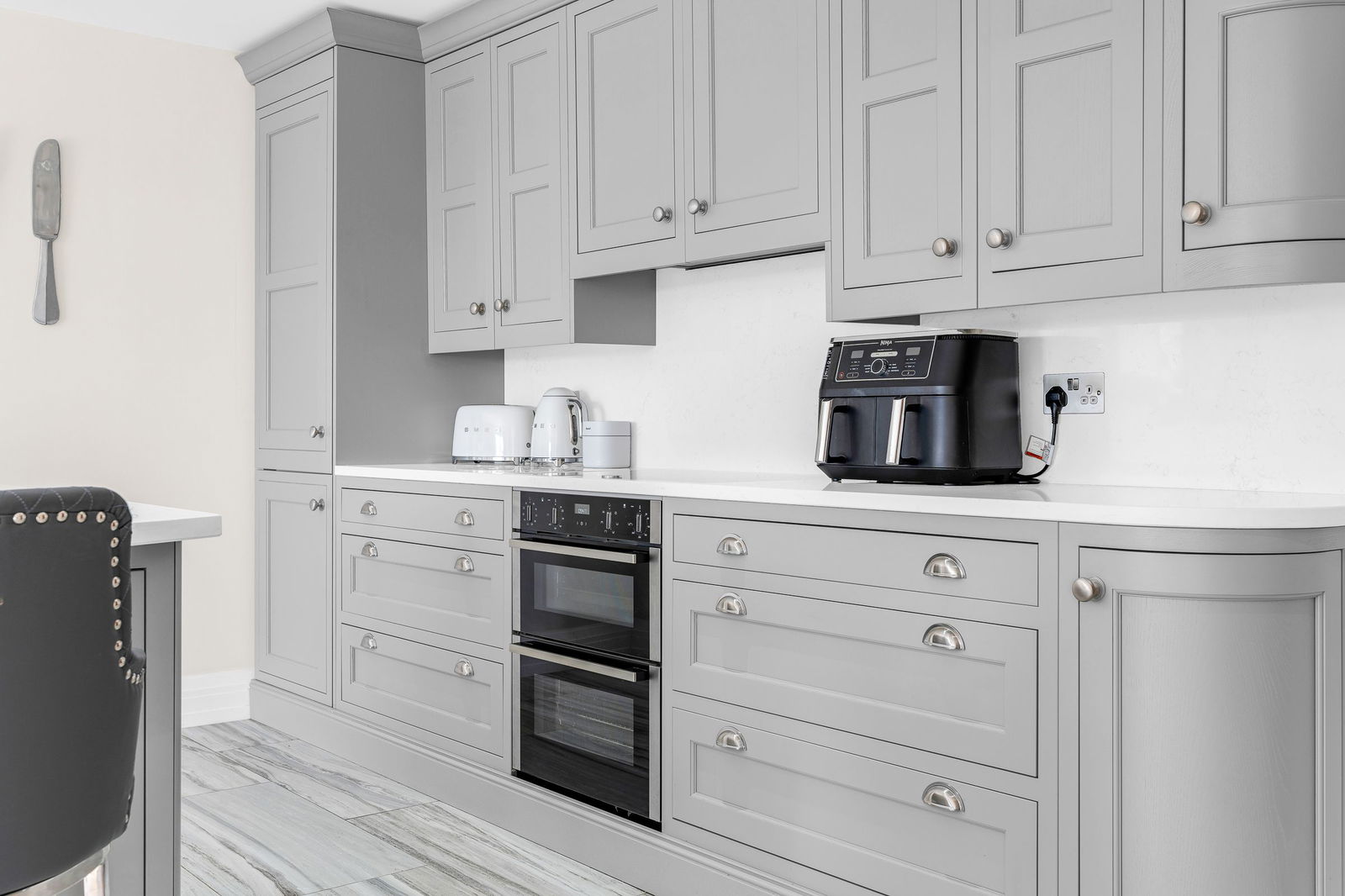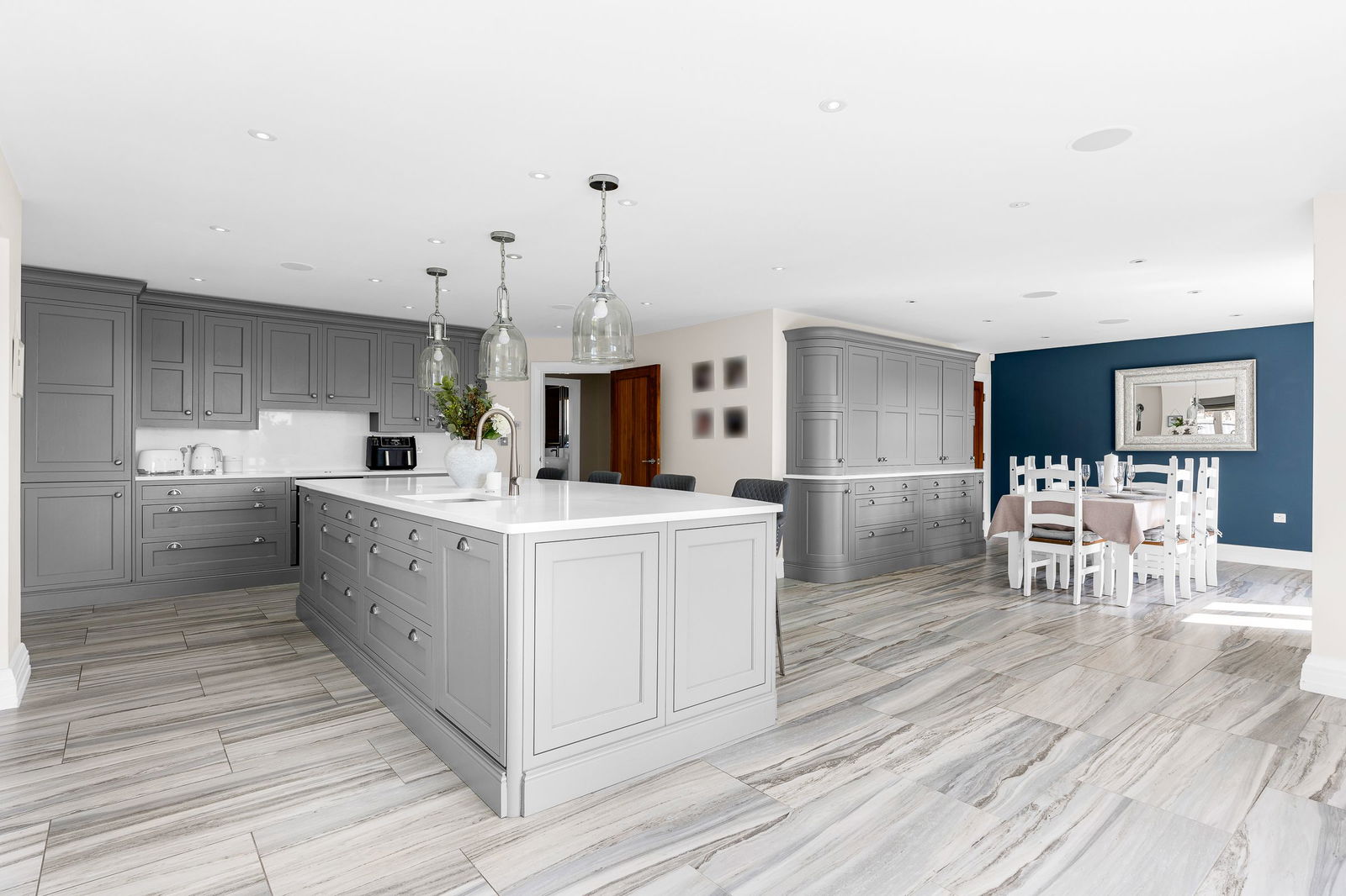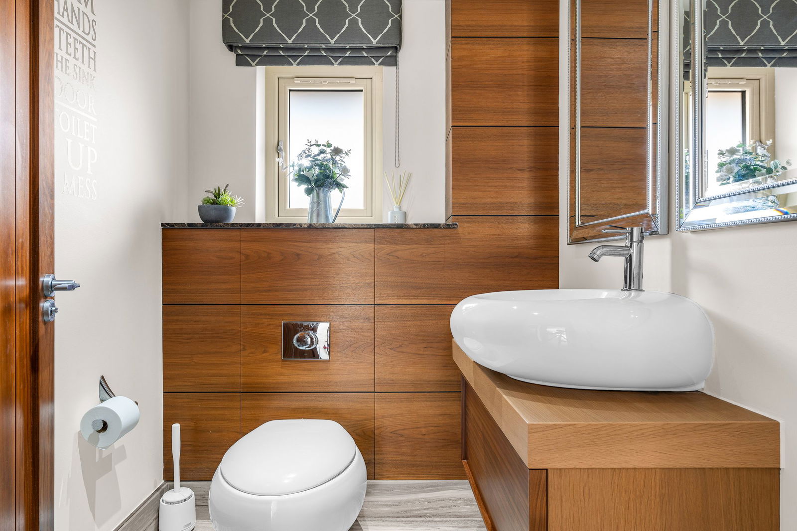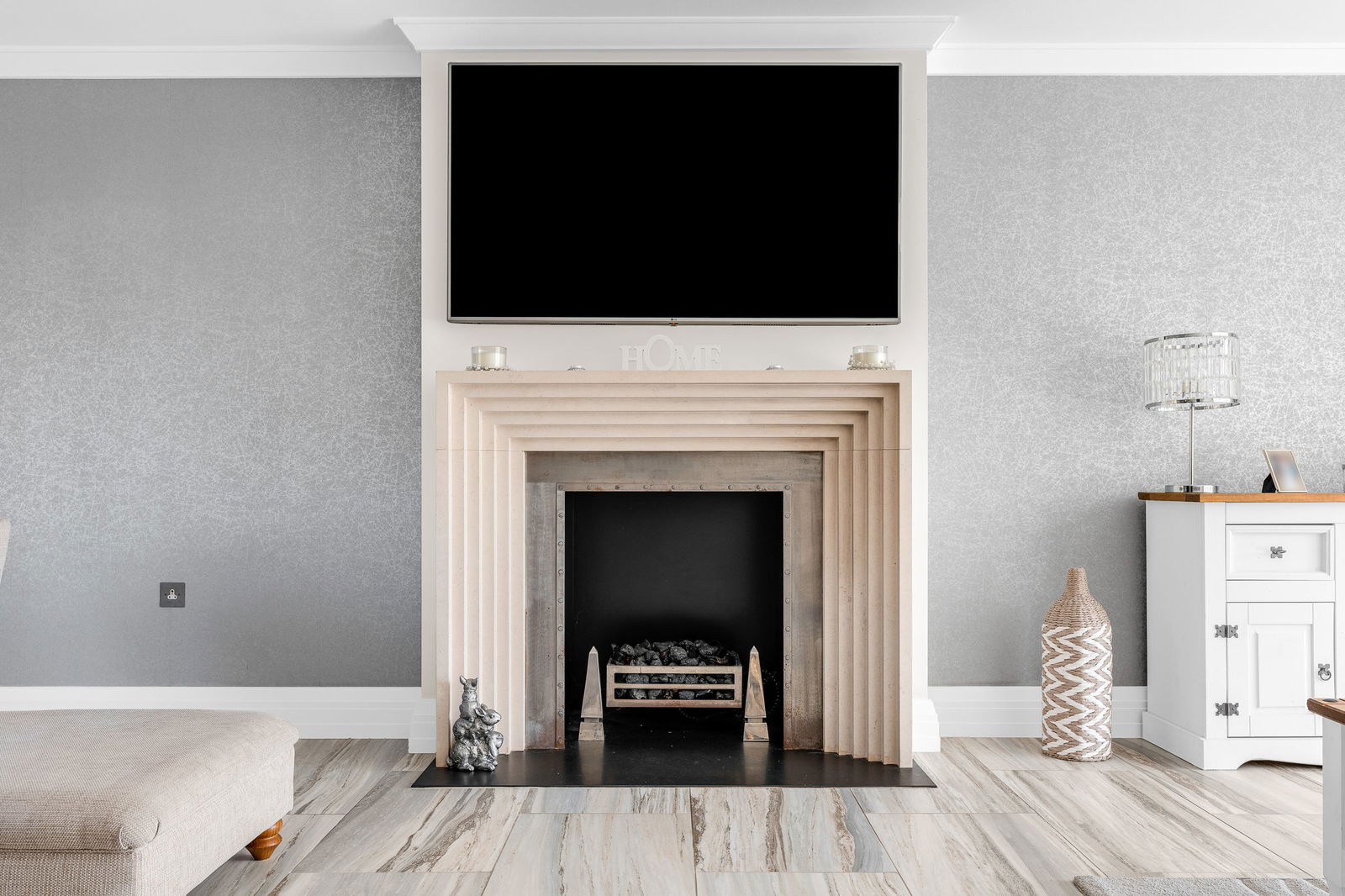 A gated entrance opens to a sweeping paved driveway, providing ample parking for multiple vehicles and leading to a detached double garage with internal heating and a pitched roof. Step inside the property, which is set over three floors, with double entrance doors leading into a welcoming hallway with a cloakroom/wc and coats storage. The ground floor offers underfloor heating throughout. The fabulous dual aspect main reception room has a feature fireplace and a beautiful sitting area with doors out to the garden. The bespoke kitchen/dining/family room features a central island for breakfast dining, ample contemporary style units and storage features, white granite work surfaces, bespoke lighting and doors opening onto the sun terrace. Integrated kitchen appliances include a dishwasher, larder fridge, double oven, hob, extractor and fridge/freezer. Off the kitchen is a utility space with external door. Completing the ground floor space is a playroom/home office to the front aspect of the property. A beautiful walnut edged staircase with stair runner sweeps up to the first floor where the landing itself has a snug area for relaxing. The principal bedroom is impressive with a fully fitted walk-in dressing room and spacious en-suite bathroom with separate shower. Bedroom two also has fitted wardrobes and an en-suite shower. There is a third bedroom on this level, together with a guest bathroom. The staircase sweeps up further to the second floor which features two double bedrooms, one with access into a shower room – one room is currently used as a cinema room. Features of this high-spec residence include Villeroy & Boch sanitaryware, oak flooring, walnut internal doors, Sonos sound system, ‘Zebrano wood’ fitted wardrobes, double glazing and bi-folding doors, Rako lighting, LPG heating system, vertical radiators and stylish décor throughout.