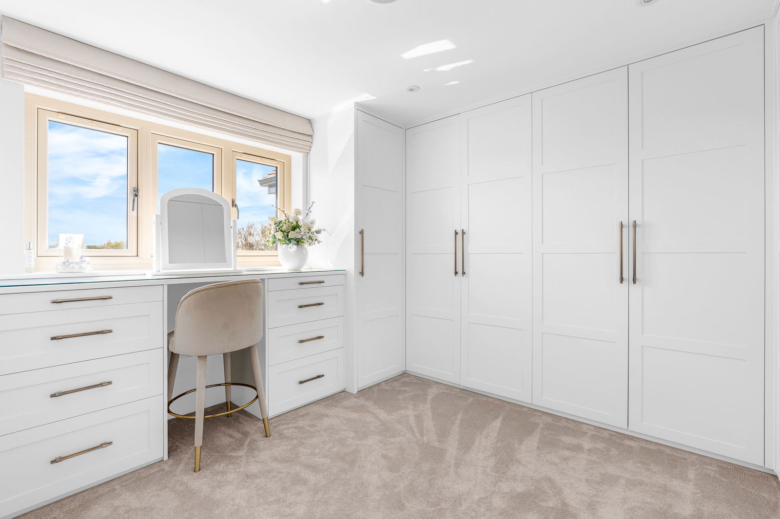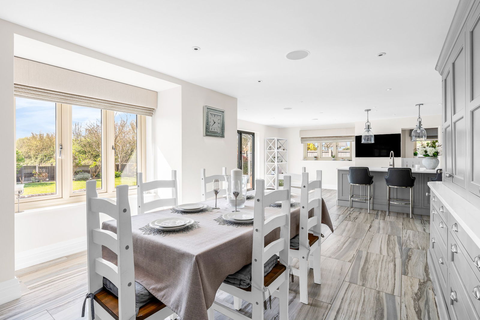 Nestled in the sought-after riverside village of North Fambridge with views across countryside to the River Crouch, this beautifully styled five-bedroom home offers an exceptional blend of luxury, comfort, and modern elegance. Boasting three en-suite bedrooms including a stunning principal suite complete with a private dressing room, this residence is perfectly designed for refined family living. At the heart of the home lies a bespoke kitchen/dining/family room, thoughtfully crafted to meet the highest standards, ideal for both everyday living and entertaining. Additional highlights include a spacious double garage, large sun terrace and south facing garden which overlooks open countryside towards the river.
