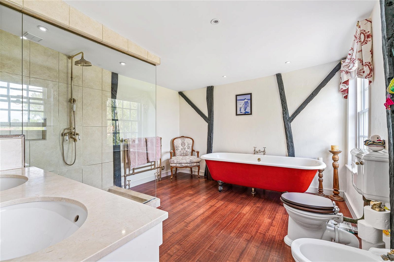NOW COMPLETED A substantial Grade II listed 5-bedroom farmhouse with annexe and indoor leisure / pool complex set in approx. 14 acres of grounds within easy access to London and the road and rail network.