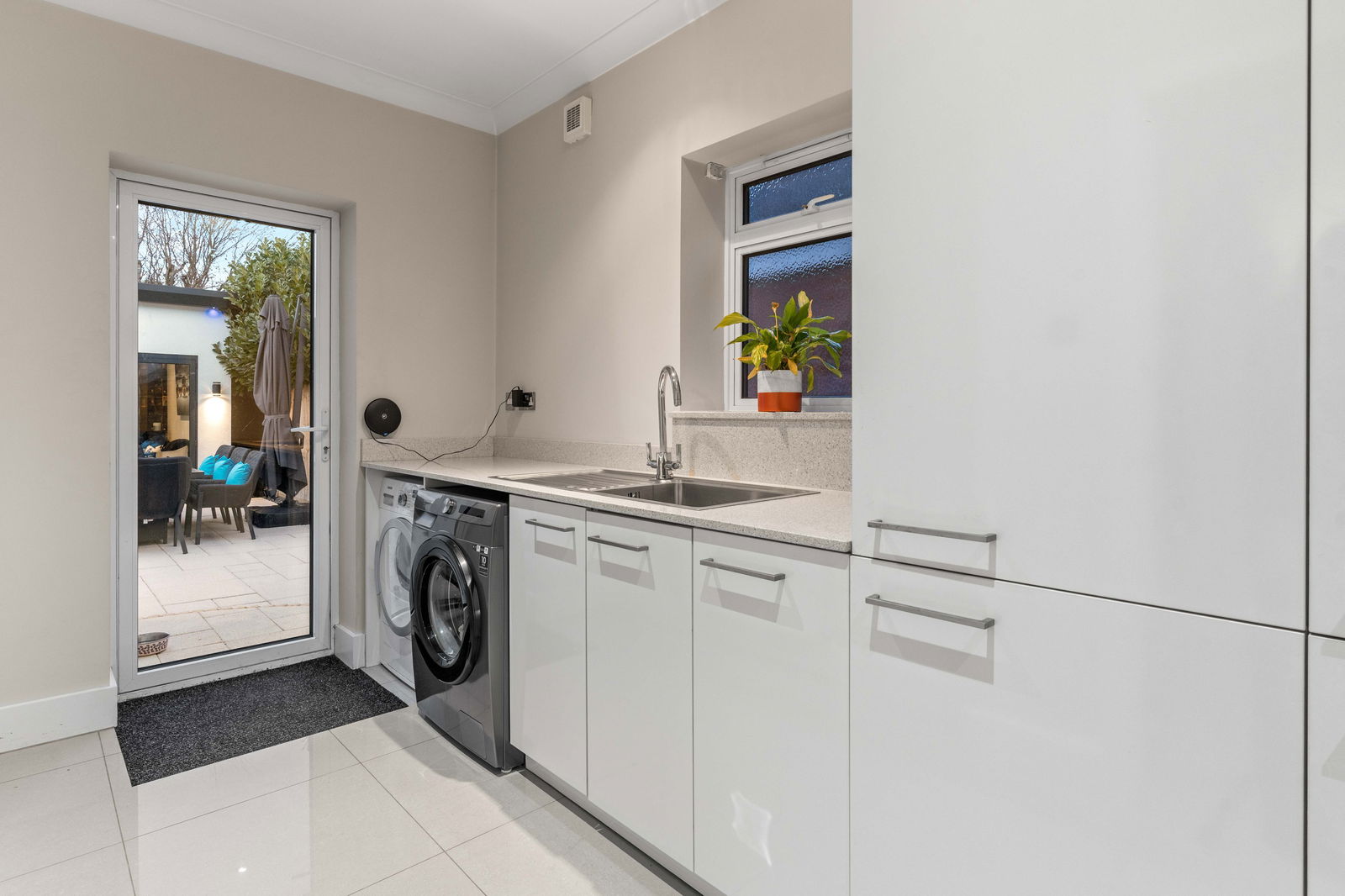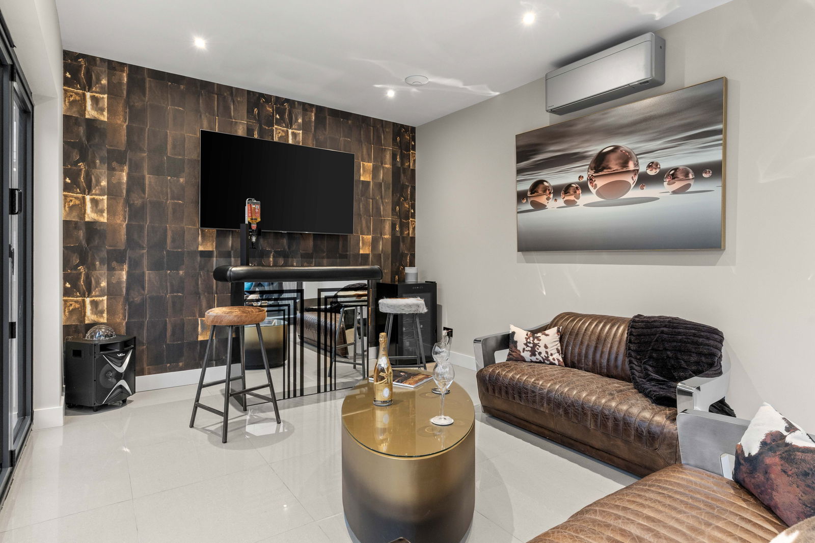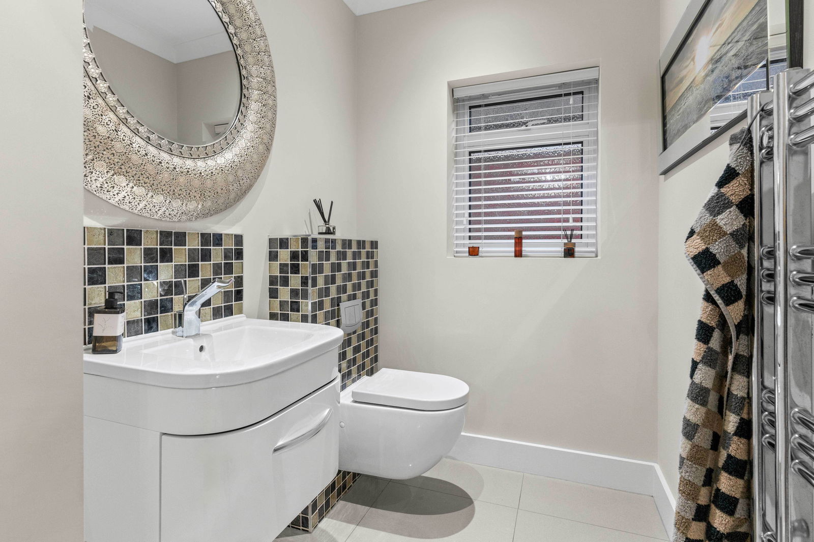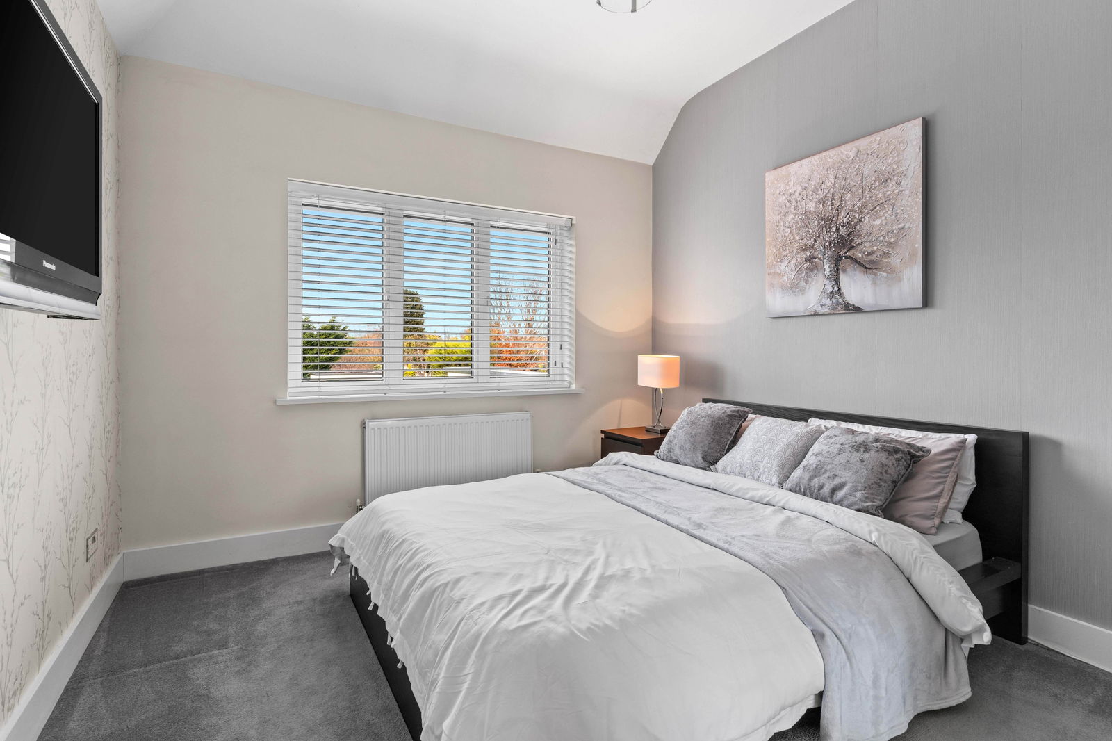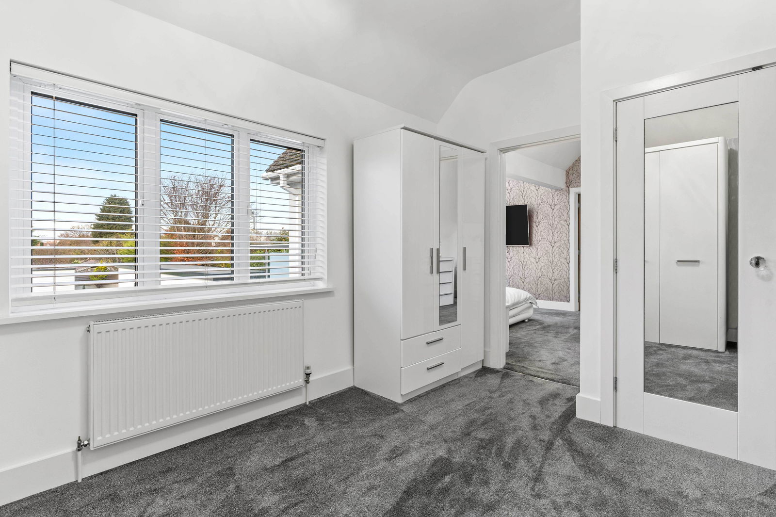 Step outside, the stunning exterior matches the attention to details of Garwood House residence, with the already mentioned gated entrance, block paved driveway and bespoke secure garaging with acrylic resin painted flooring, electric roller shutter doors and electric vehicle charging point. To the rear is the expansive sun terrace providing ideal space for entertaining and relaxing being paved and extending around the heated swimming pool, which has an electric operated cover. To one side is the bespoke gymnasium which has air conditioning and also a family sun room with bi-fold doors on two aspects along with an internal bar area with air conditioning, separate central storage room, separate WIFI, outside speaker system and feature lighting. The garden extends to approx. 150ft., with an area of well tended lawn to the rear boundary.
