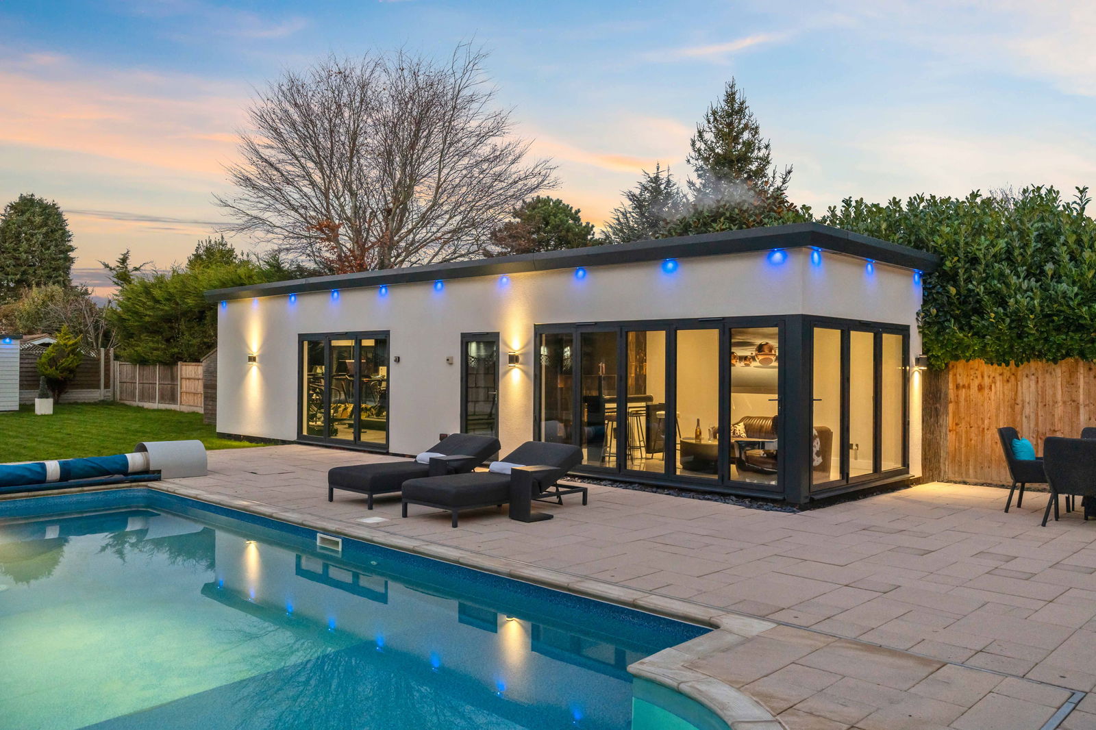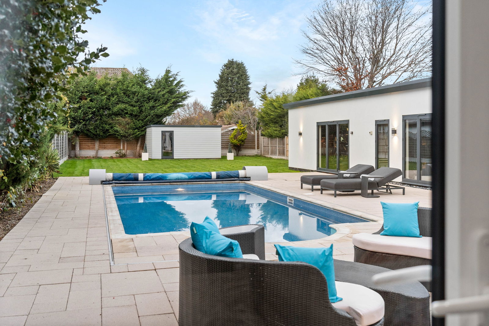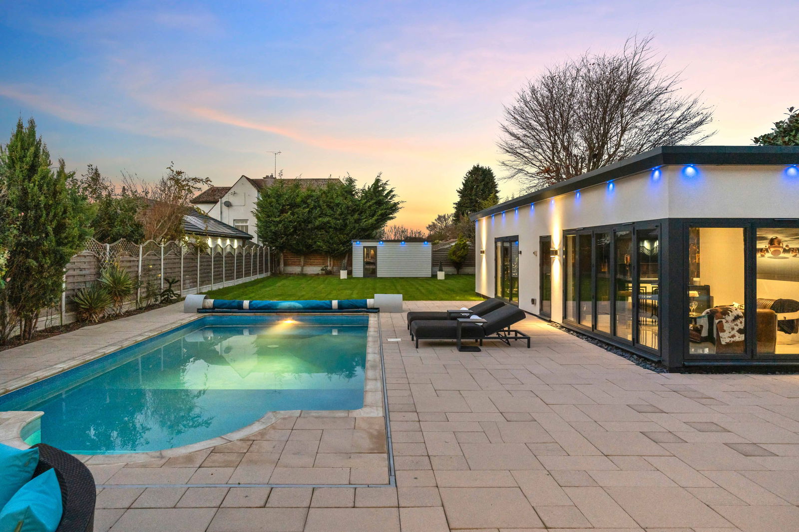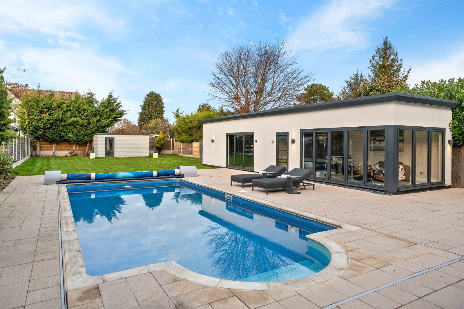 Garwood House has been meticulously styled throughout offering five bedrooms (two en-suite), three reception rooms and a bespoke gymnasium/bar adjacent to the swimming pool. The location is sought-after and ideal for access to Rochford railway station (walking distance) offering services into London Liverpool Street. Local state and private schools including Thorpe Hall and Alleyn Court with renowned grammar schools within easy reach. With open countryside on your doorstep and the golf club opposite, there is also a country park within walking distance.