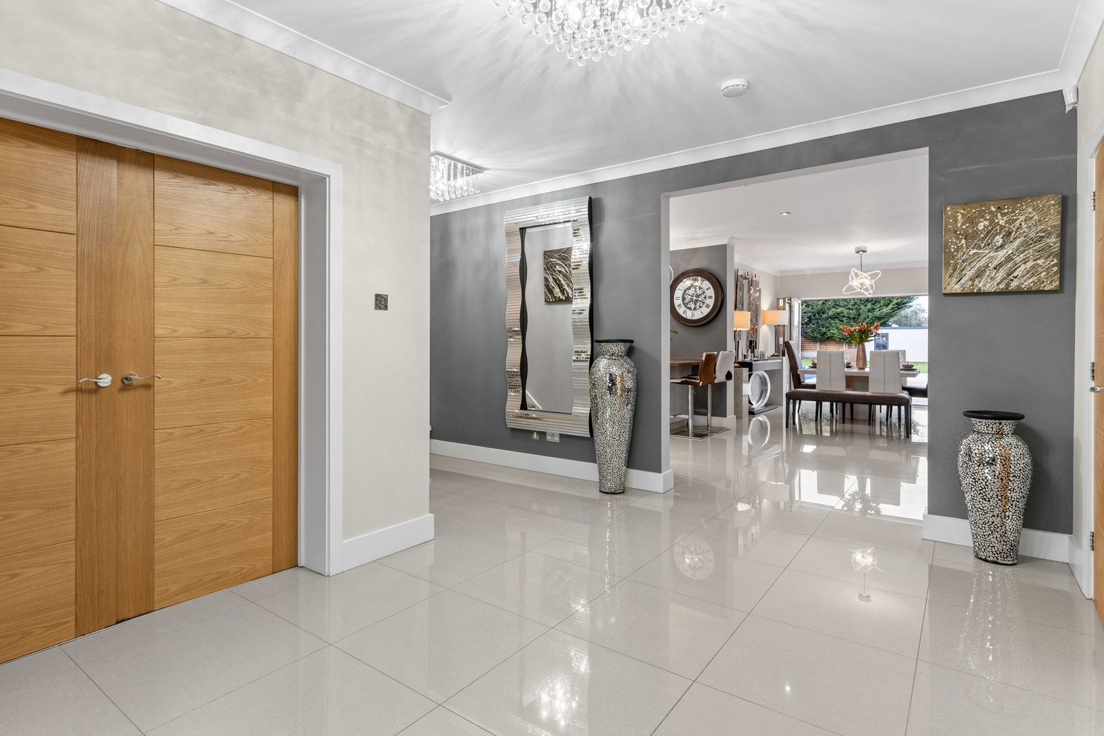 Occupying a prestigious location near to Rochford station, Rochford Hundred Golf Club and Saint Andrews Church, this contemporary family residence offers a high specification throughout with underfloor heating, secure garaging, bespoke Gymnasium/Bar and swimming pool.