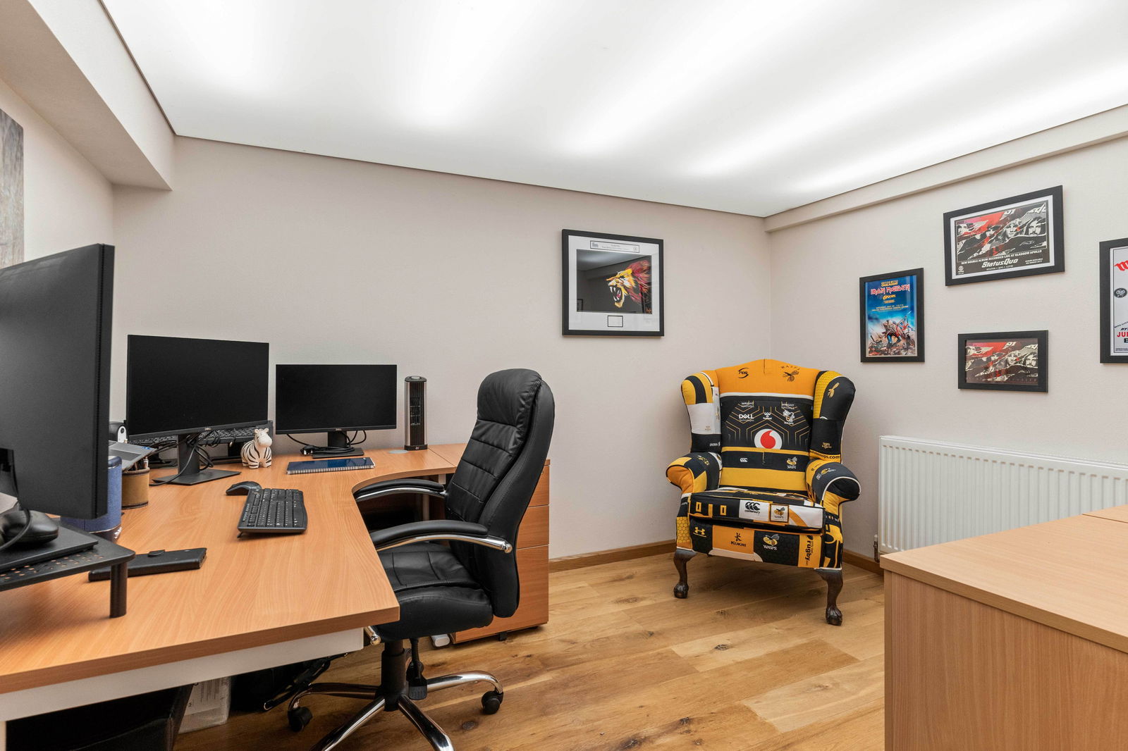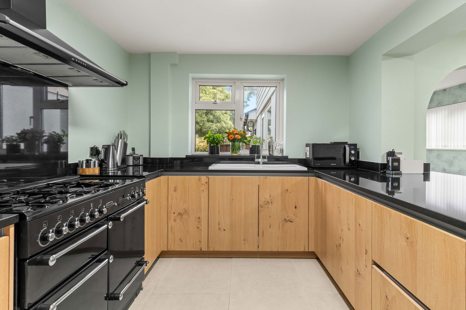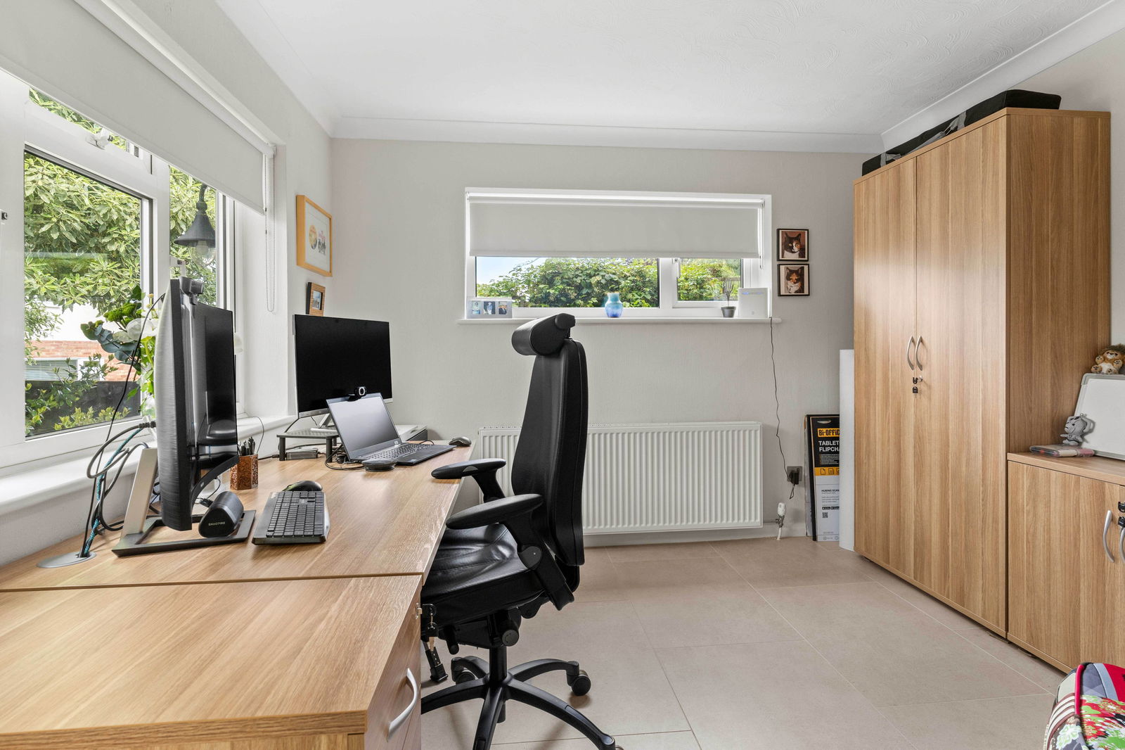 The bespoke kitchen is by the German kitchen design company Schuller and features a Rangemaster cooker, integrated freezer and dishwasher. The fridge is by the Corner Fridge Company and provides a fully integrated fridge and larder offering 1200litres of refrigerated storage. This beautifully styled kitchen flows seamlessly into a further reception room for entertaining. Doors from this entertaining space lead outside onto the morning patio and through to office number two.