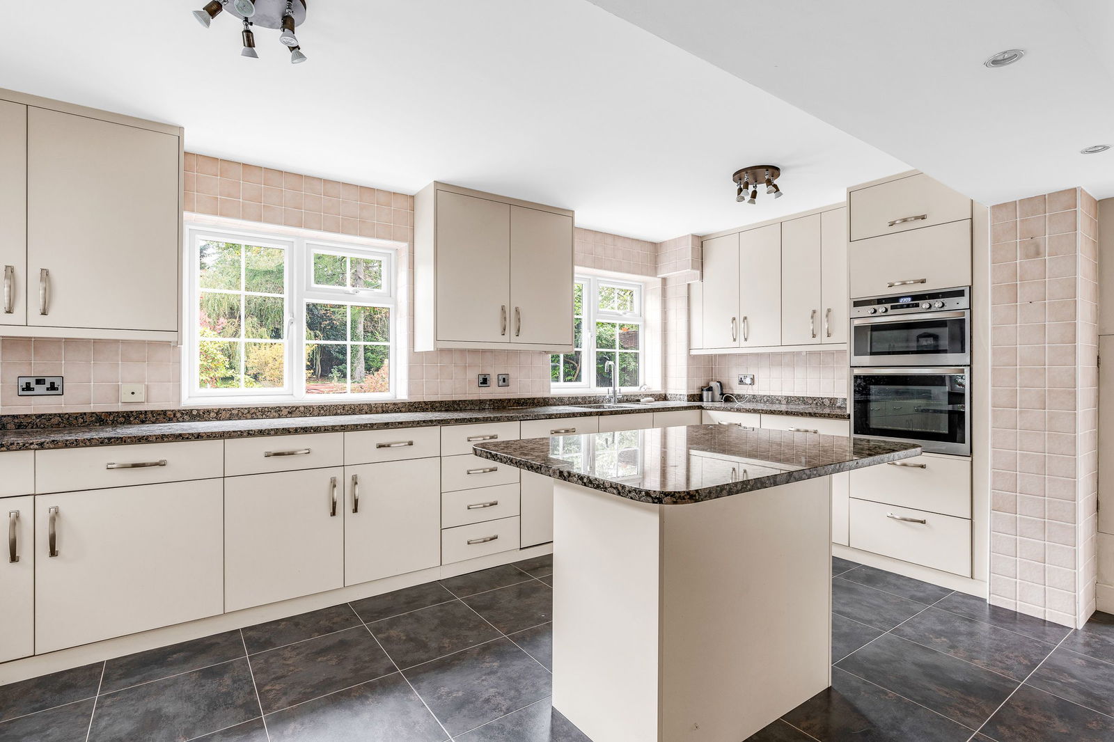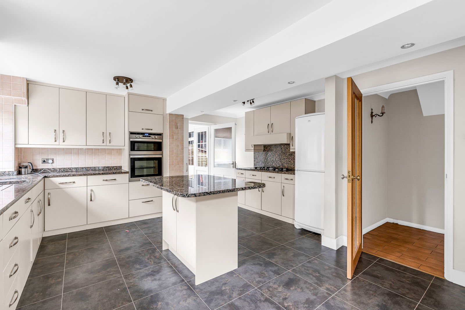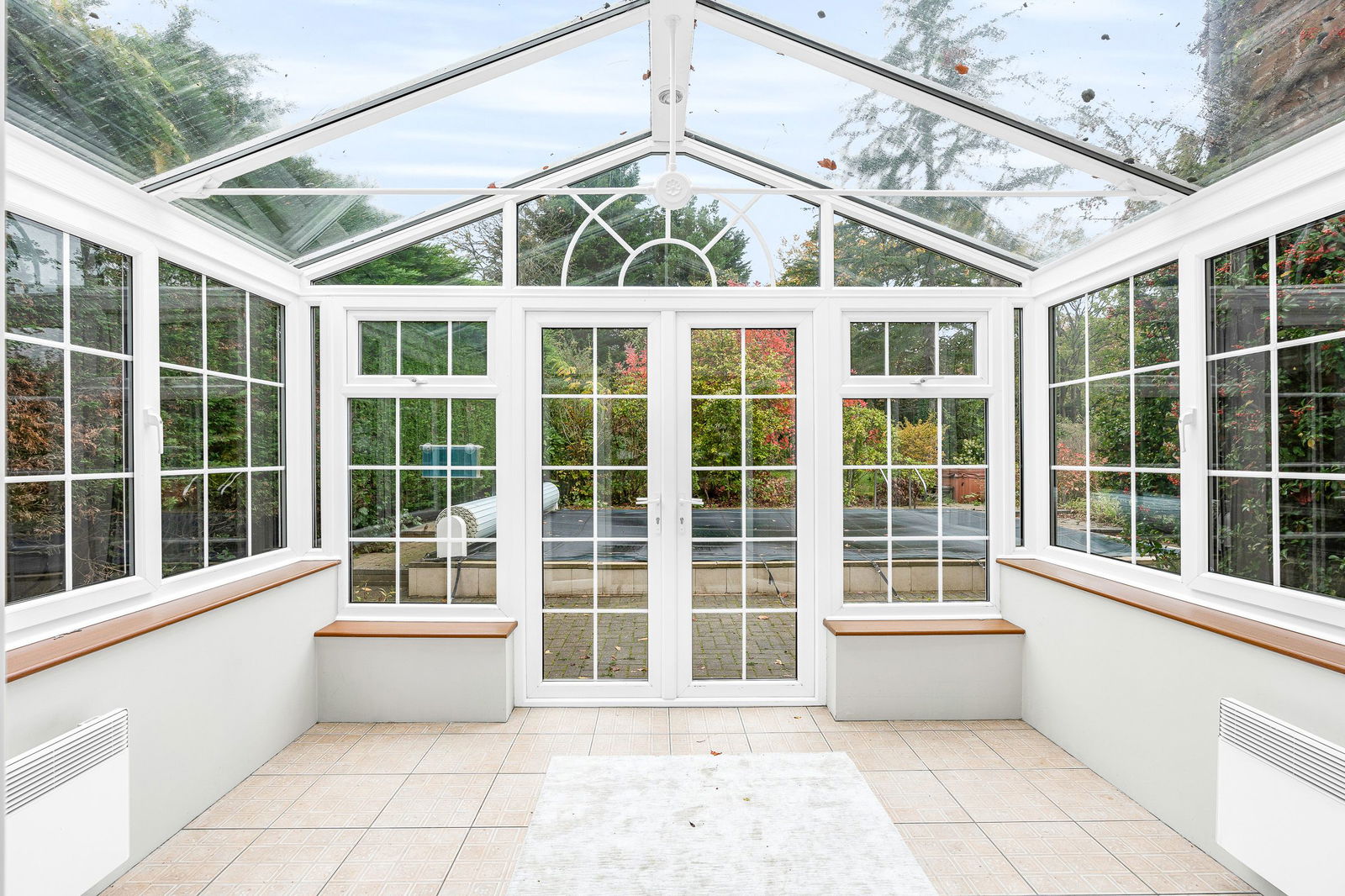 The ground floor has three distinct reception areas, including a split-level formal lounge with contemporary glass-insert gas fireplace and access to the conservatory addition , which overlooks the pool and garden. Adjacent is a formal dining room and an additional snug, each filled with natural light from large double-glazed windows. The heart of the home lies in the expansive kitchen/breakfast room, fitted with high-quality units, granite surfaces, and a central island—ideal for both casual family meals and entertaining. Completing the downstairs layout is a spacious utility room and a convenient guest WC.