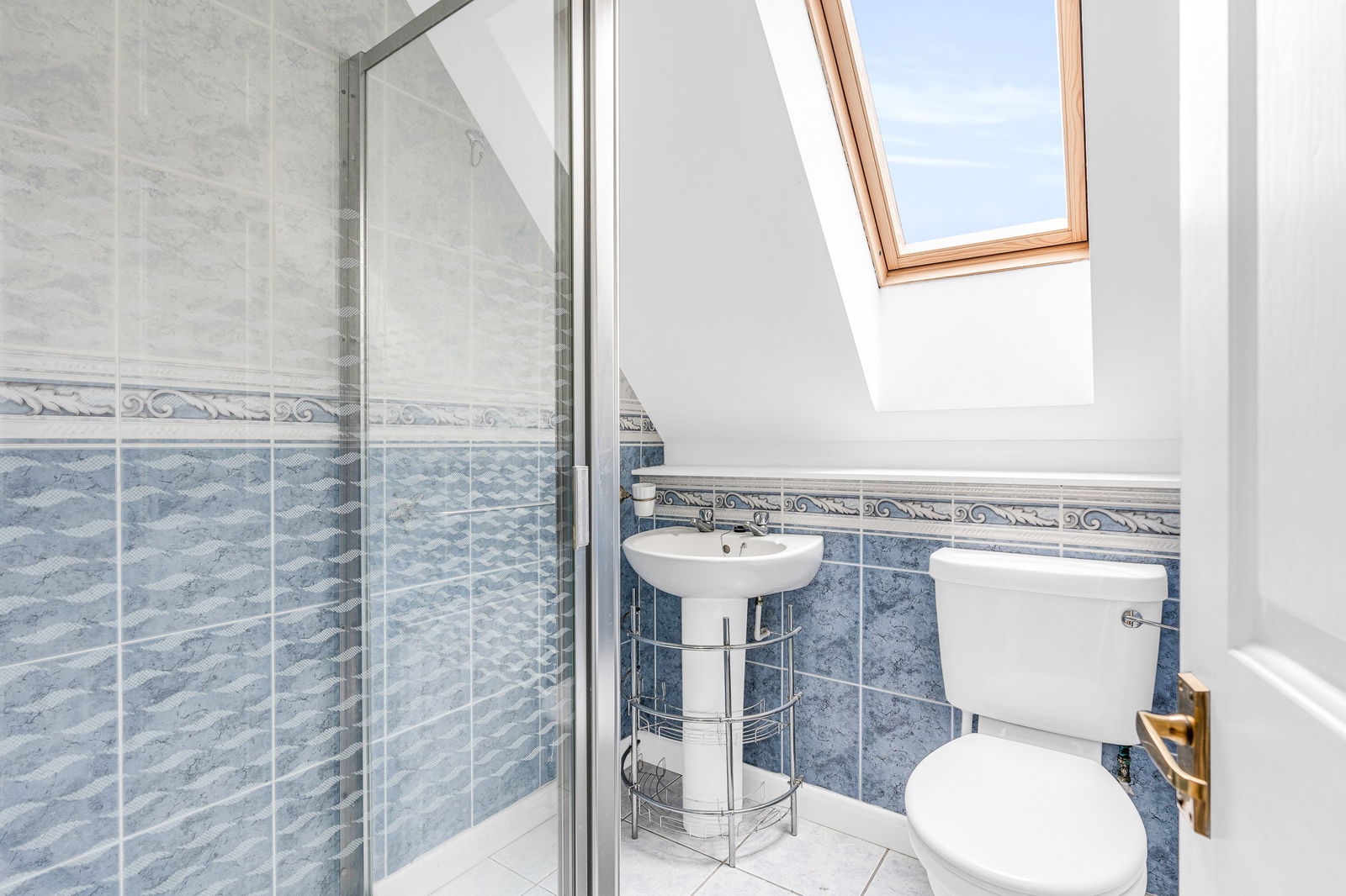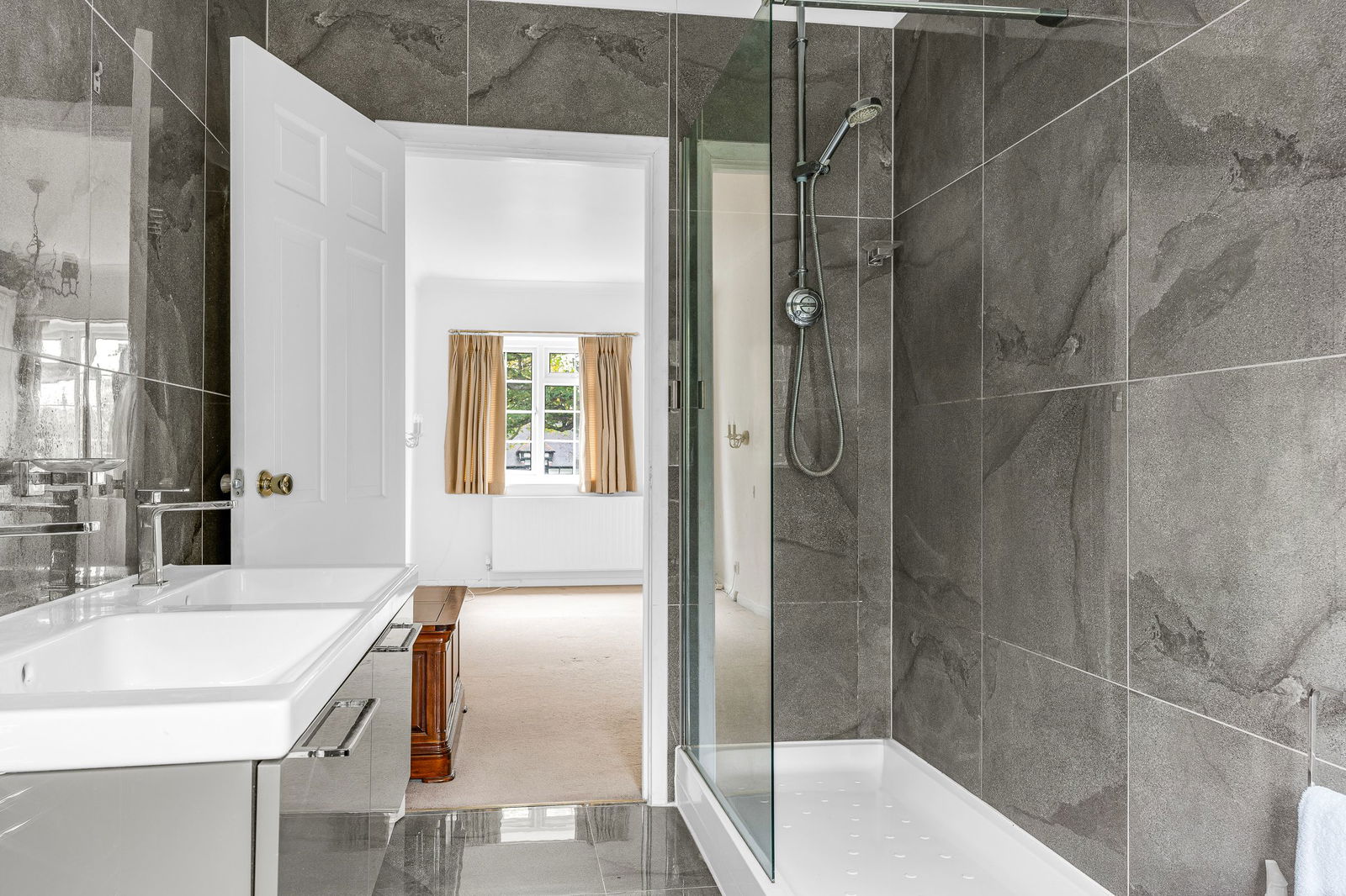 Upstairs, the central landing leads to four bedrooms, including a principal suite complete with fitted wardrobes and an ensuite bathroom featuring a walk-in shower and twin vanity basins. There is a modern family shower room offering added convenience for family or guests. The second floor includes two additional bedrooms and a useful shower room.