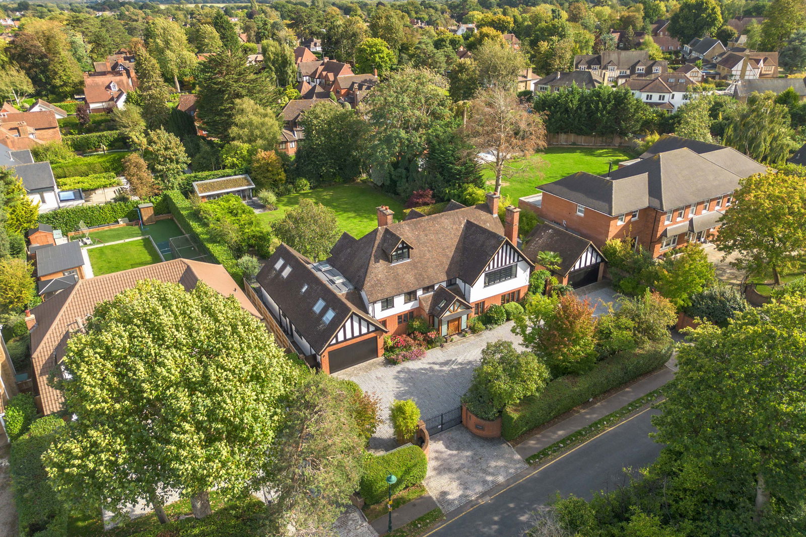 - Carriageway Driveway with twin electric gates