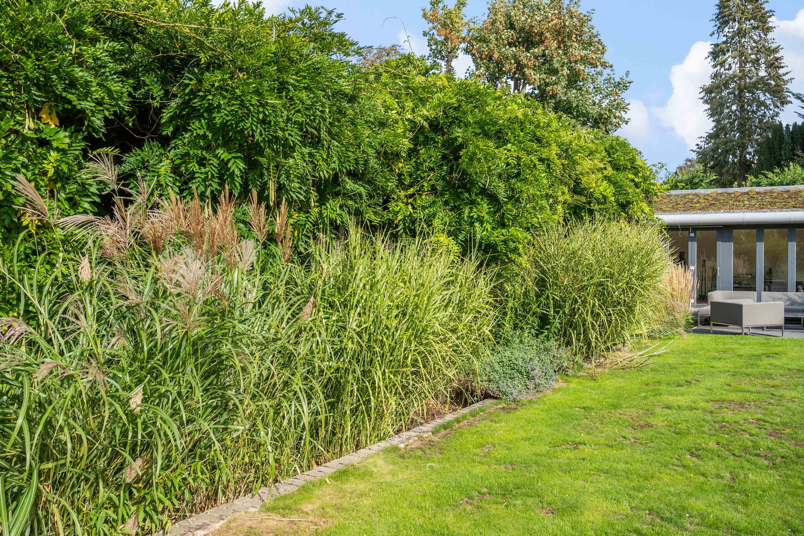 The property features a water irrigation system in the garden and an electric car charging unit by the garage.