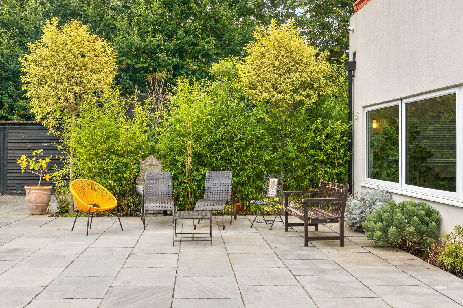 The landscaped gardens themselves include sweeping lawns, feature trees, carefully planted borders and expansive Indian sandstone patios. Practical touches such as an irrigation system and app-controlled floodlighting ensure the gardens look their best at all times.