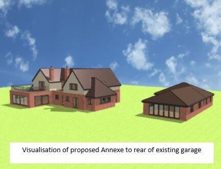 - Planning Approved to double the size of existing garage building & convert to a self-contained Annexe building.
