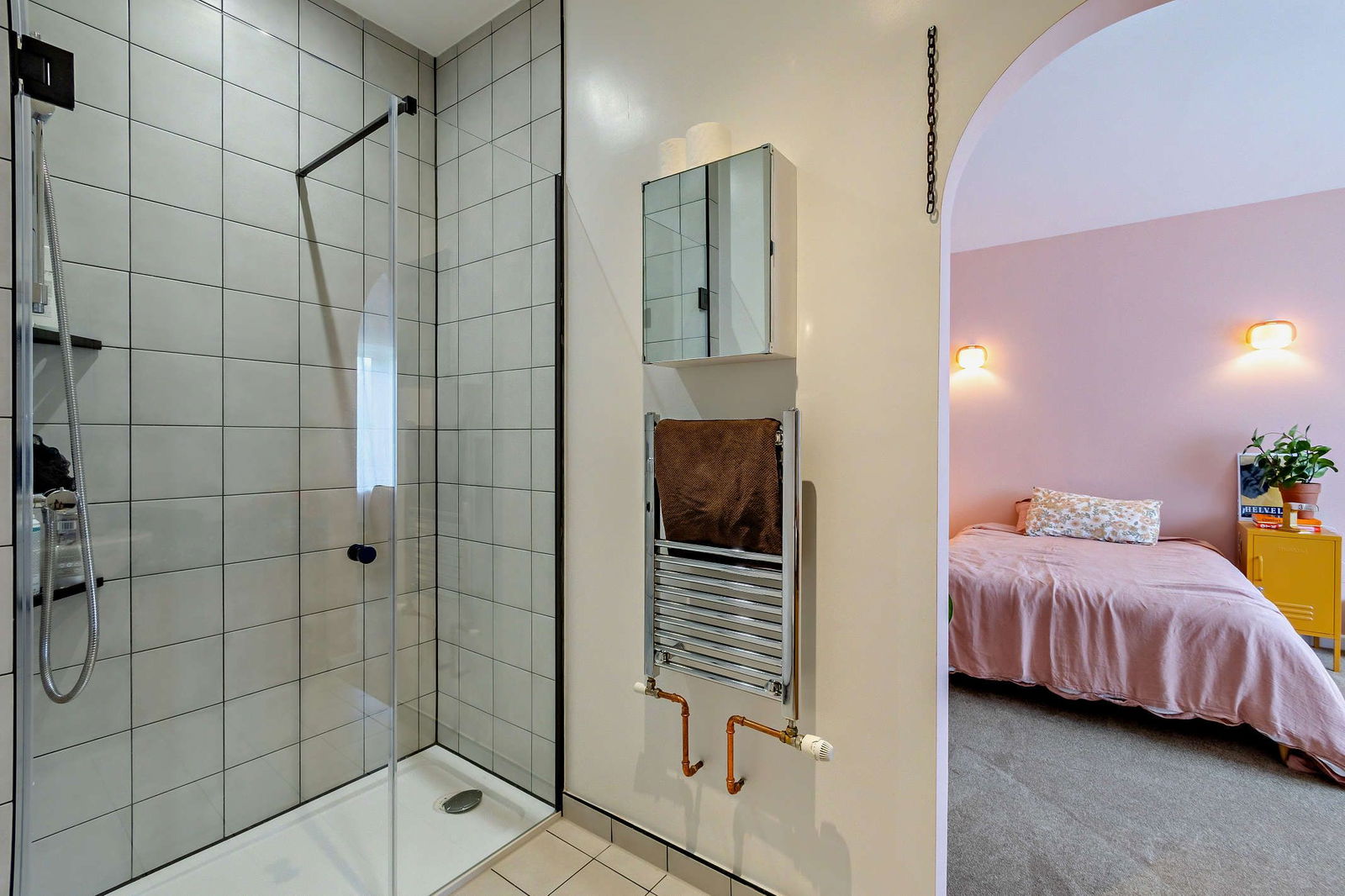 Step inside and the ground floor flows seamlessly, creating a warm and inviting atmosphere enhanced by engineered Oak parquet flooring and app-controlled underfloor heating throughout. To the front aspect, a versatile sitting room/library provides a quiet retreat, complemented by a ground floor cloakroom/WC. To one side of the house, two bedrooms share a well-appointed Jack & Jill shower room – ideal for guests, multi-generational living, or flexible family use.
