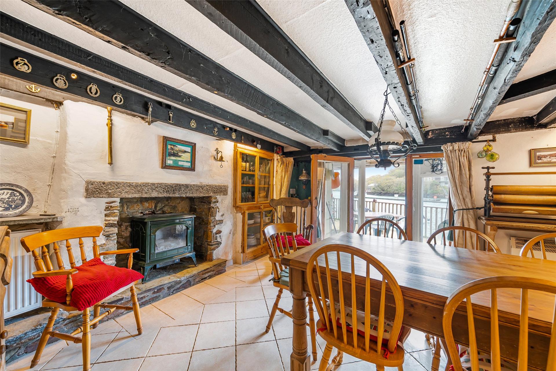 Characterful four bedroom, four storey riverfront property with mooring rights and many historic elements including beamed ceilings and feature fireplaces. Two decks offer exceptional panoramic views across the Fowey River to Bodinnick.