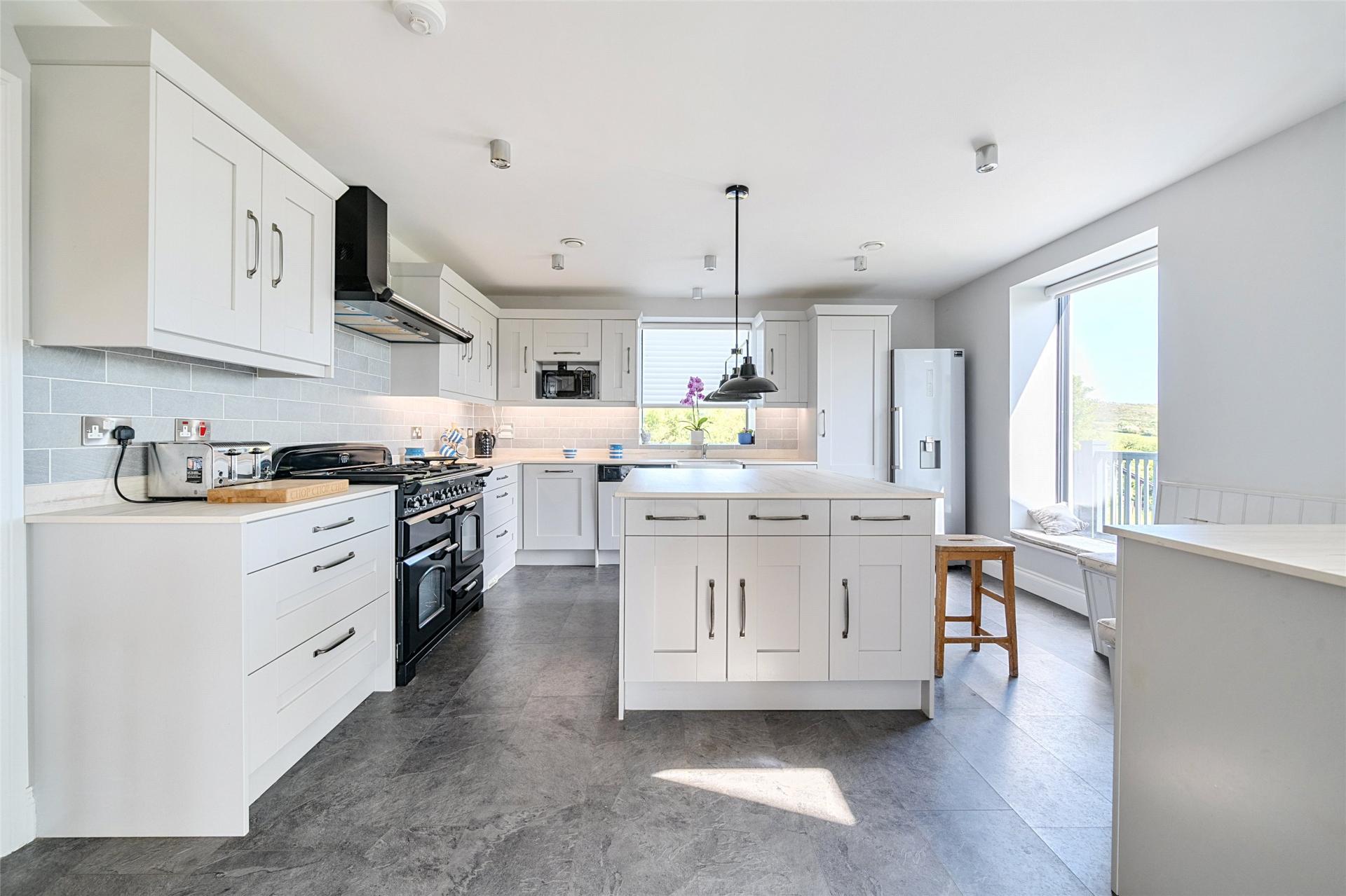 This luxurious three-storey property is expertly positioned to take full advantage of its far-reaching views across Bodmin Moor and the surrounding countryside. Entry begins via a porch leading into a vestibule with sliding doors that open into the main residence. The principal living accommodation is found on the first floor—an open-plan layout that encourages sociability and seamless flow.