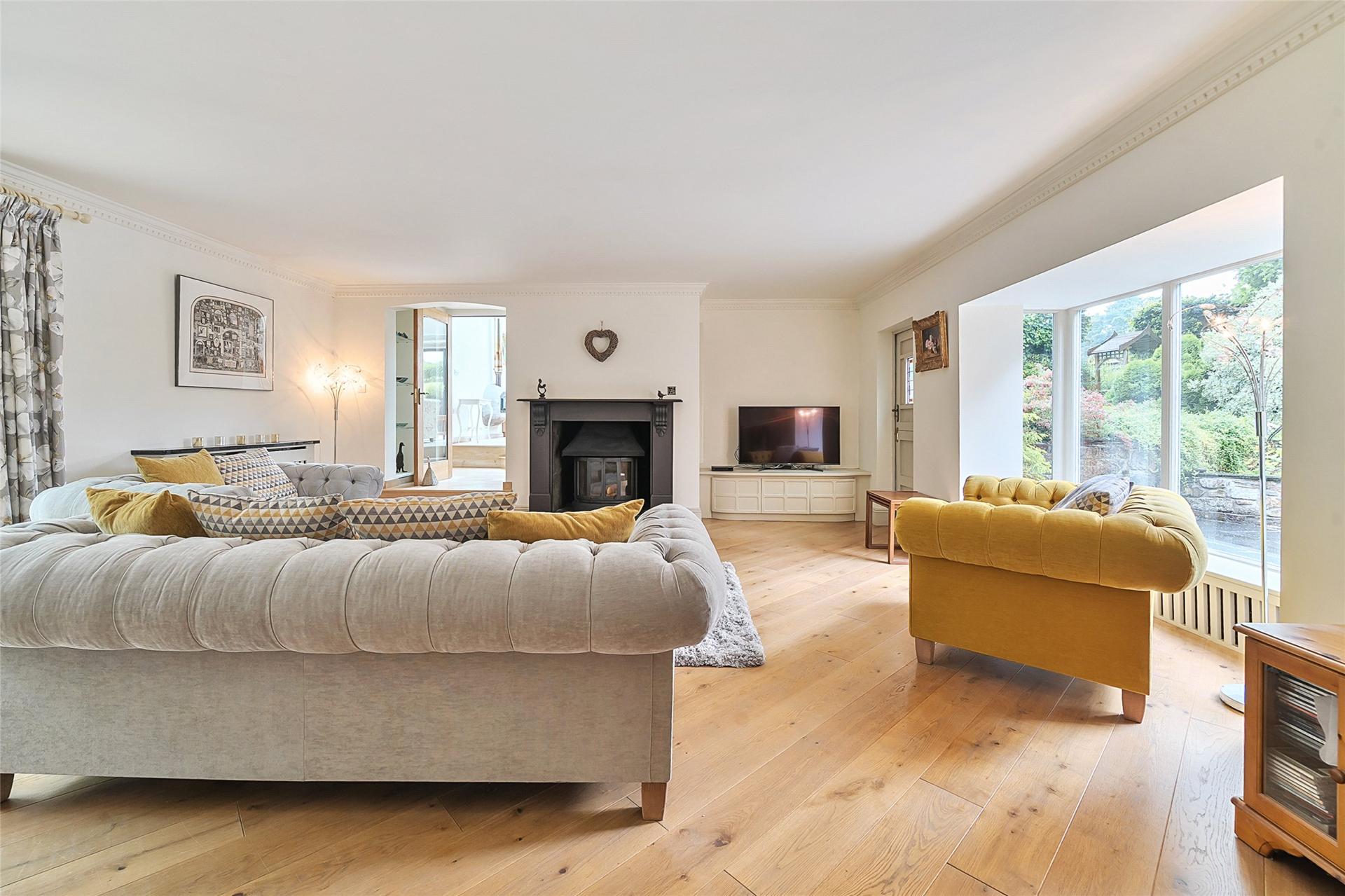 The property is currently arranged as two interconnecting yet entirely self-contained residences, with the flexibility to combine or separate as desired. The main house comprises four bedrooms and expansive open-plan living, while the second residence offers a spacious two-bedroom layout with a distinctive blend of comfort and individuality.