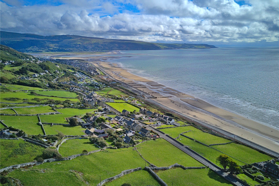 A coastal town in Gwynedd situated on the estuary of the River Mawddach and Cardigan Bay. It is known for its stunning sandy beach, which stretches for miles and offers picturesque views of the surrounding mountains. Barmouth is a popular seaside resort destination, attracting tourists with its traditional charm, seaside promenade, and variety of shops, cafes, and restaurants. The town is also a hub for outdoor activities such as watersports, hiking, and cycling, with the nearby Mawddach Trail offering scenic walking and cycling routes. Barmouth's historic harbour and picturesque surroundings make it a favourite spot for visitors seeking relaxation and outdoor adventure along the beautiful Welsh coast.