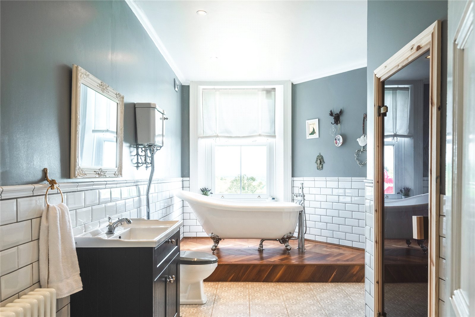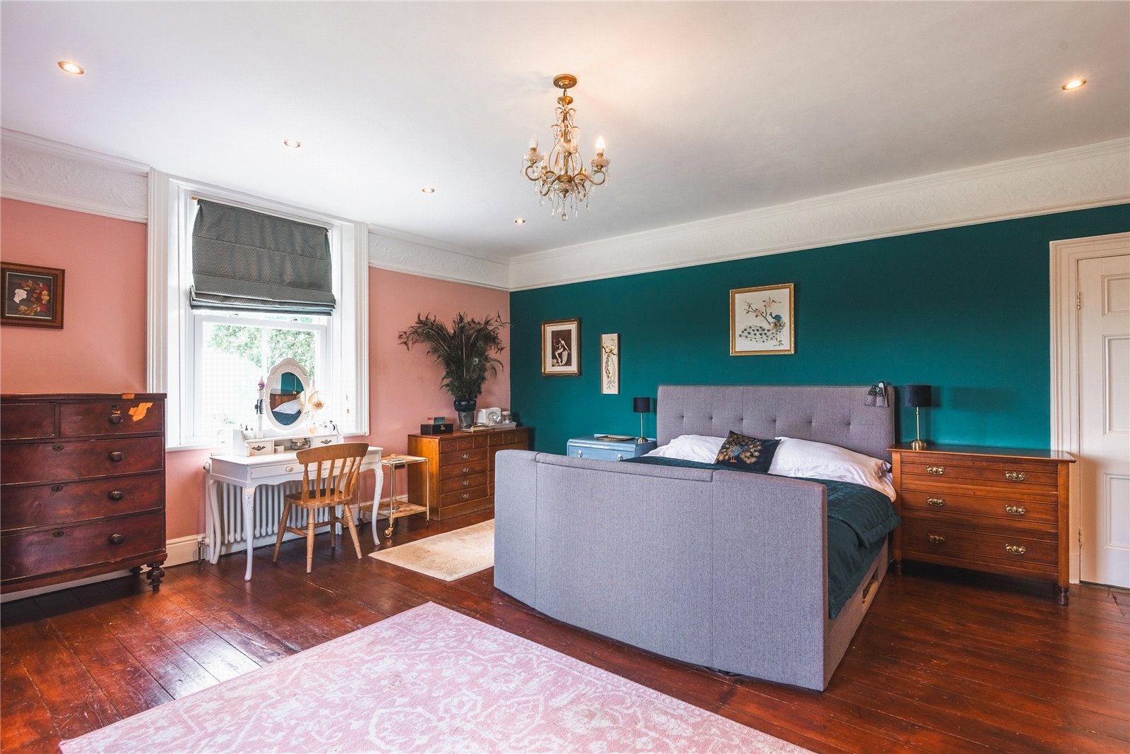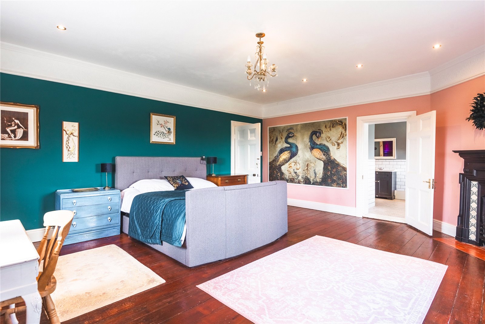 Ascending to the first floor, the landing space, adorned with a chandelier, provides access to six magnificent double bedrooms and the integral two-bedroom apartment. The grand main bedroom offers superb views through the front and side sash windows. It features an immaculate en suite Jack and Jill family bathroom, equipped with a luxurious roll-top bath with a view, a walk-in rain shower, a relaxing sauna, a WC, and a vanity unit. The remaining five double bedrooms on this floor each have their unique decor and charm. Bedrooms three and six are especially popular with B&B guests, as they each have en suite shower rooms.