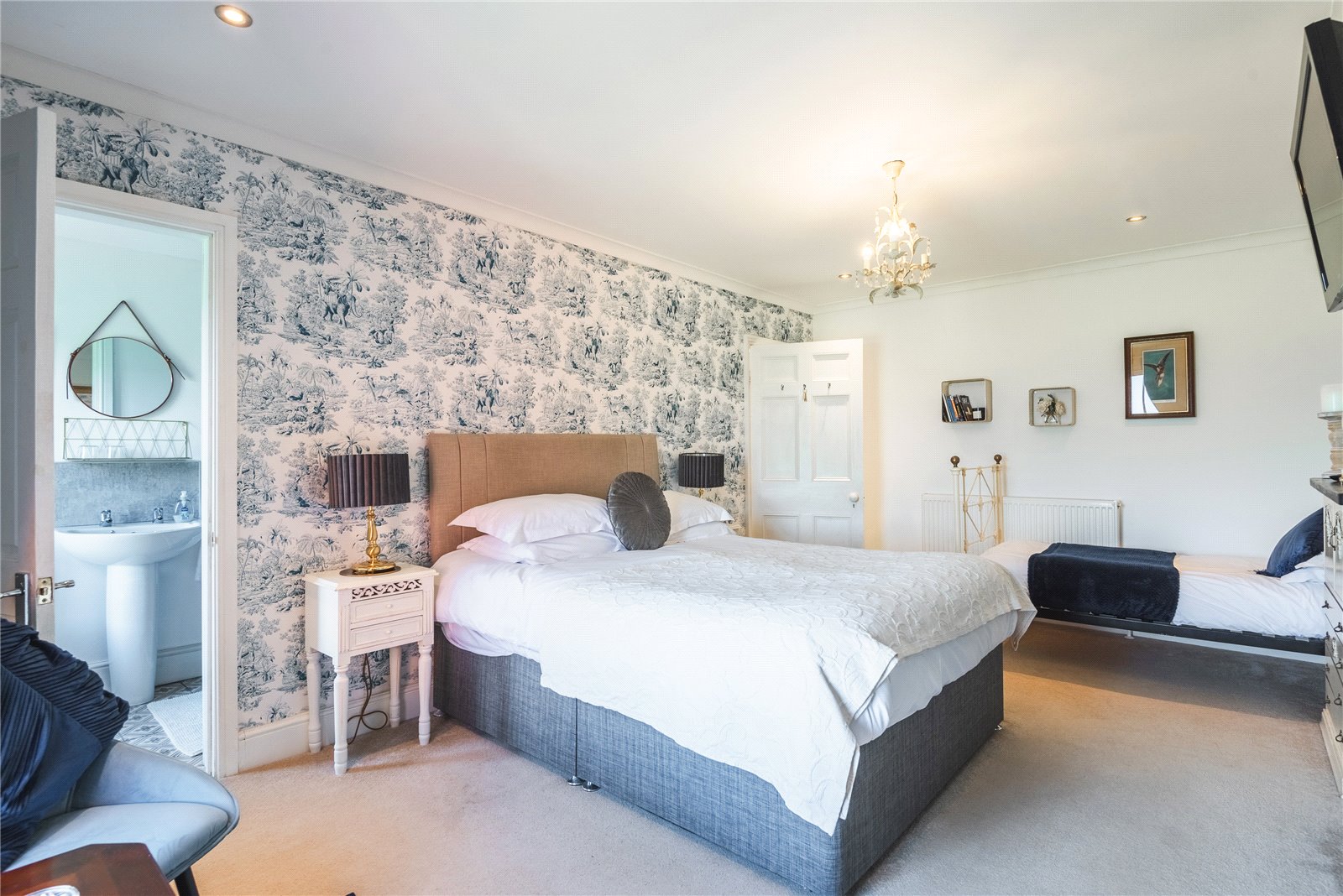 The top floor of this exquisite home houses three additional double bedrooms and another luxurious bathroom, complete with both a rain shower and a bath. These spacious and well-proportioned rooms can serve various purposes beyond bedrooms, such as an office, playroom, or even a cinema room, offering flexibility to meet diverse lifestyle needs.