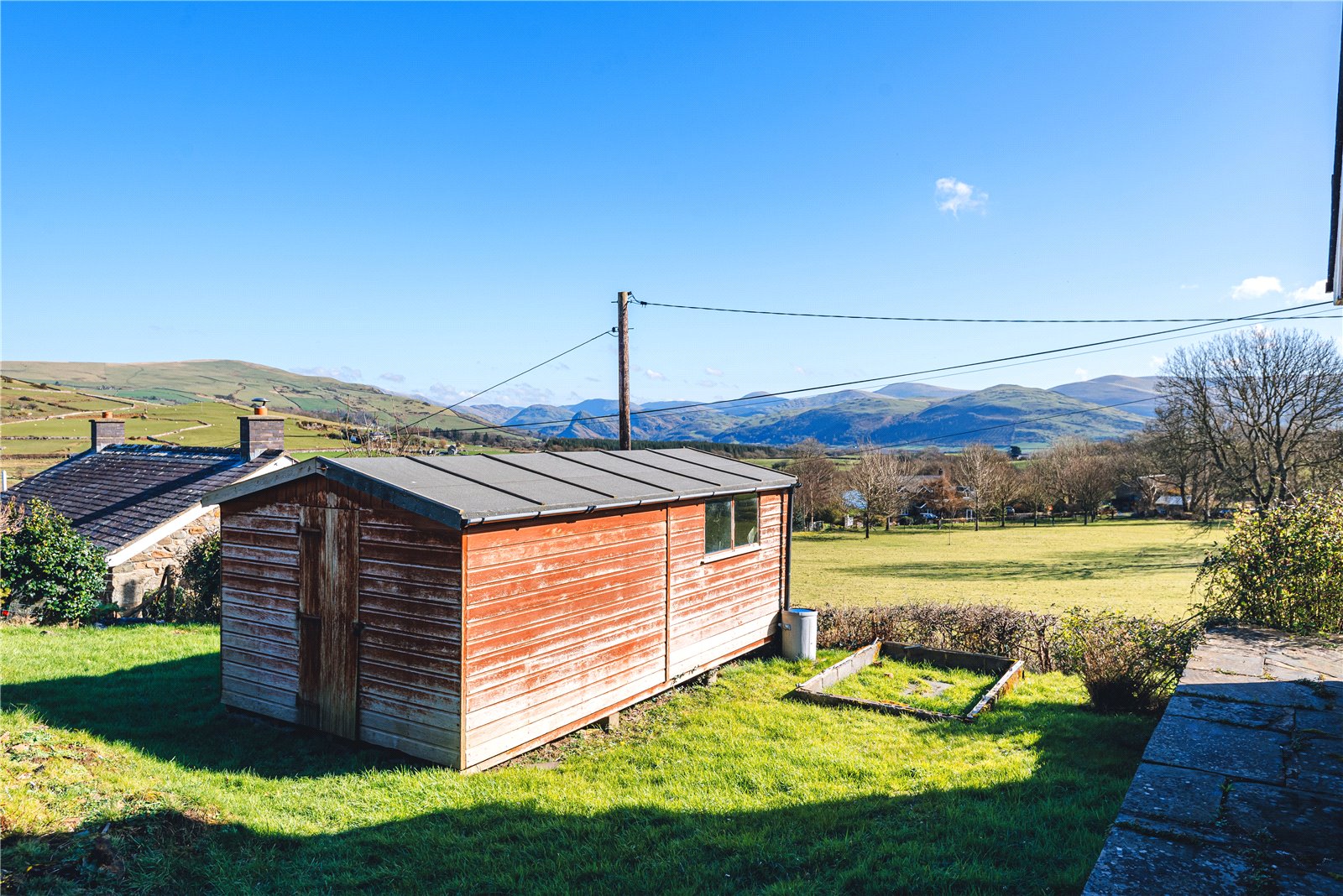 Bryntirion sits centrally in its plot of approximately an acre of gardens. The lawn offers ample space for outdoor activities, and gatherings and the useful garden shed provides practical storage. The driveway leads up to the property, providing convenient access and ample parking space. As you explore the garden further, prepare to be captivated by the breathtaking views that unfold before you. From rolling hills to distant views, the scenery is nothing short of spectacular, offering a tranquil backdrop to your everyday life and creating a sense of serenity and peace.