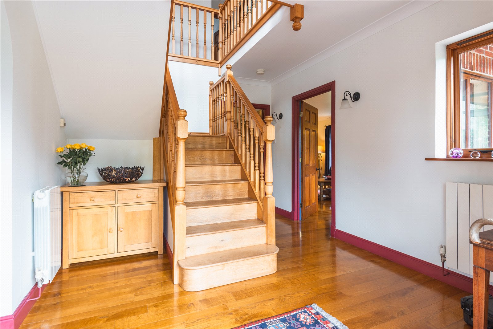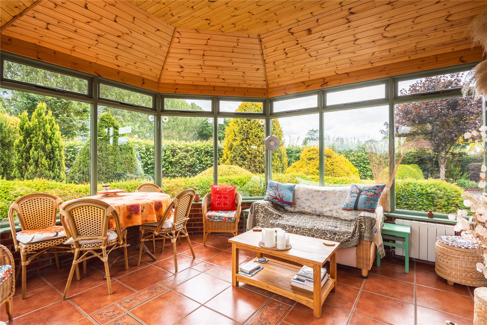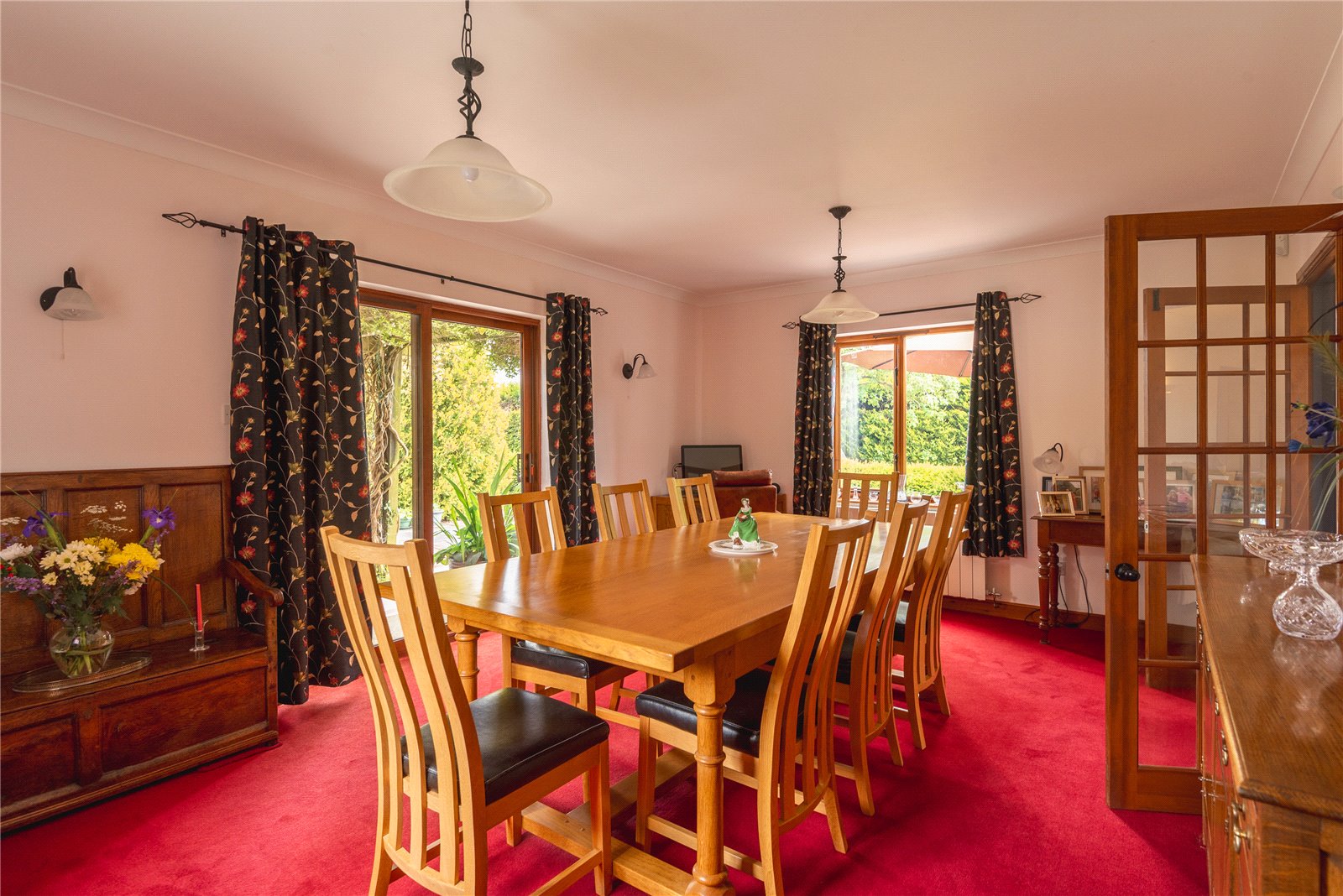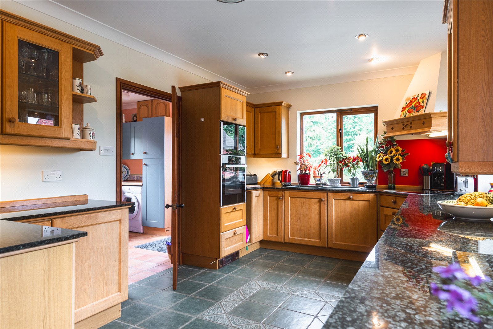 Upon entering the house through the beautiful entrance hallway, you are greeted by stunning solid oak flooring. To your left is a convenient downstairs WC with a wash basin. On your right is the spacious living room, which opens into the charming Garden Room. This versatile space can be enjoyed year-round and has become one of the owners’ favourite rooms. Double doors lead from the living room into the dining room, creating a seamless flow between the spaces. Patio doors open onto the patio area, perfect for alfresco dining and inviting the outdoors in. The well-proportioned kitchen breakfast room includes ample space for dining. It features a range of wall and base units, a sink and drainer, an integrated oven, microwave, hob, extractor, fridge, and dishwasher. Dual aspect windows flood the room with natural light and offer delightful garden views. The adjacent utility room provides additional storage with wall and base units, a sink and drainer, and space for a washing machine, t...