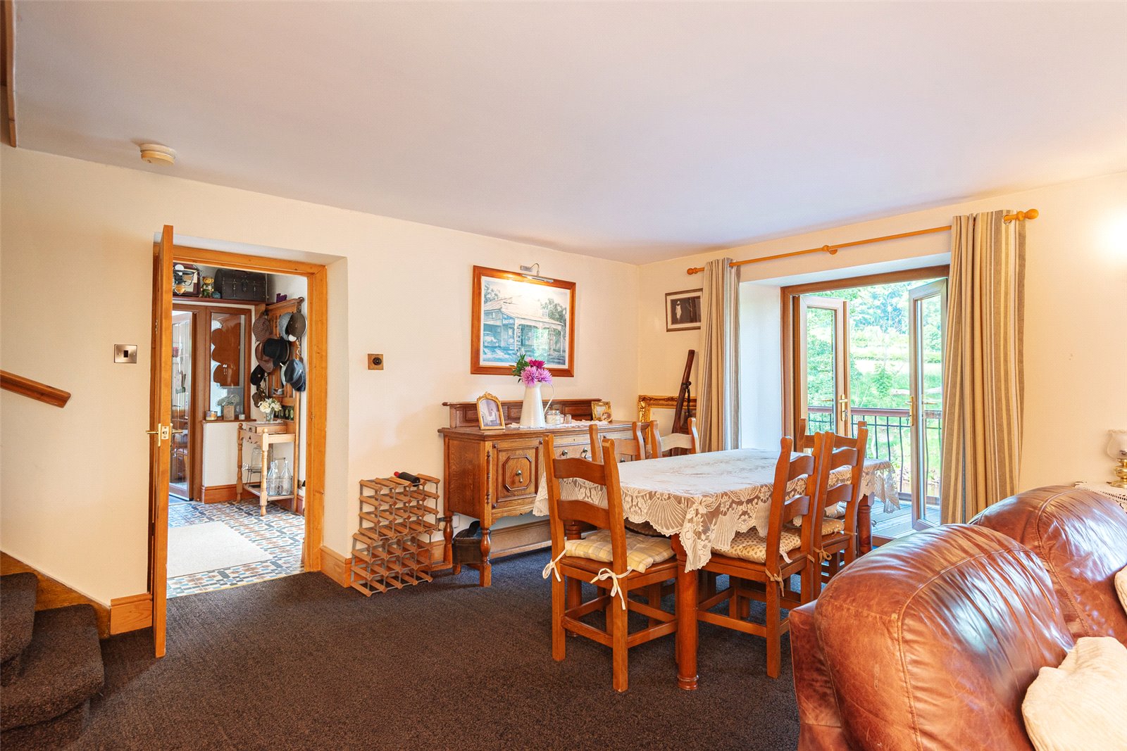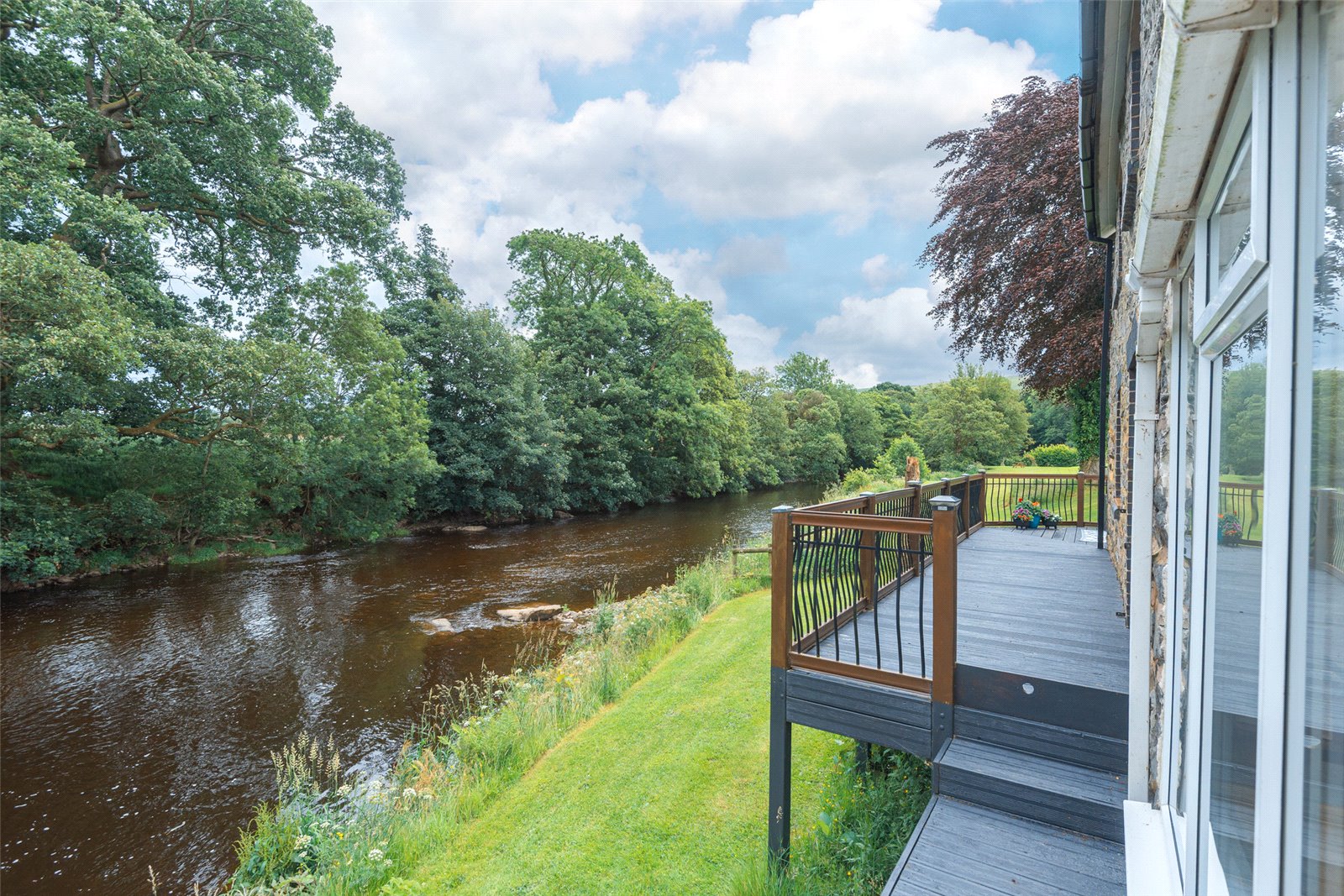 The beautifully crafted stone home offers inviting interiors filled with character, including a spacious living room with double doors opening onto a balcony overlooking the river—an ideal spot to relax and soak in the view. The heart of the home is a farmhouse-style kitchen centred around a feature Aga, while a light-filled conservatory also enjoys peaceful riverside views. Upstairs, the home offers four bedrooms and a family bathroom, providing ample space for family living or hosting guests.