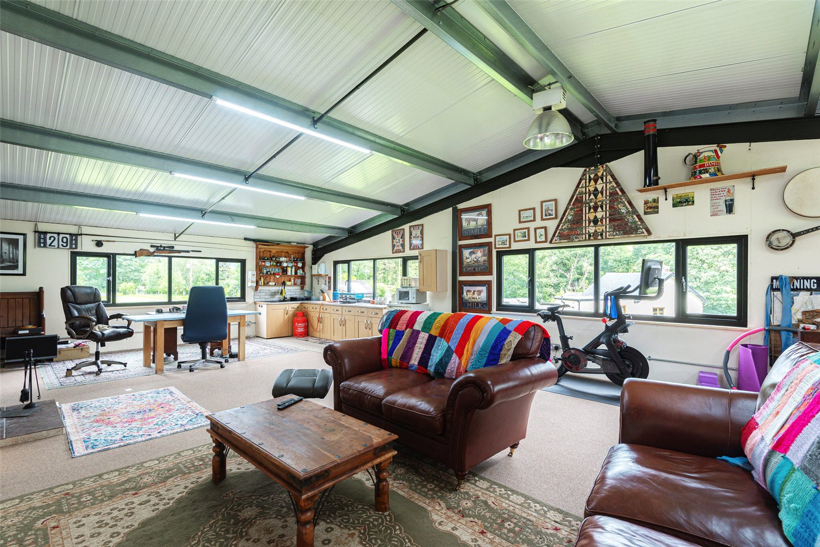 Given its size and scale, this remarkable building could also lend itself to a wide range of alternative uses, such as stabling for animals, equipment storage, or even creative conversion into additional accommodation, a studio, or a home business premises.Adding even more value is a full-length mezzanine level above with a door leading immediately to the staircase, offering an incredible bonus space. Whether imagined as a sports bar, home gym, dedicated office, art studio, or even overflow guest accommodation, this upper level further enhances the building’s potential and flexibility. This space already offers electricity, running water an kitchenette and log burner adding to its appeal.