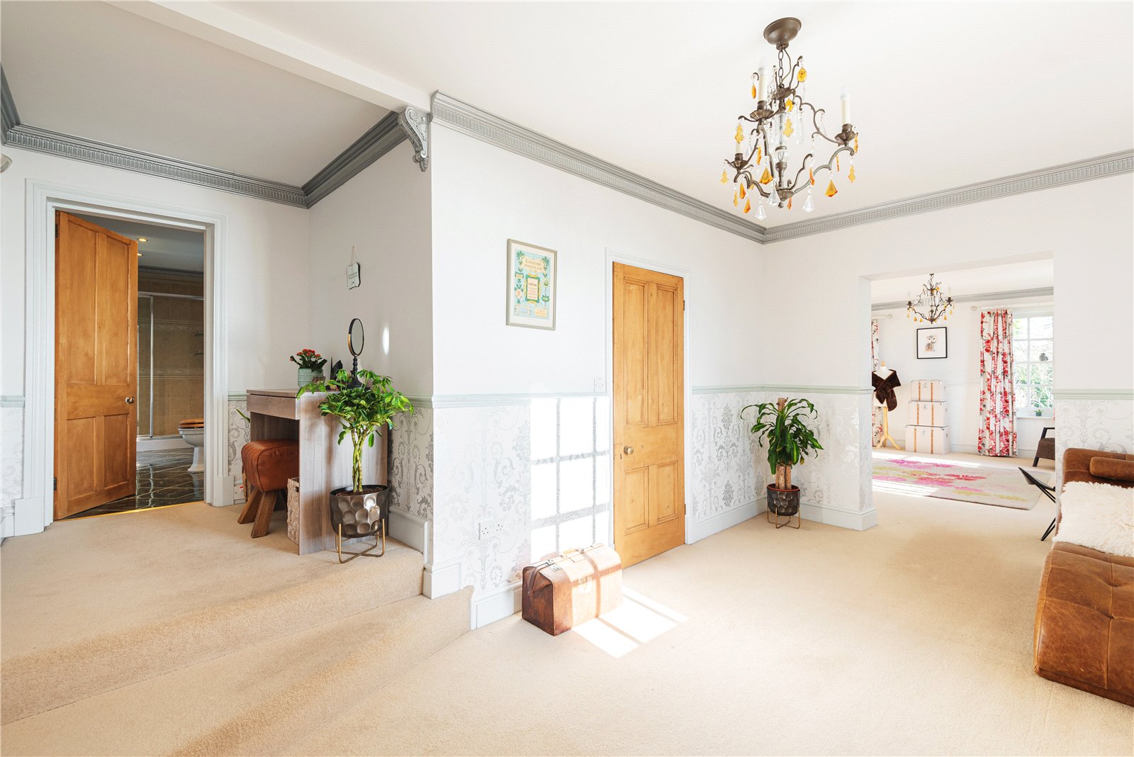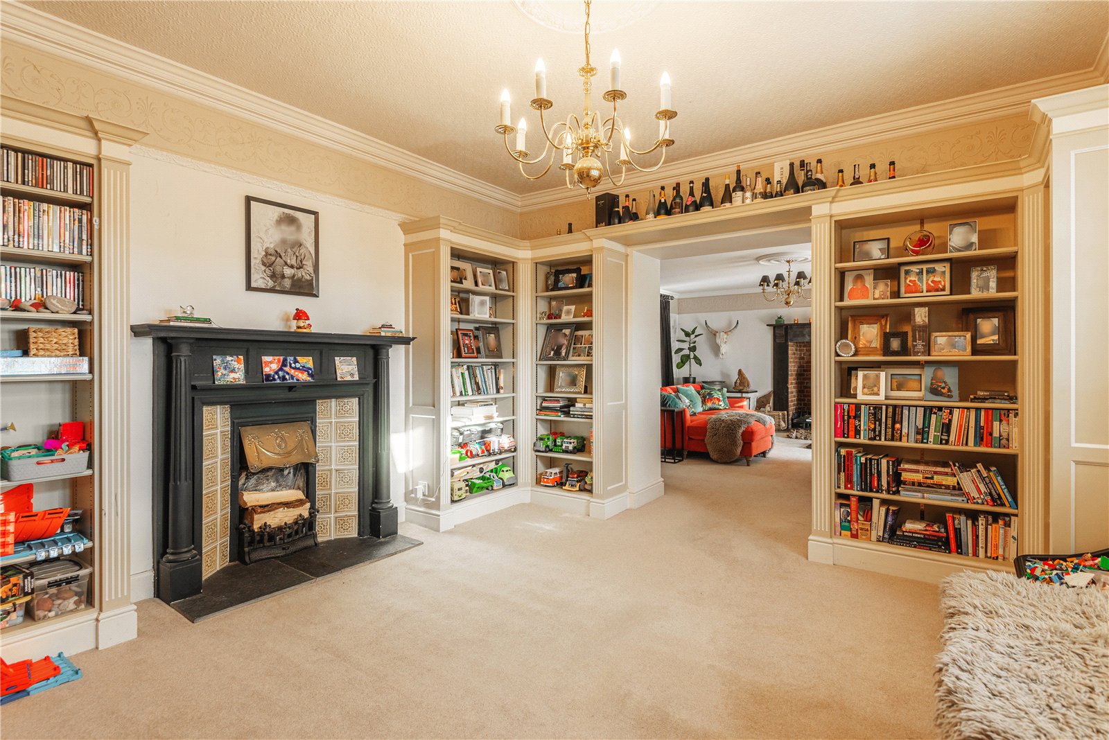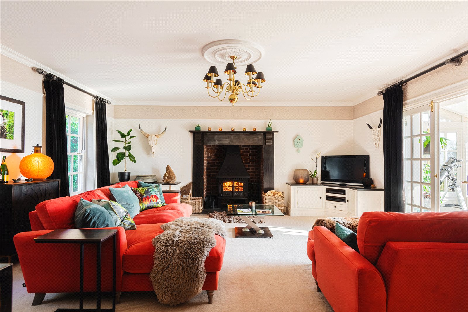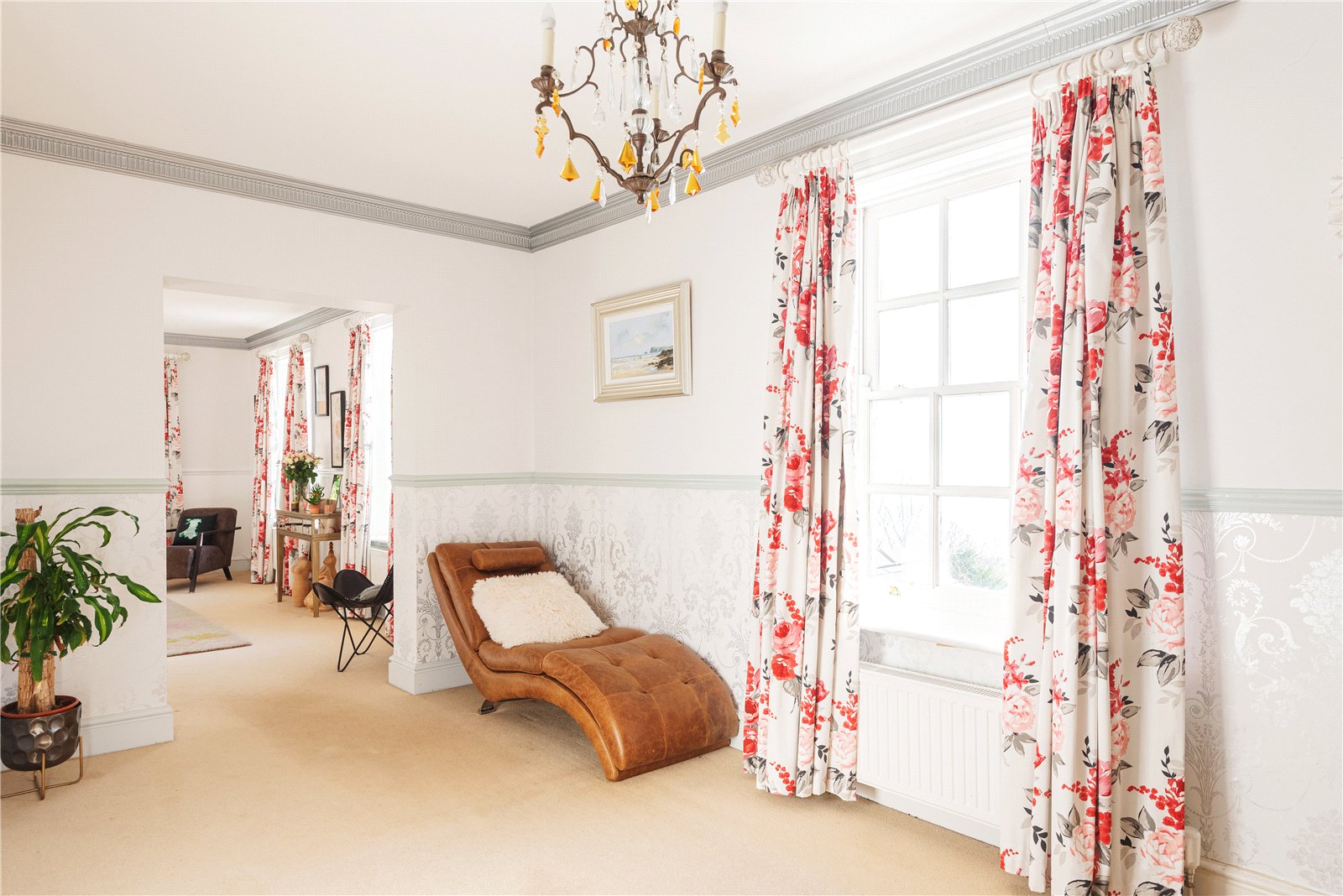 Upon entering the property, you are welcomed by a spacious garden room with a tiled floor and double patio doors that lead into the living room and out onto the patio. This room offers stunning, far-reaching views of the surrounding countryside.As you move through to the inner hall, the sitting room is on your left, featuring a bay window and a beautiful fireplace with an open fire. From here, the breathtaking views of the countryside can be enjoyed once again.On the opposite side of the hall is the extended lounge, a bright and inviting space to unwind, with one half currently used as a library/playroom. The central feature of this room is the impressive log burner, which adds warmth, charm and character. The ground floor also includes a versatile room with endless potential. Currently set up as a home office, it could easily serve as a separate dining room or a fifth bedroom if needed.