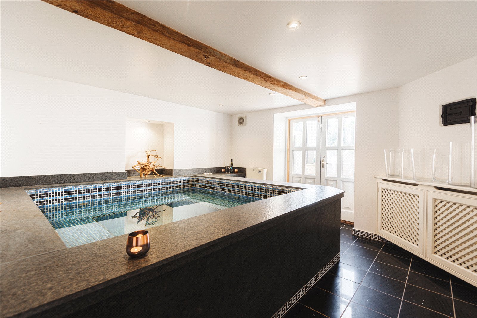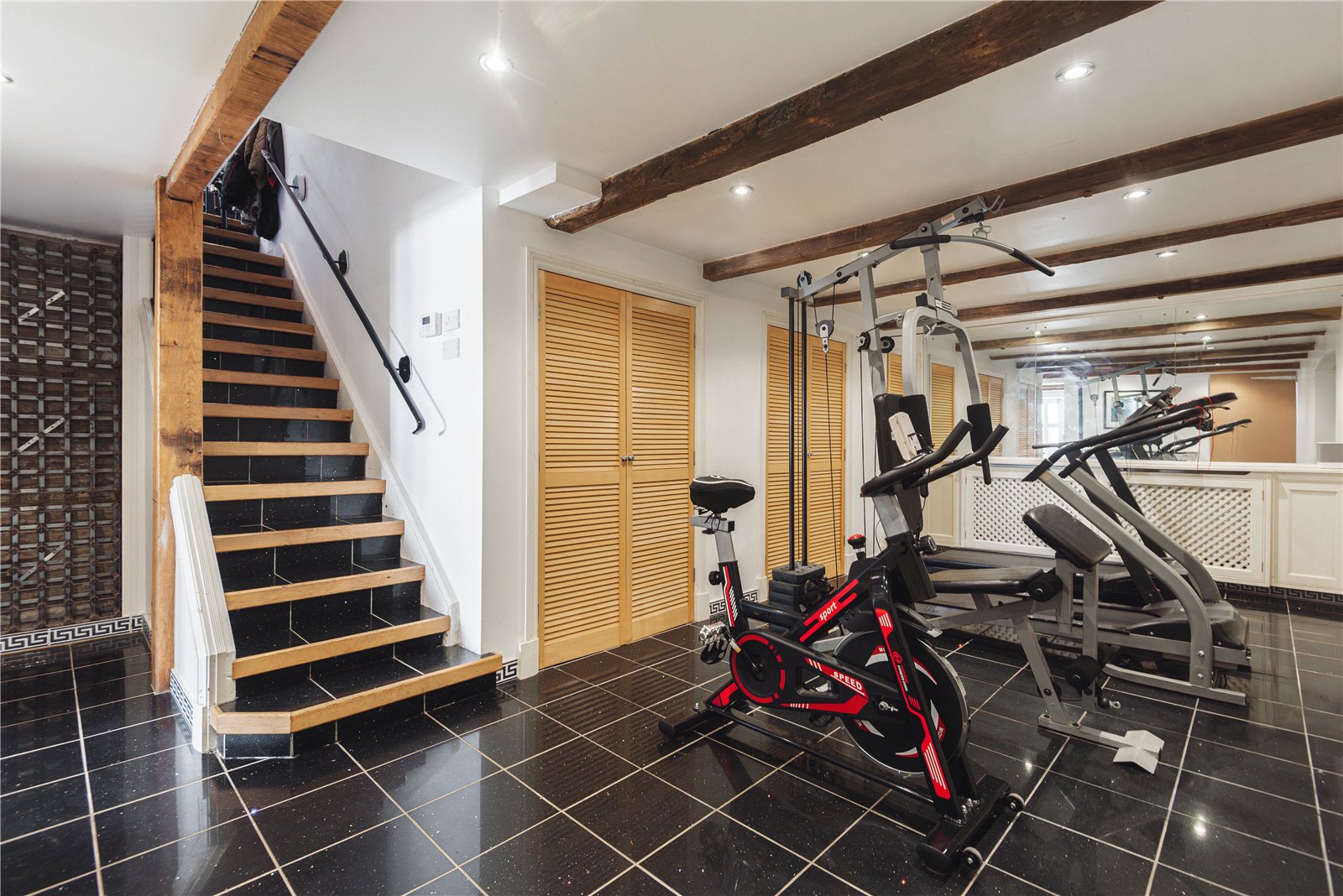 Descending into the basement, you’ll find a fantastic area for relaxation and fitness. Currently set up as a gym, there is ample space for equipment and storage. The boot room, with a tiled floor and storage cupboards, offers a great place to accommodate all manner of clothing apparel for the great outdoors. Adjacent to this, a steam room and utility room, complete with a WC, wash basin, and space for a washing machine and tumble dryer, provide convenience. There’s also a jacuzzi room with doors leading out to the patio, making this space ideal for hosting or unwinding. This level is perfectly designed for health and wellness, with plans approved for an extension that would include a swimming pool. Alternatively, it could be converted into additional living accommodation if desired and subject to the relevant consents.