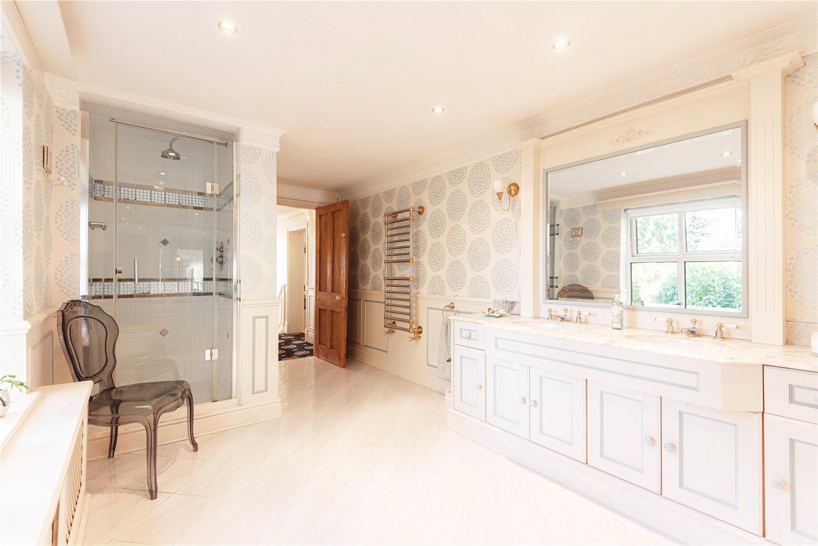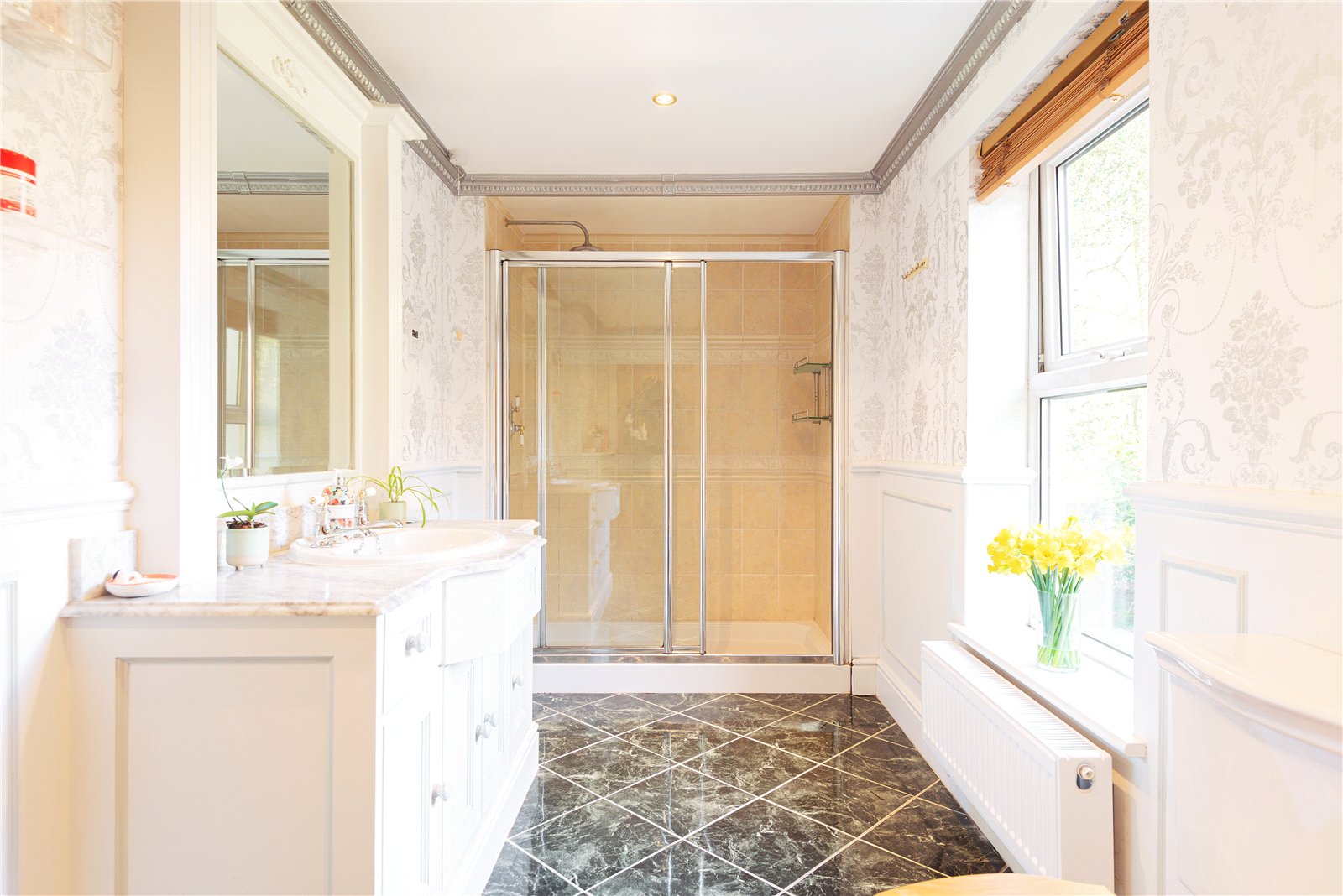 Stairs lead up from the hallway to the first floor, where you’ll find four generously sized bedrooms and two bathrooms. The luxurious dual aspect master bedroom includes a dressing area with a built-in wardrobe and boasts incredible views of the surrounding countryside and Severn Valley. A few steps lead to the en-suite bathroom, which features a large shower cubicle, a marble vanity unit with a wash basin, a WC, and a heated towel rail.The three additional double bedrooms all offer ample space and lovely views, with one currently used as a home office. Completing the upper floor is the luxury family bathroom, which includes a marble vanity unit with Jack and Jill wash basins, a WC, a shower cubicle, and a large bath.