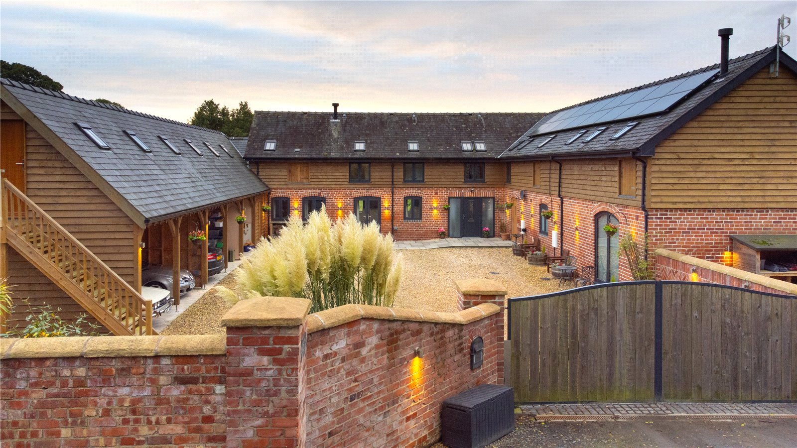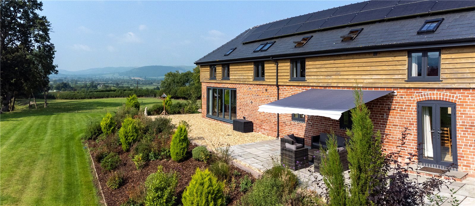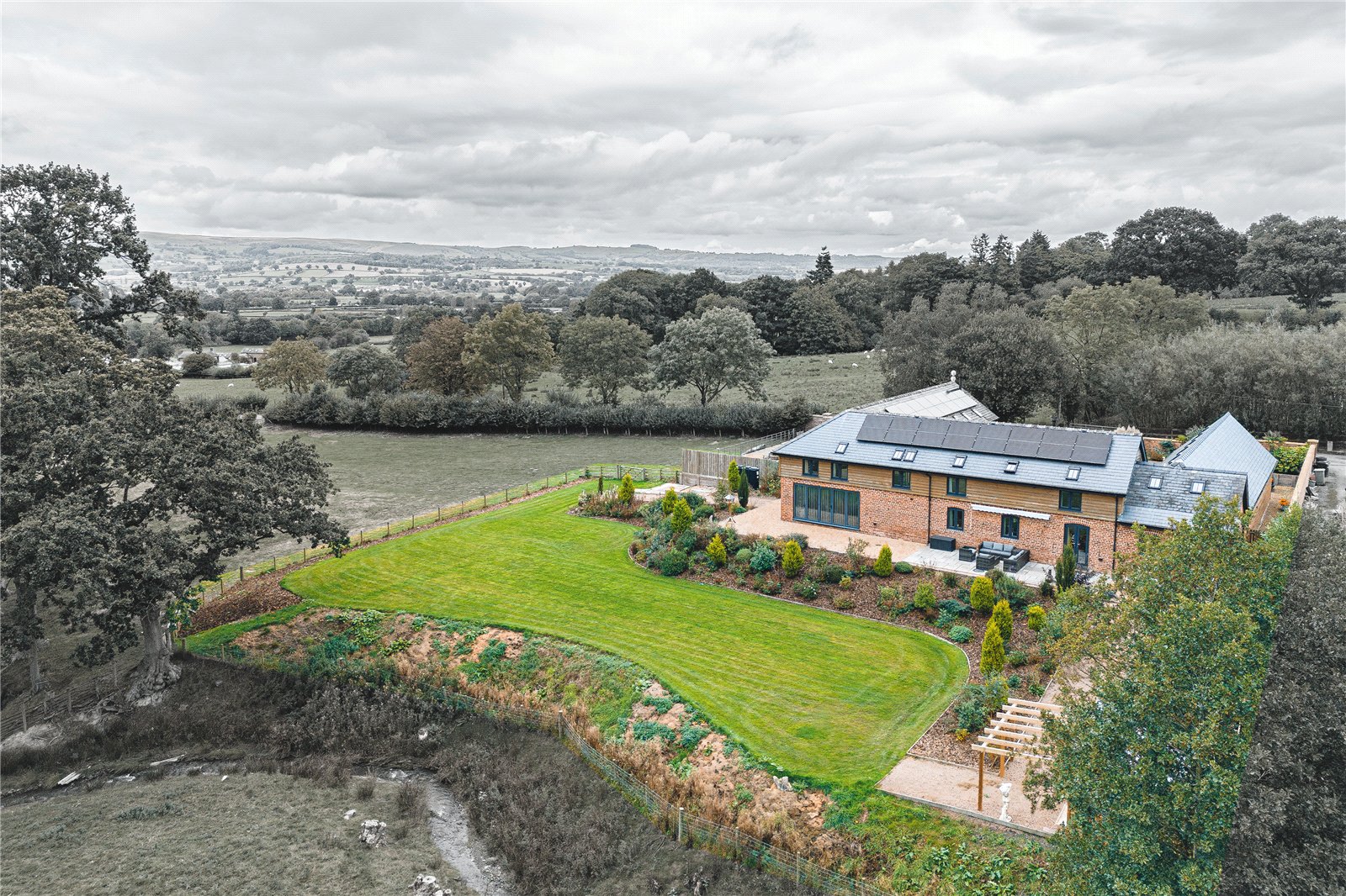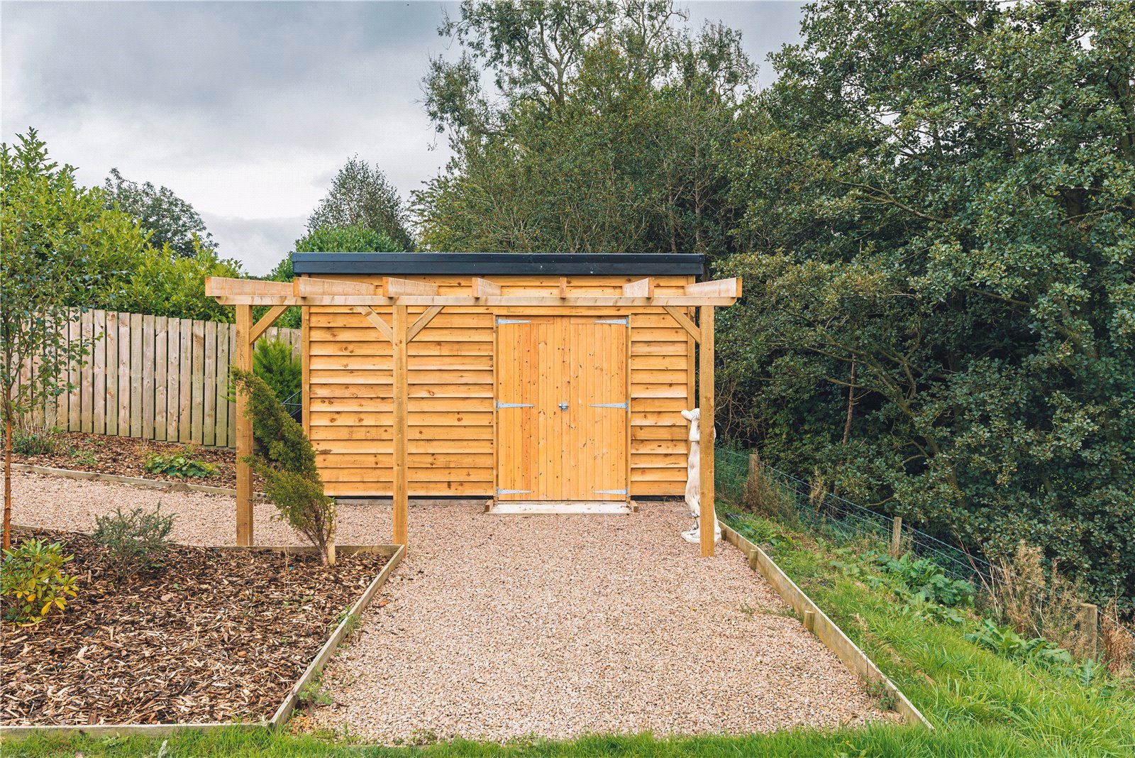 Externally, Barn One offers extensive, south-westerly facing gardens, designed to capture sunlight throughout the day during the warmer months. The large slate patio provides an ideal space for hosting summer barbecues, outdoor dining, or simply enjoying a peaceful moment with a glass of wine as you soak in the breathtaking views under the retractable sun awning. The lower tier of the garden offers ample lawn space, along with a wooden outbuilding that could be used for garden storage, a games room, or even converted into an outdoor bar for entertaining.Electric gates lead into the enclosed parking and turning area providing plenty of space for several cars. There is also an attached garage which has rooms above, providing great potential for conversion subject to the relevant consents and is currently used as storage with space for four cars.