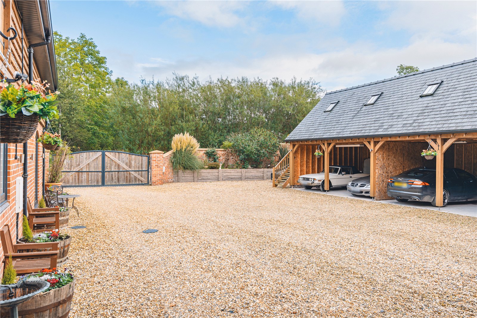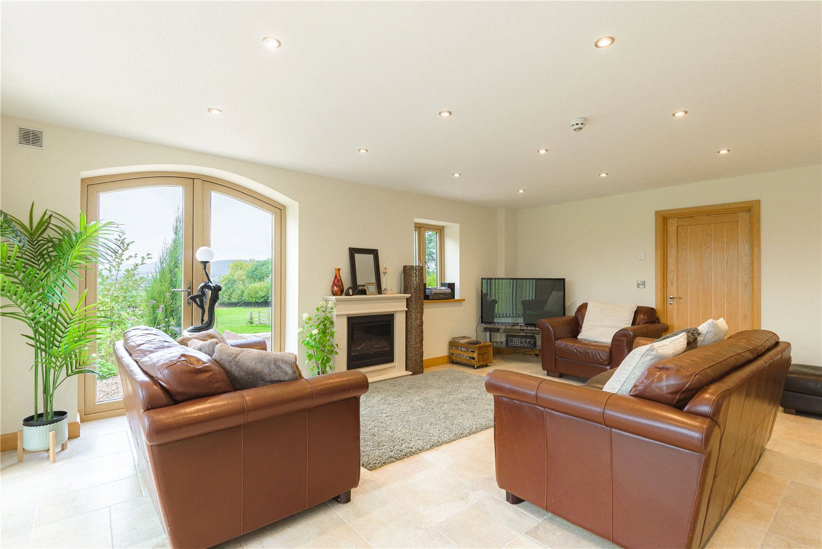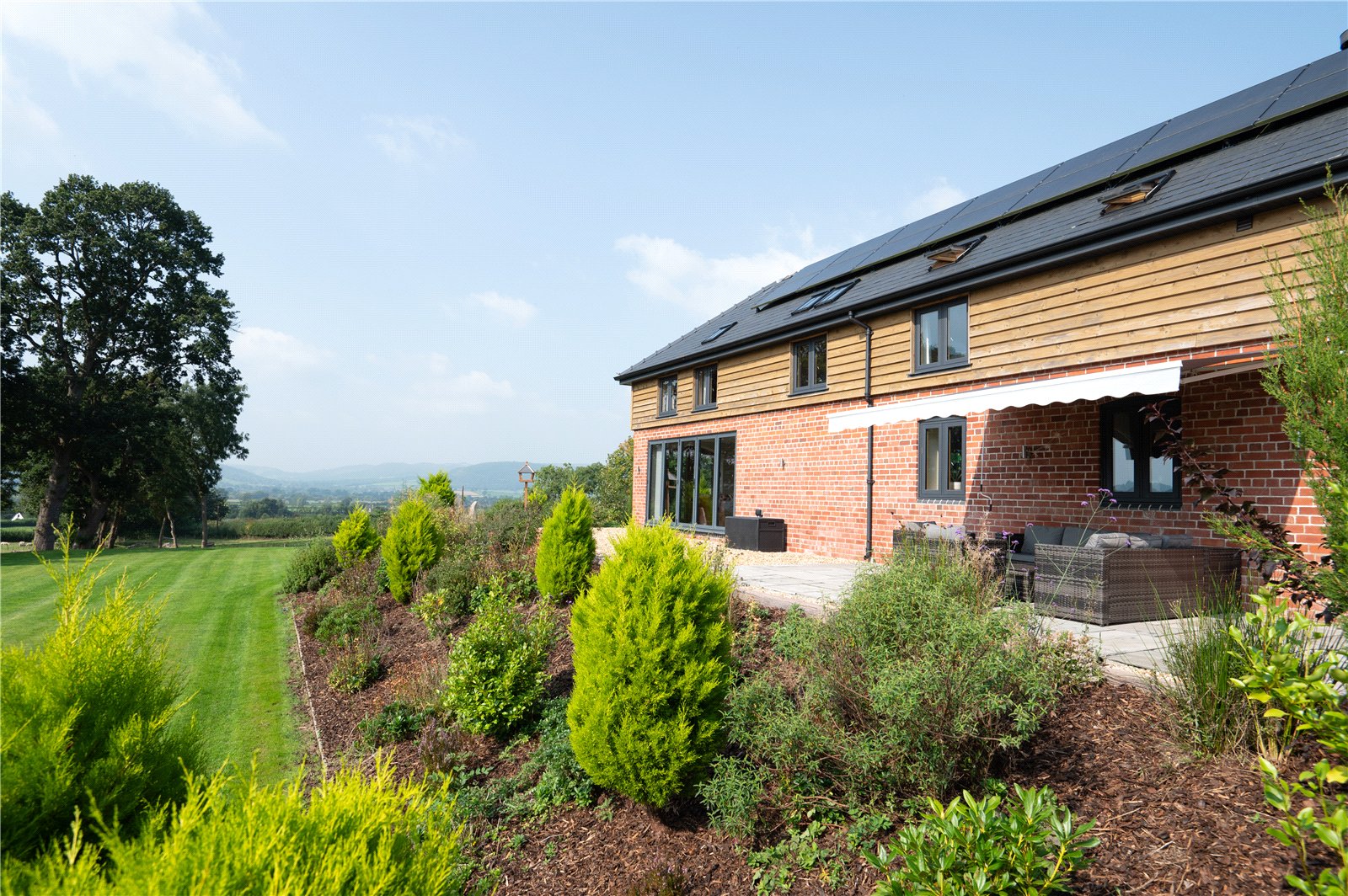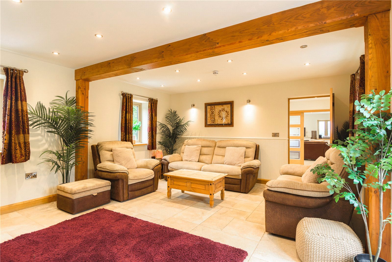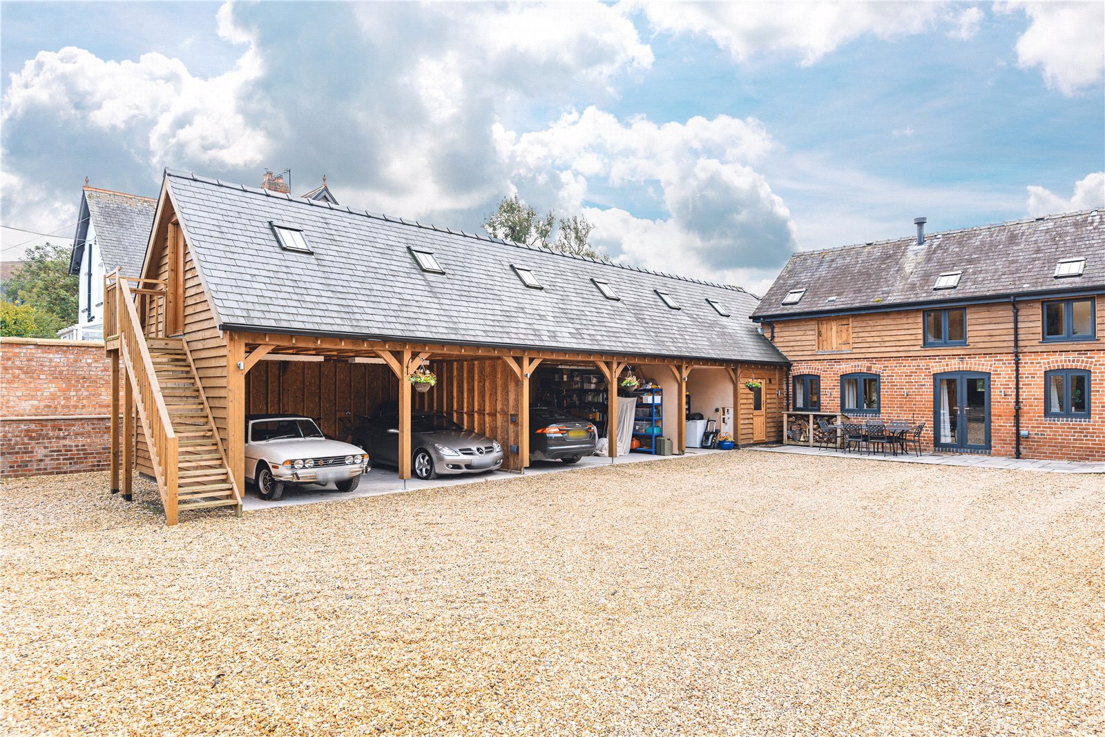 Externally, Barn One offers extensive, south-westerly facing gardens, designed to capture sunlight throughout the day during the warmer months. The large slate patio provides an ideal space for hosting summer barbecues, outdoor dining, or simply enjoying a peaceful moment with a glass of wine as you soak in the breathtaking views under the retractable sun awning. The lower tier of the garden offers ample lawn space, along with a wooden outbuilding that could be used for garden storage, a games room, or even converted into an outdoor bar for entertaining.Electric gates lead into the enclosed parking and turning area providing plenty of space for several cars. There is also an attached garage which has rooms above, providing great potential for conversion subject to the relevant consents and is currently used as storage with space for four cars.