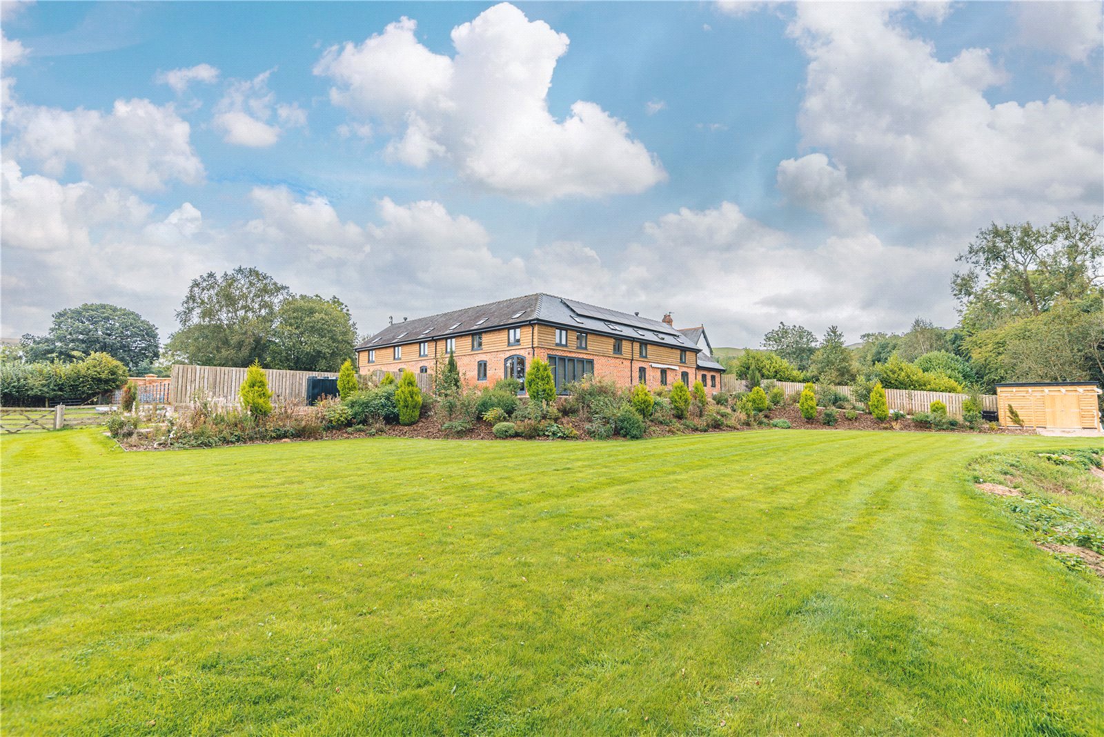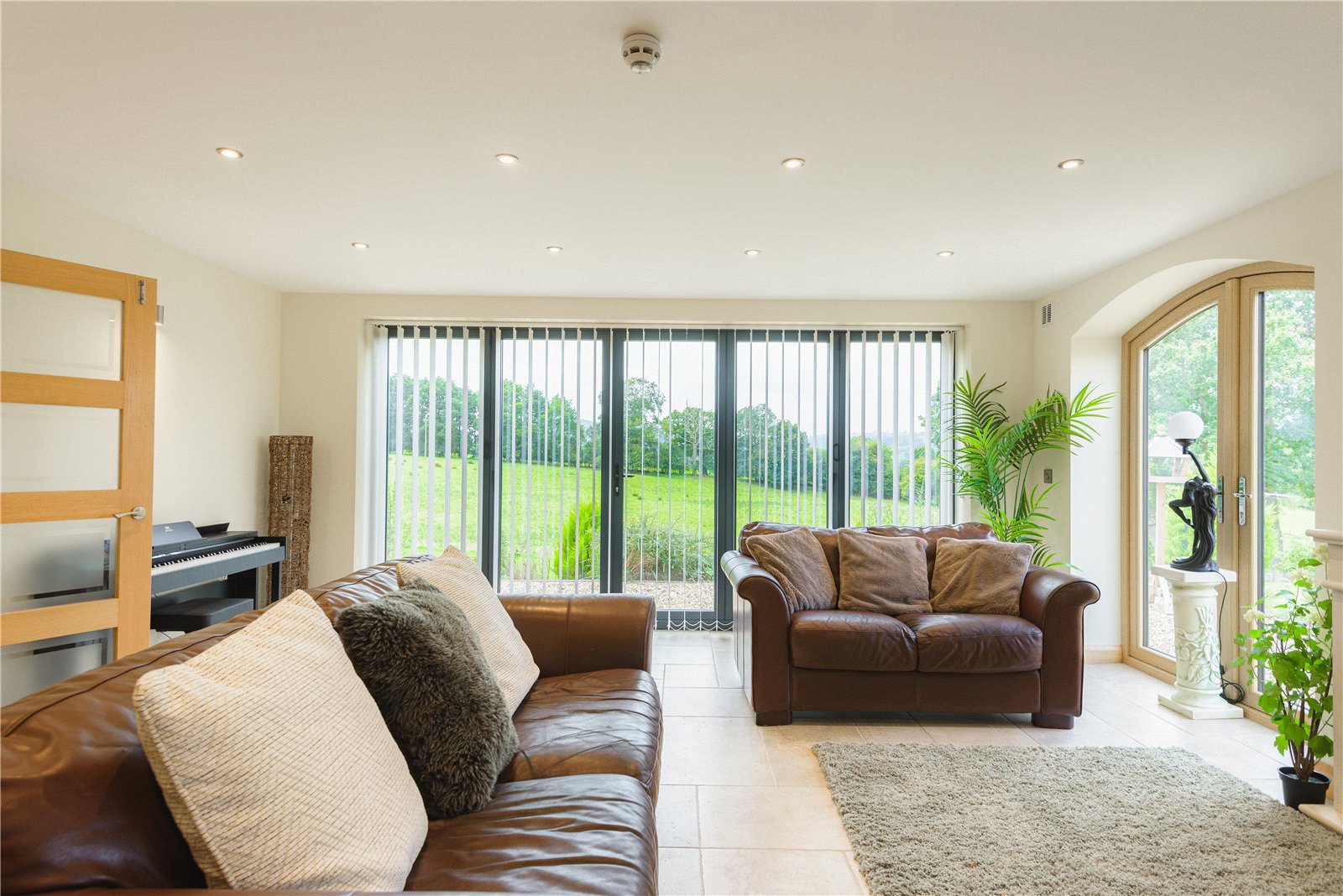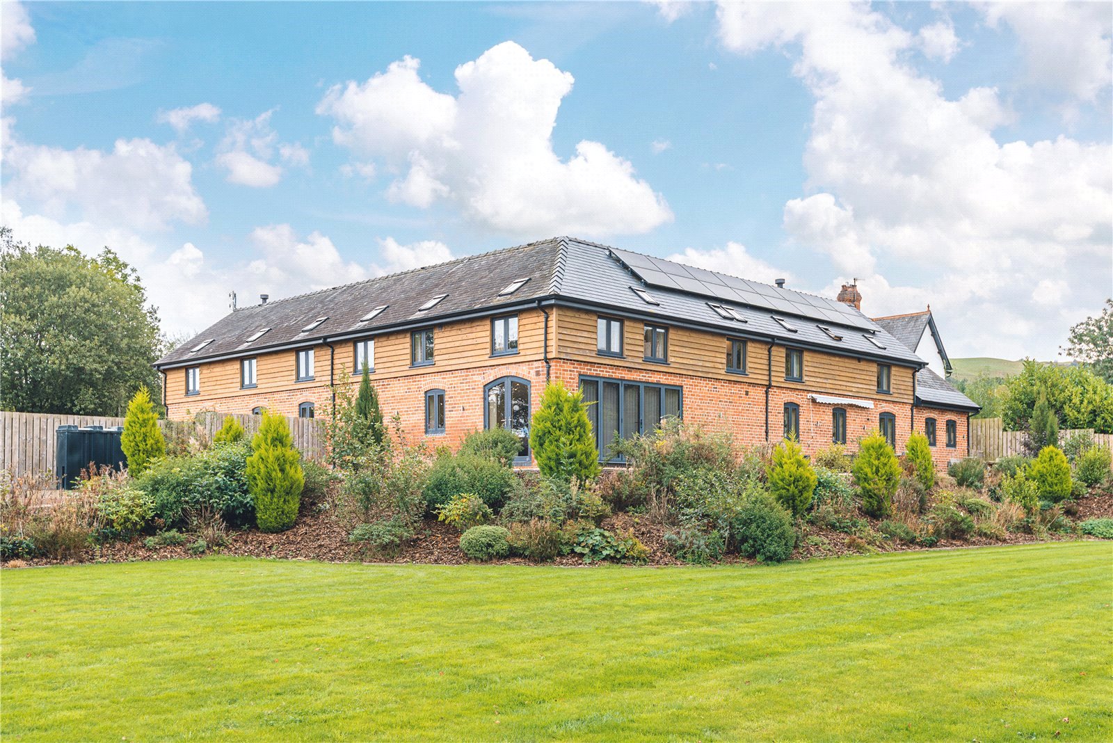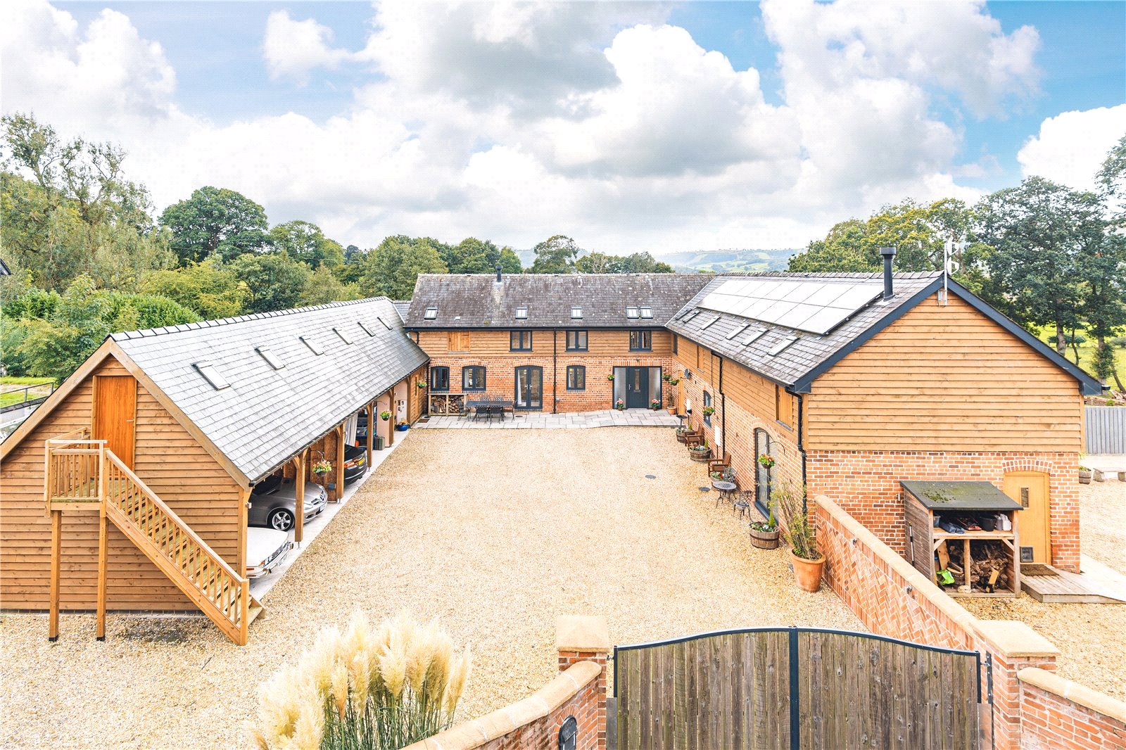 Externally, Barn One offers extensive, south-westerly facing gardens, designed to capture sunlight throughout the day during the warmer months. The large slate patio provides an ideal space for hosting summer barbecues, outdoor dining, or simply enjoying a peaceful moment with a glass of wine as you soak in the breathtaking views under the retractable sun awning. The lower tier of the garden offers ample lawn space, along with a wooden outbuilding that could be used for garden storage, a games room, or even converted into an outdoor bar for entertaining.Electric gates lead into the enclosed parking and turning area providing plenty of space for several cars. There is also an attached garage which has rooms above, providing great potential for conversion subject to the relevant consents and is currently used as storage with space for four cars.