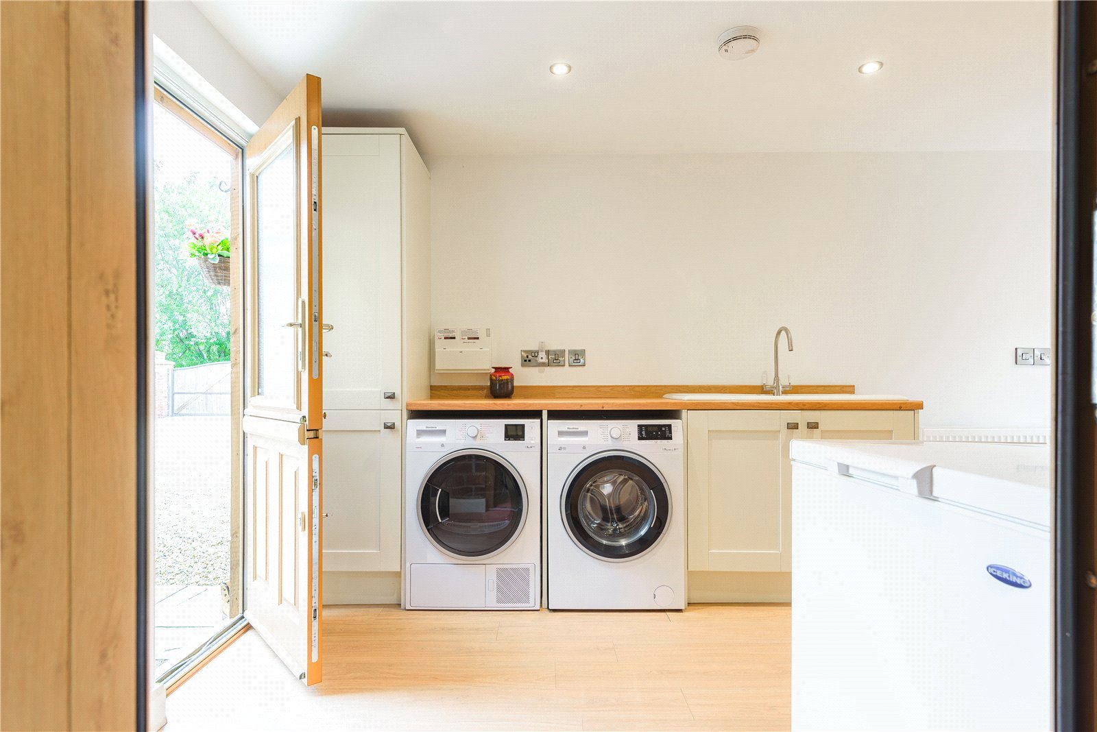 The property exudes quality throughout, with solid oak flooring, doors, and windows adding warmth, character, and timeless appeal. A sleek, high spec kitchen and four beautifully finished ensuite shower rooms deliver comfort and style, while full length bifold doors from the spacious living room open directly onto the garden, flooding the space with natural light and seamlessly blending indoor and outdoor living.