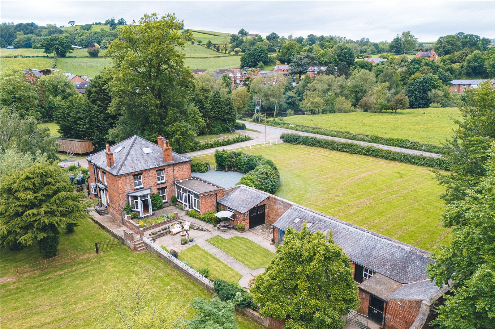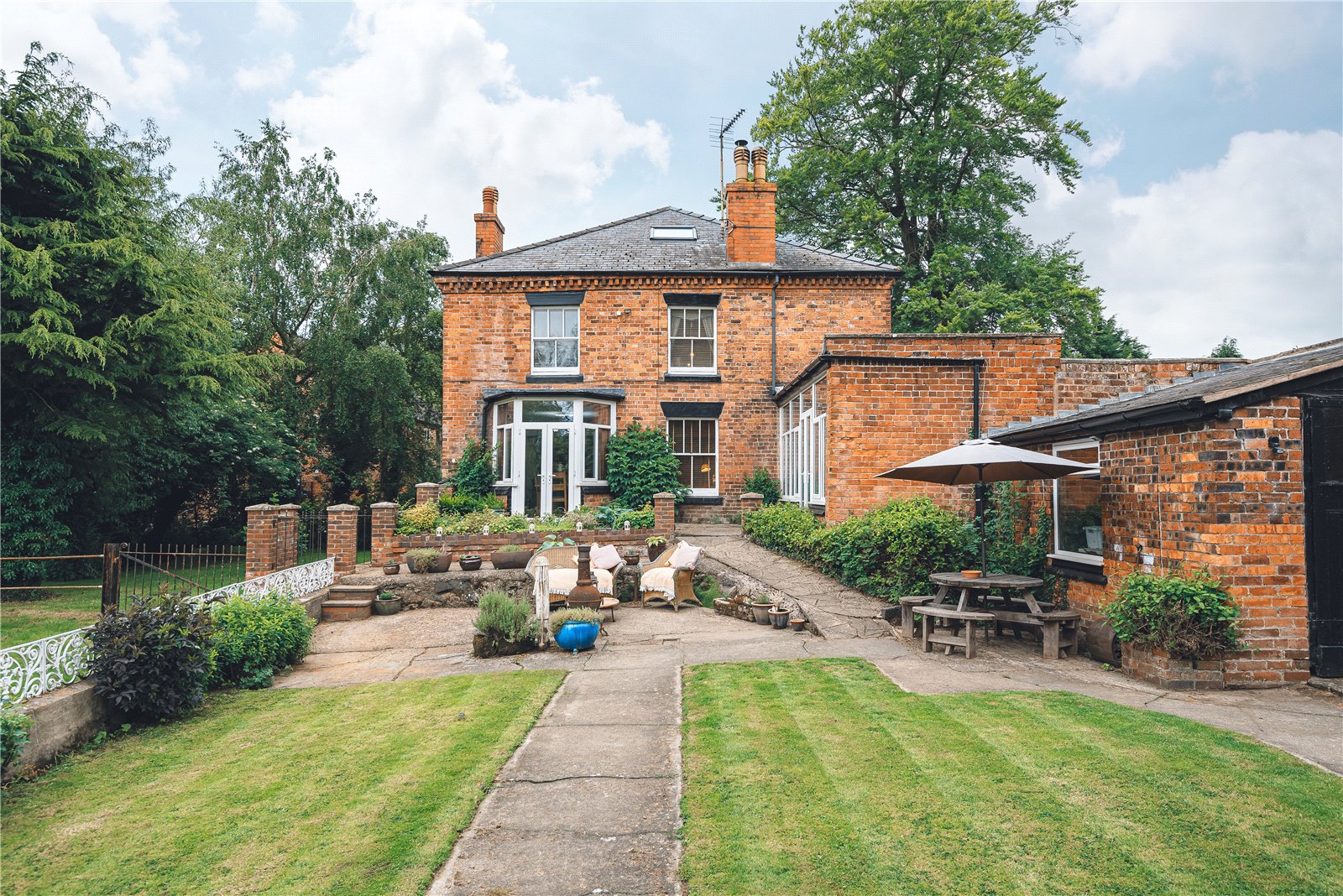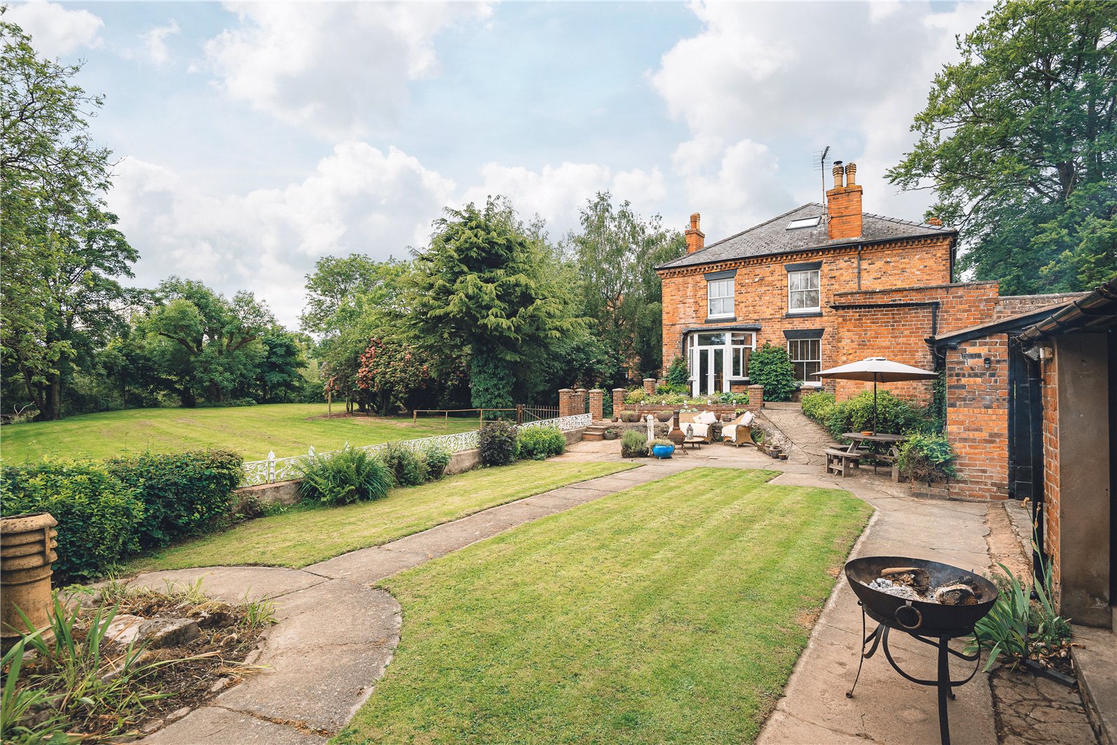 Entering through the front door, you step into the entrance hall, which leads to a spacious living room, with parquet flooring and feature fireplace with a wood-burning stove. It flows into a light-filled conservatory beyond, overlooking the rear garden, paddock and river. The dining room, perfect for entertaining, also includes a feature fireplace with an open fire and has French Windows opening onto the patio area. A downstairs WC adjoins the hallway.Connecting from the hall, is a second living room with dual aspect windows, leading to the kitchen/breakfast room. This bespoke oak kitchen is equipped with a range of wall and base units, integrated appliances, Belfast sink, Aga and a beautiful bay window with garden views. A cosy nook offers an intimate dining space. The side conservatory off the kitchen provides useful addition space with a utility room beyond. Stairs from the kitchen also descend to the cellar.