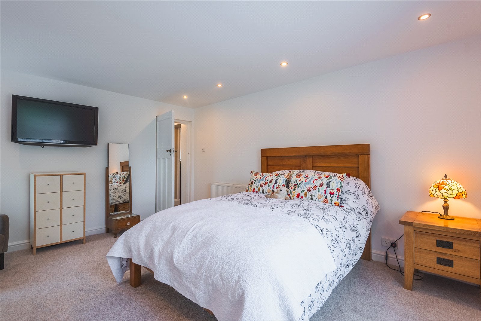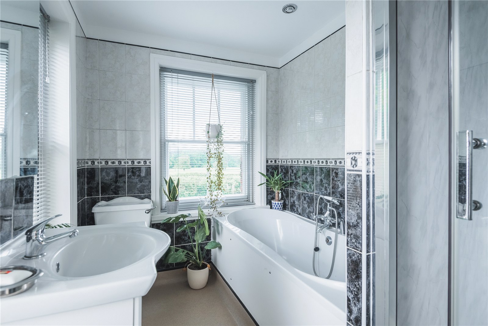 Stairs lead from the hall to the first floor, where there are three double bedrooms which feature built-in wardobes and fireplaces. There is also a study on this floor, which could also serve as an additional bedroom or nursery. The family bathroom includes a WC, washbasin, bath and separate shower. Each room offers far-reaching views of the surrounding countryside.
